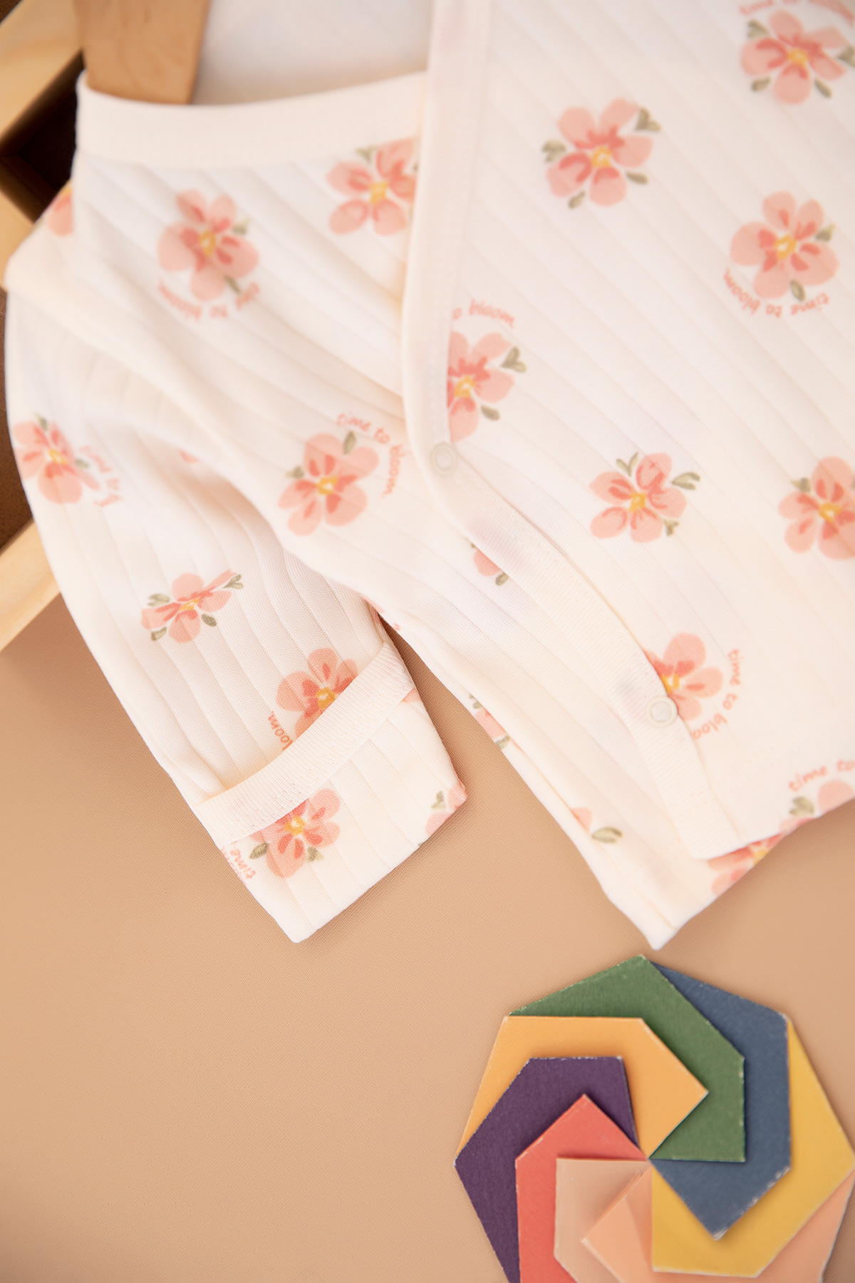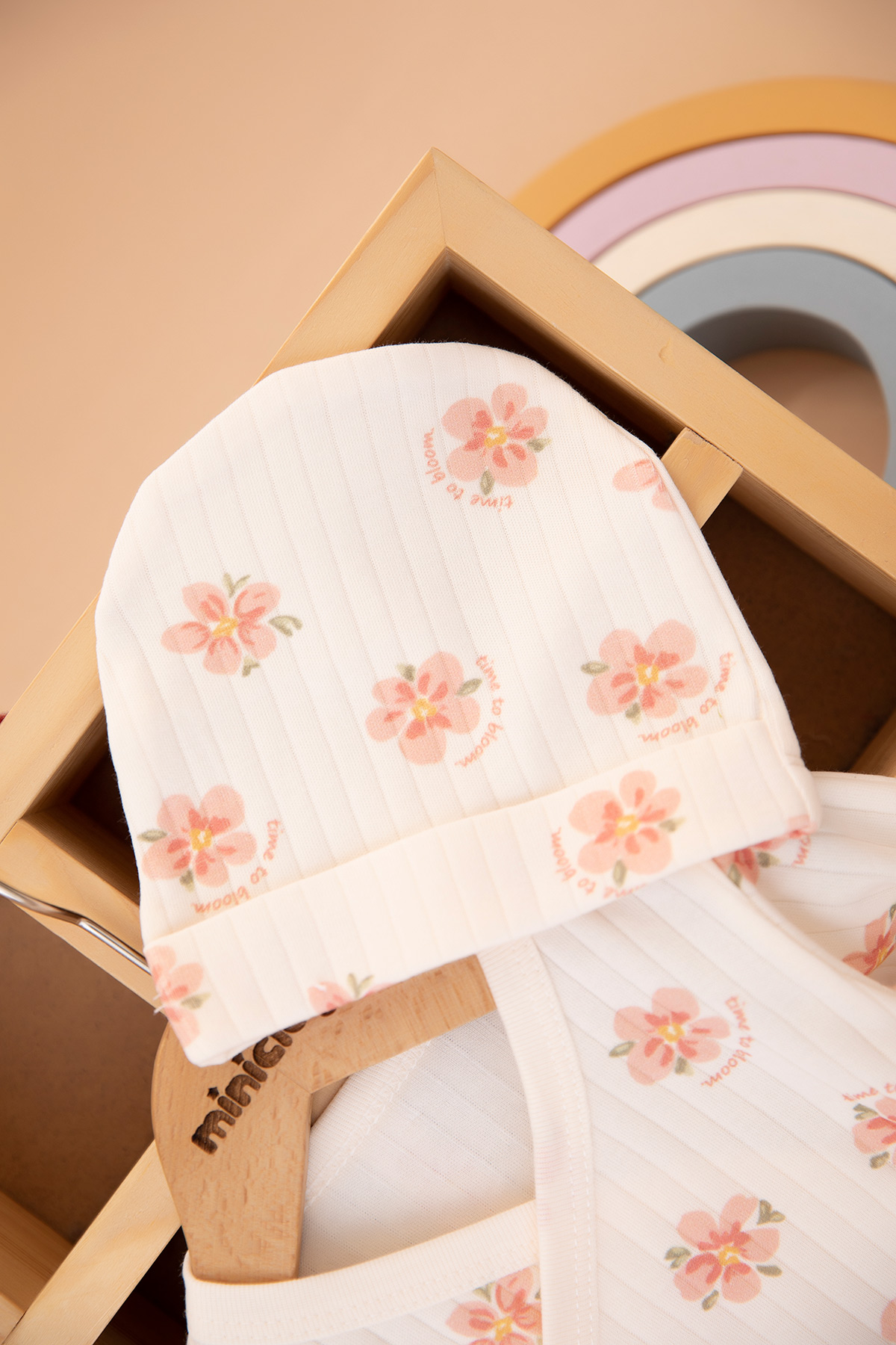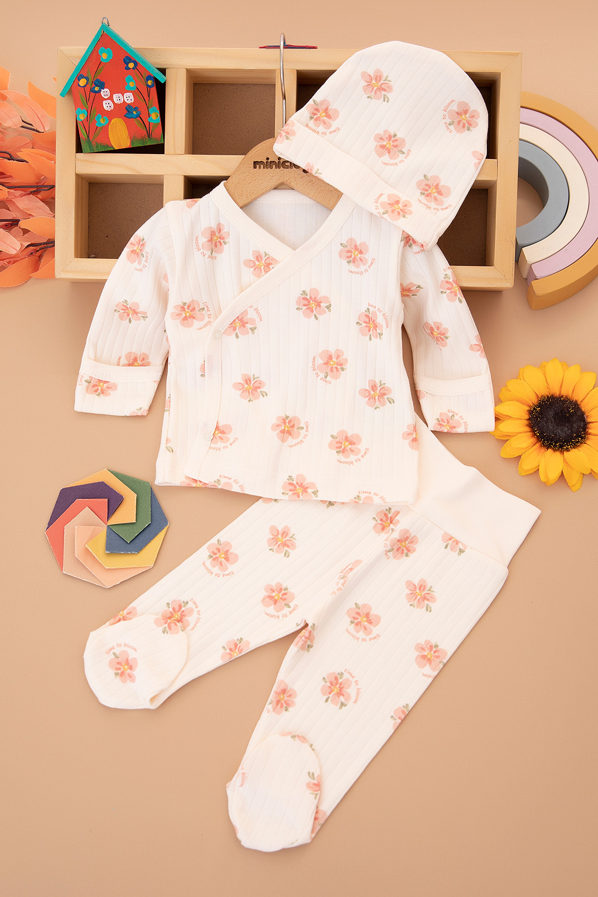 Kız Bebek Çiçek Baskılı Üçlü Zıbın Seti - 1073 (0-3 Ay)