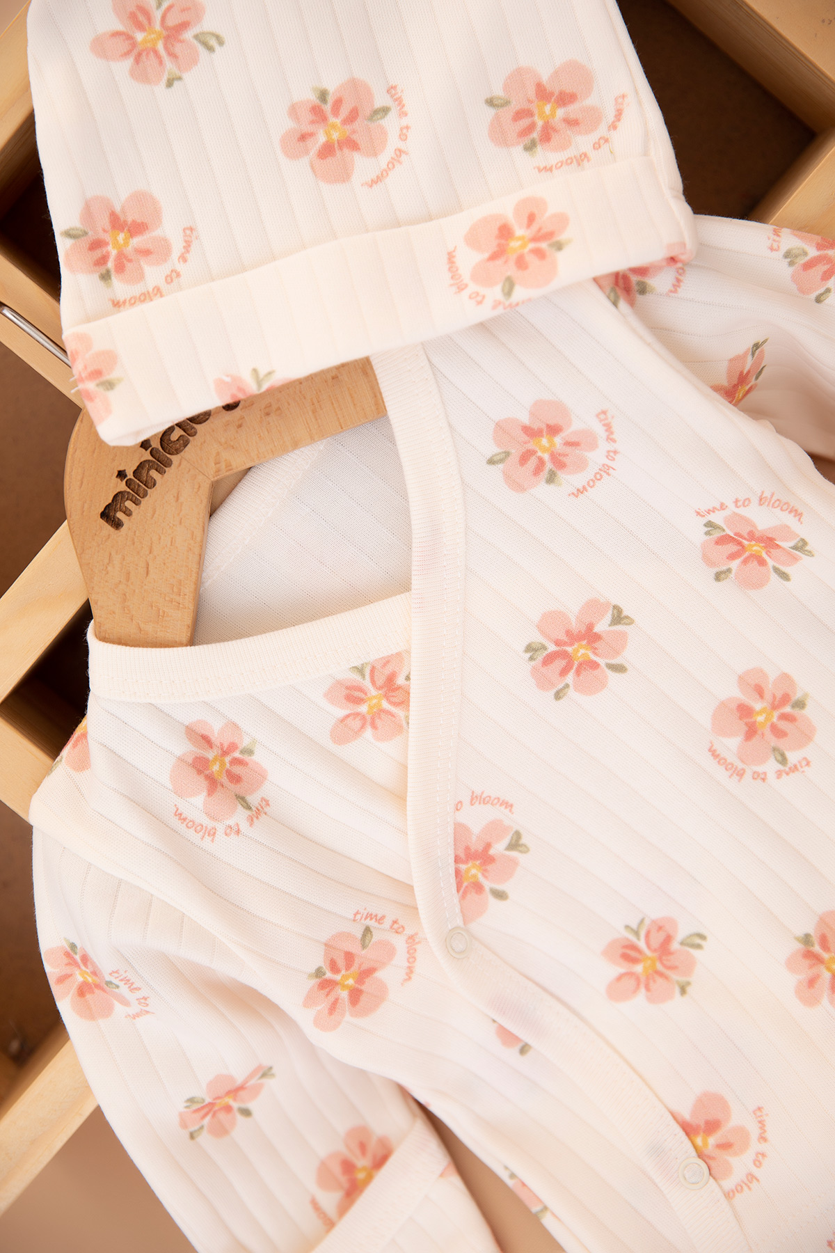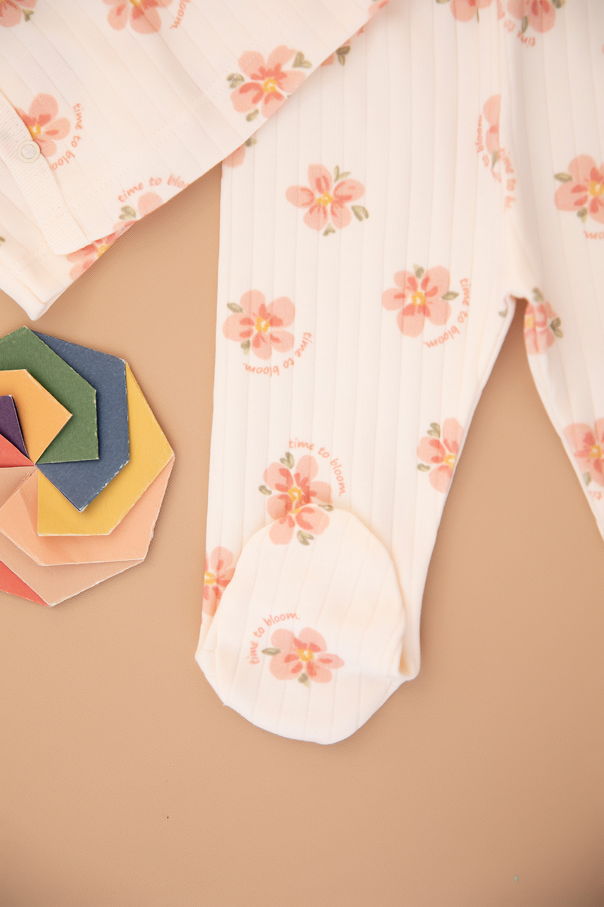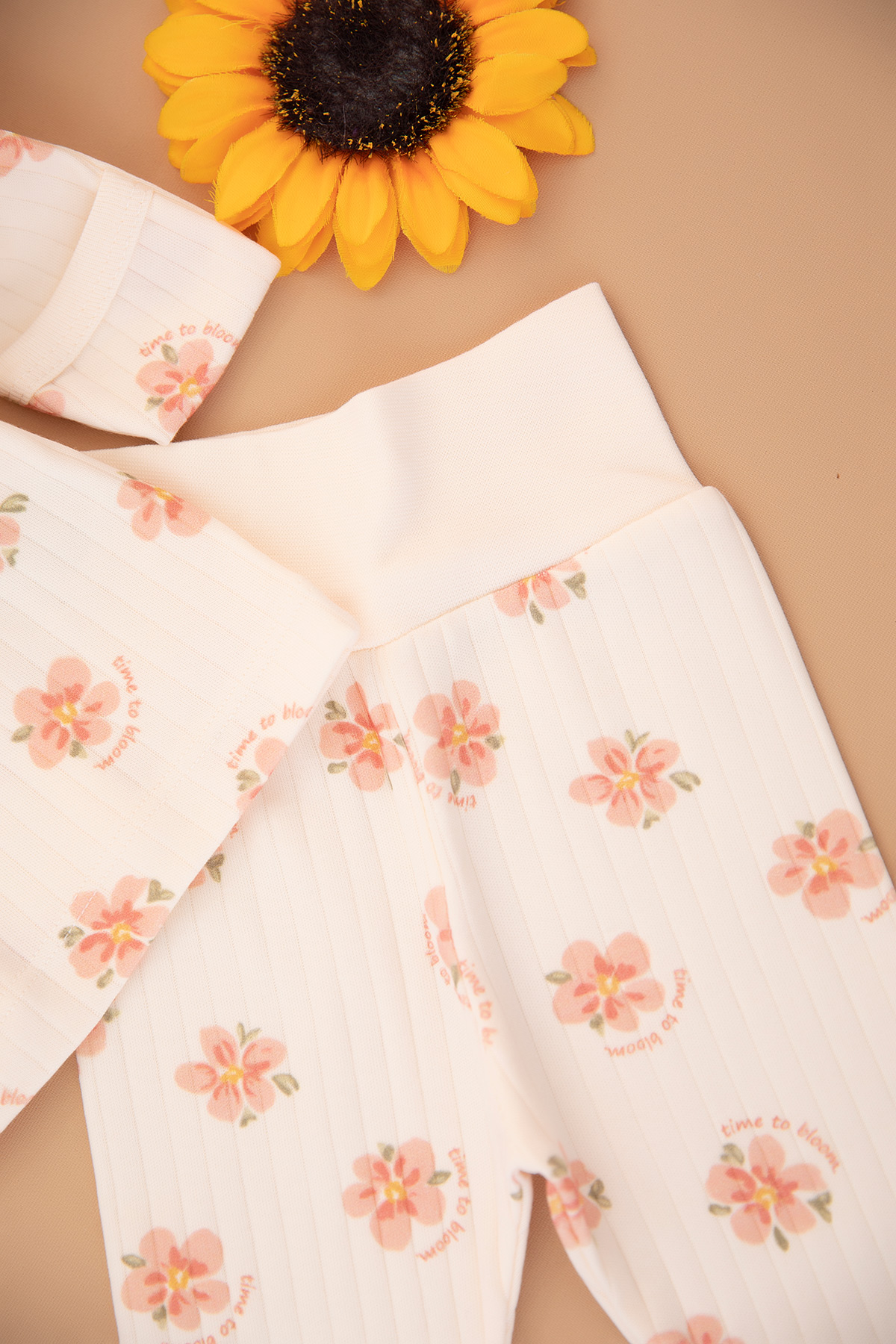 Kız Bebek Çiçek Baskılı Üçlü Zıbın Seti - 1073 (0-3 Ay)