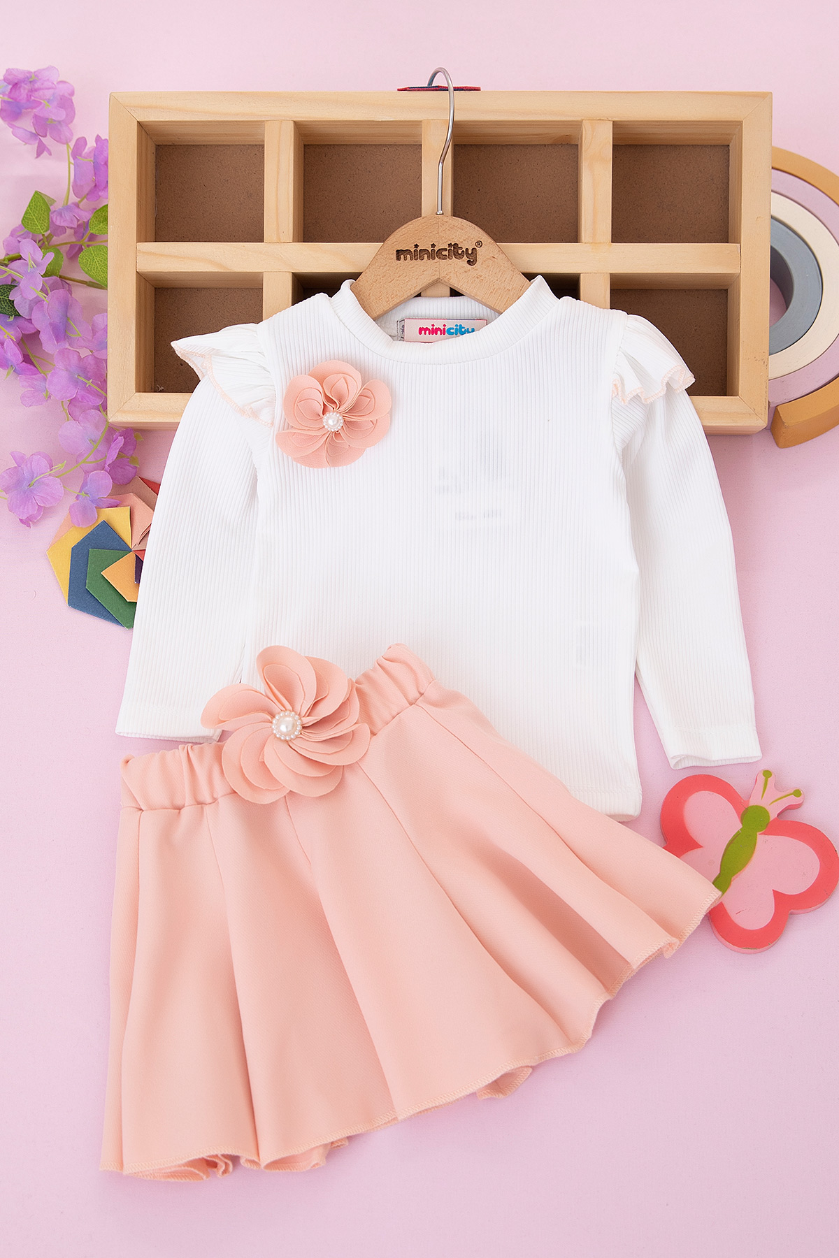 Kız Bebek Çiçek Broşlu Etekli Takım - 738 (2-5 Yaş)