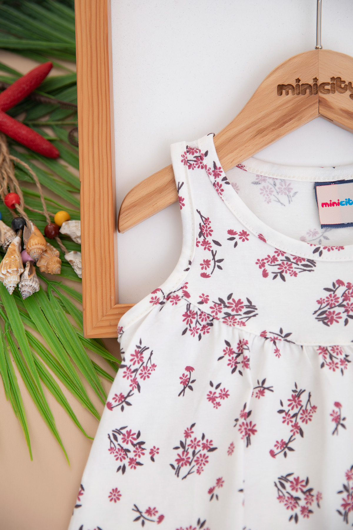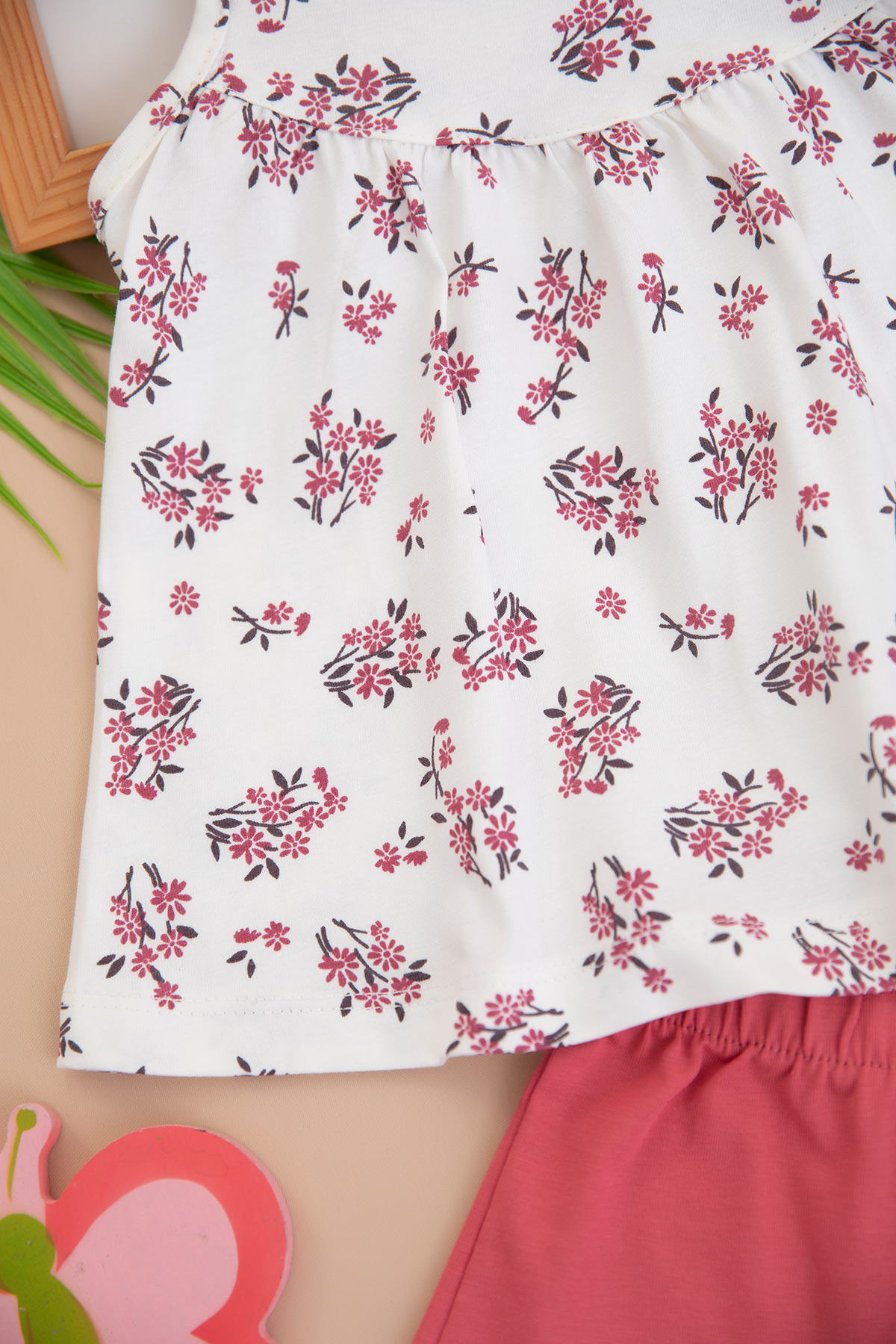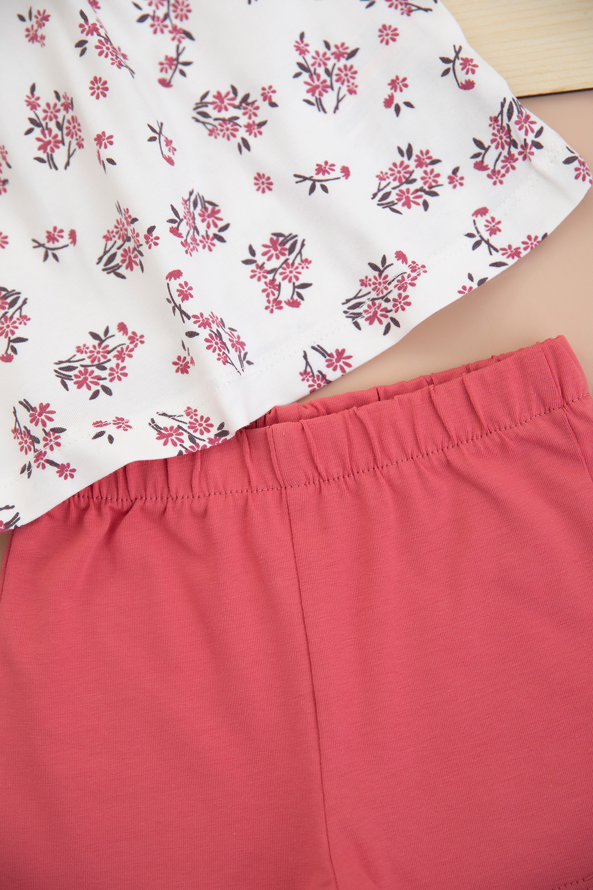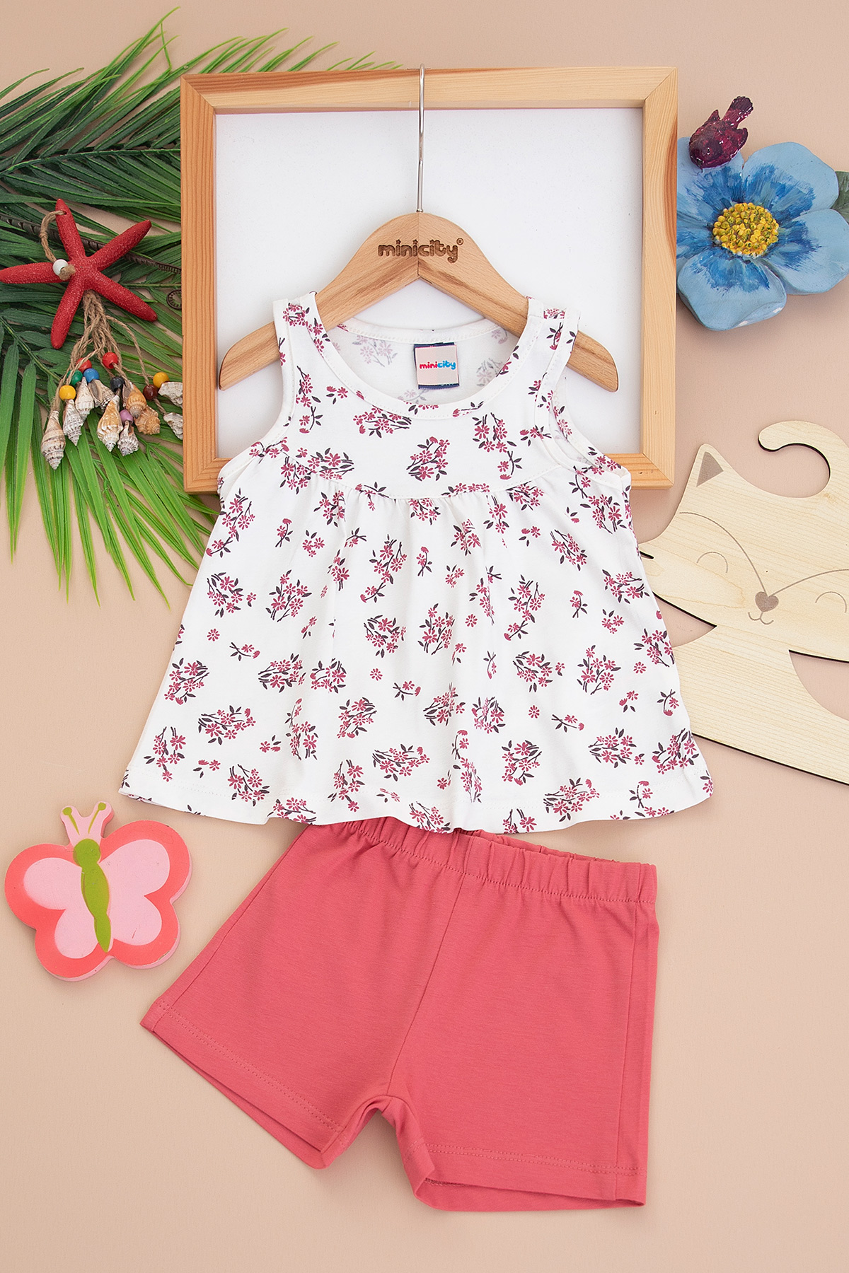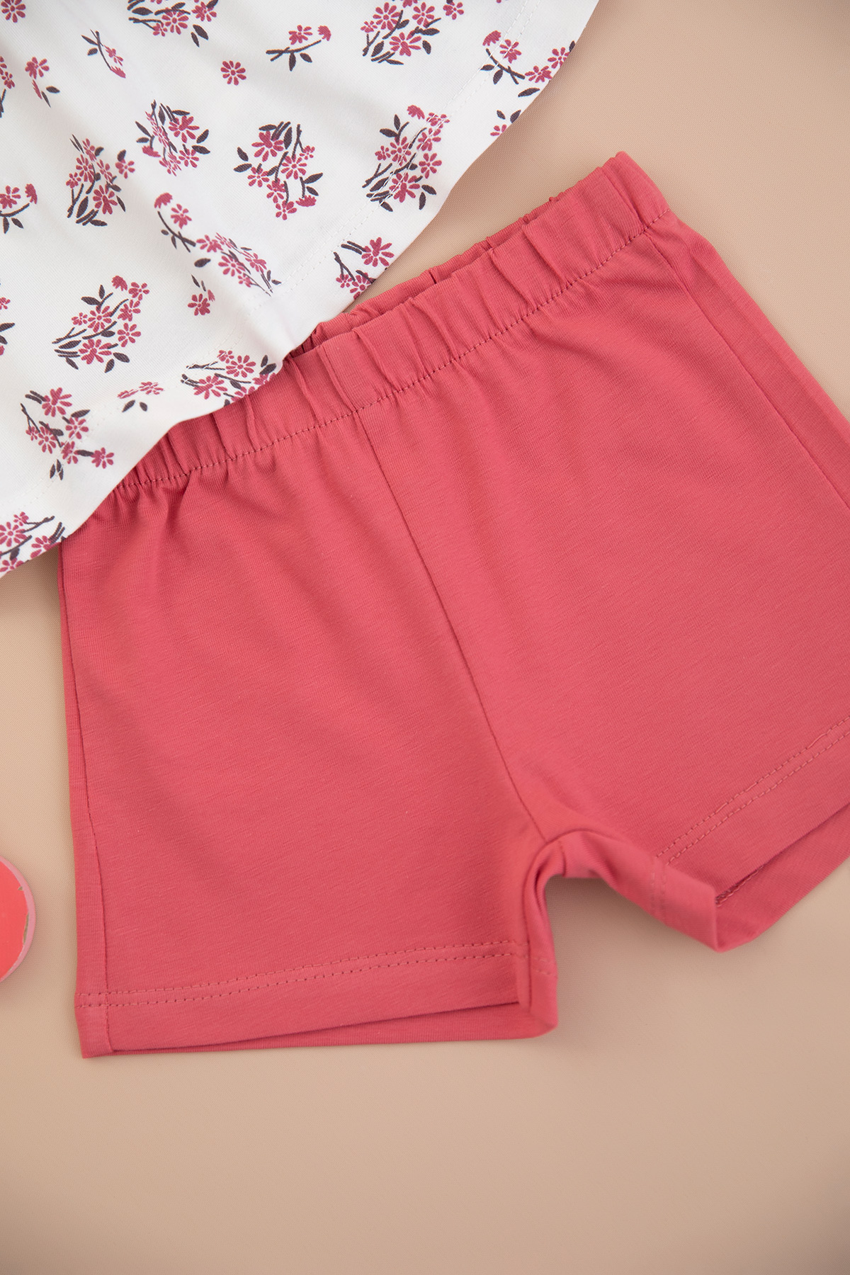 Kız Bebek Çiçek Desenli Askılı Şortlu Takım - 24375 (9-24 Ay)