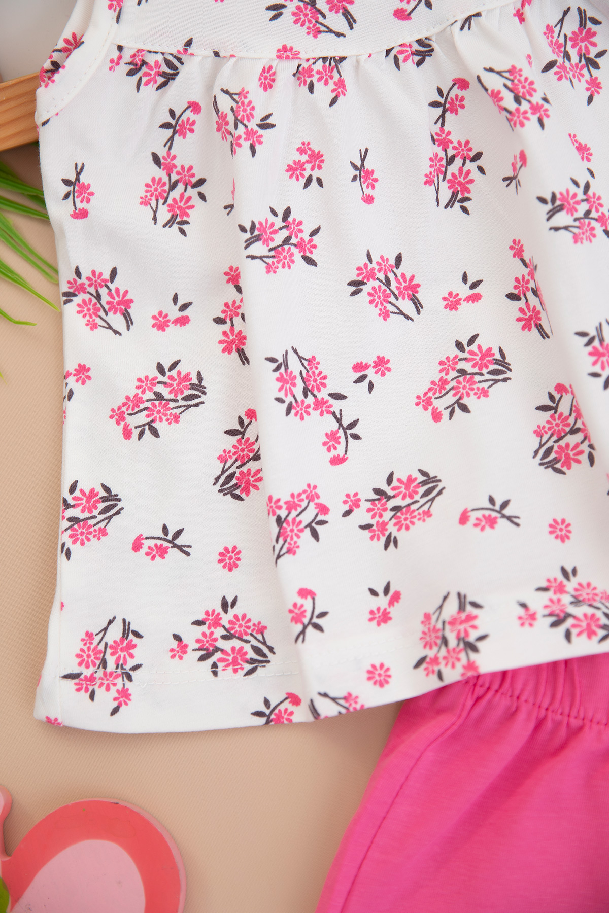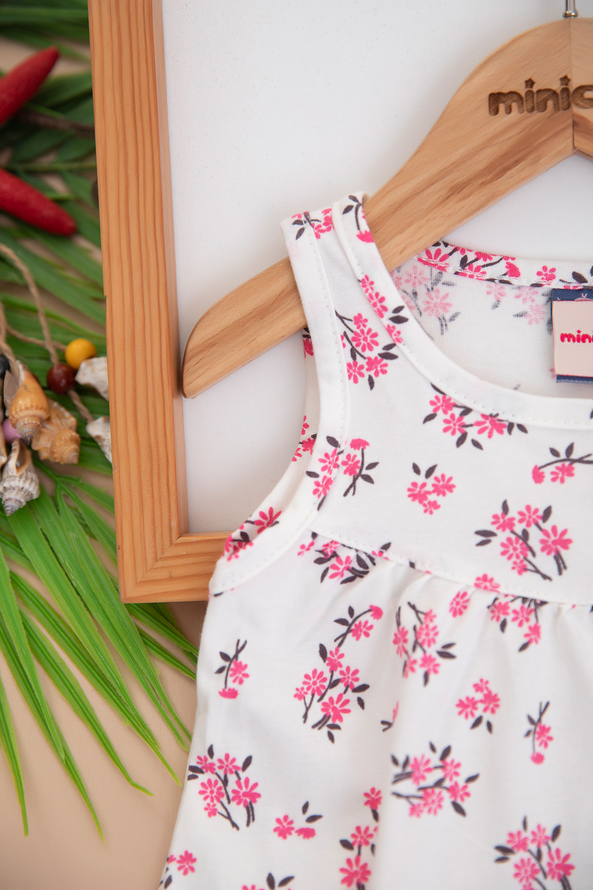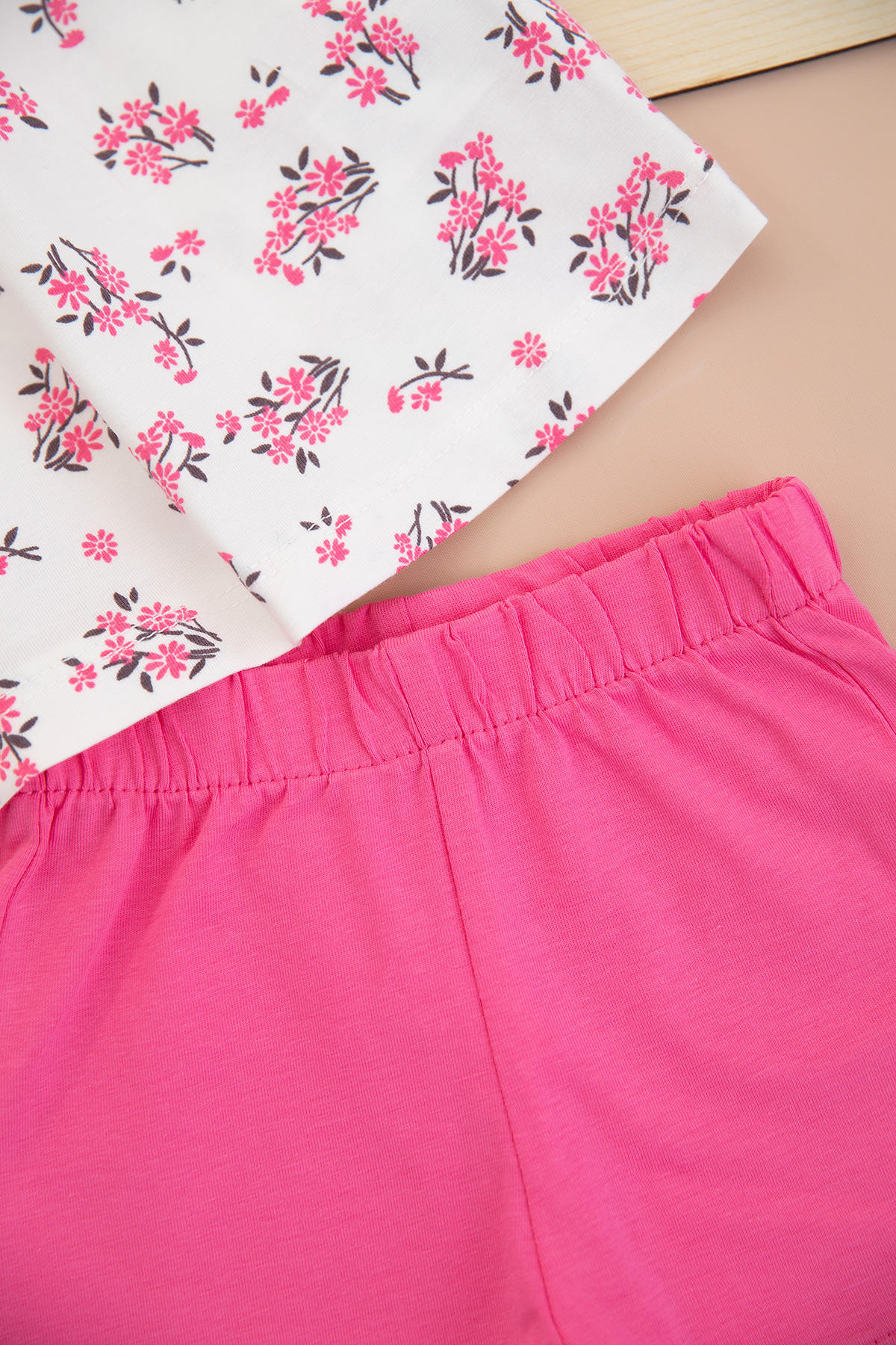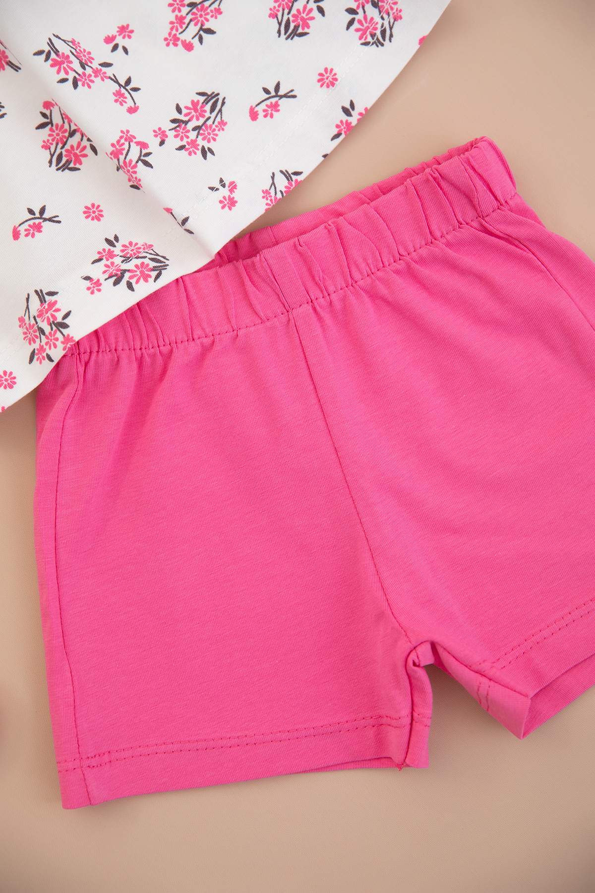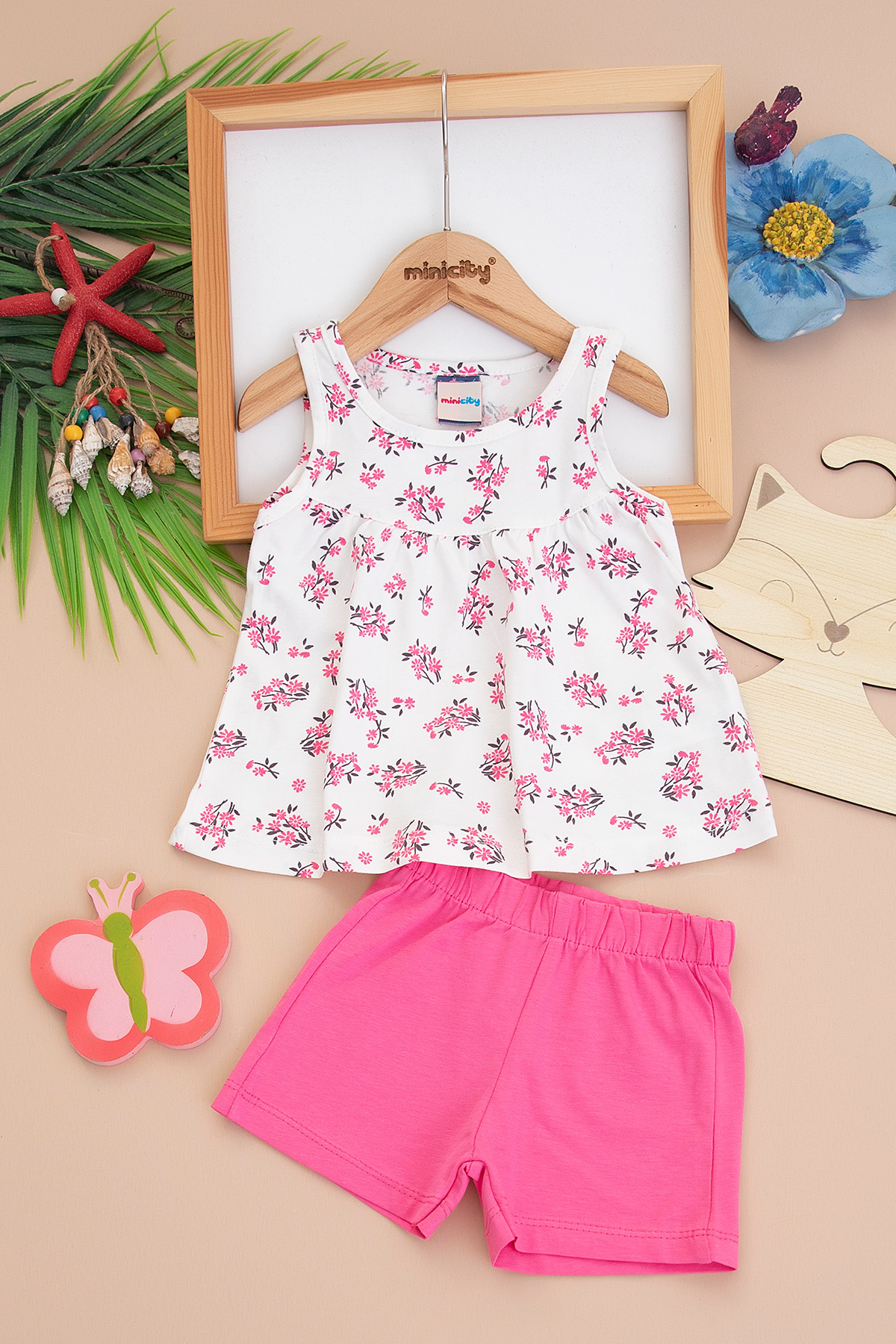 Kız Bebek Çiçek Desenli Askılı Şortlu Takım - 24375 (9-24 Ay)