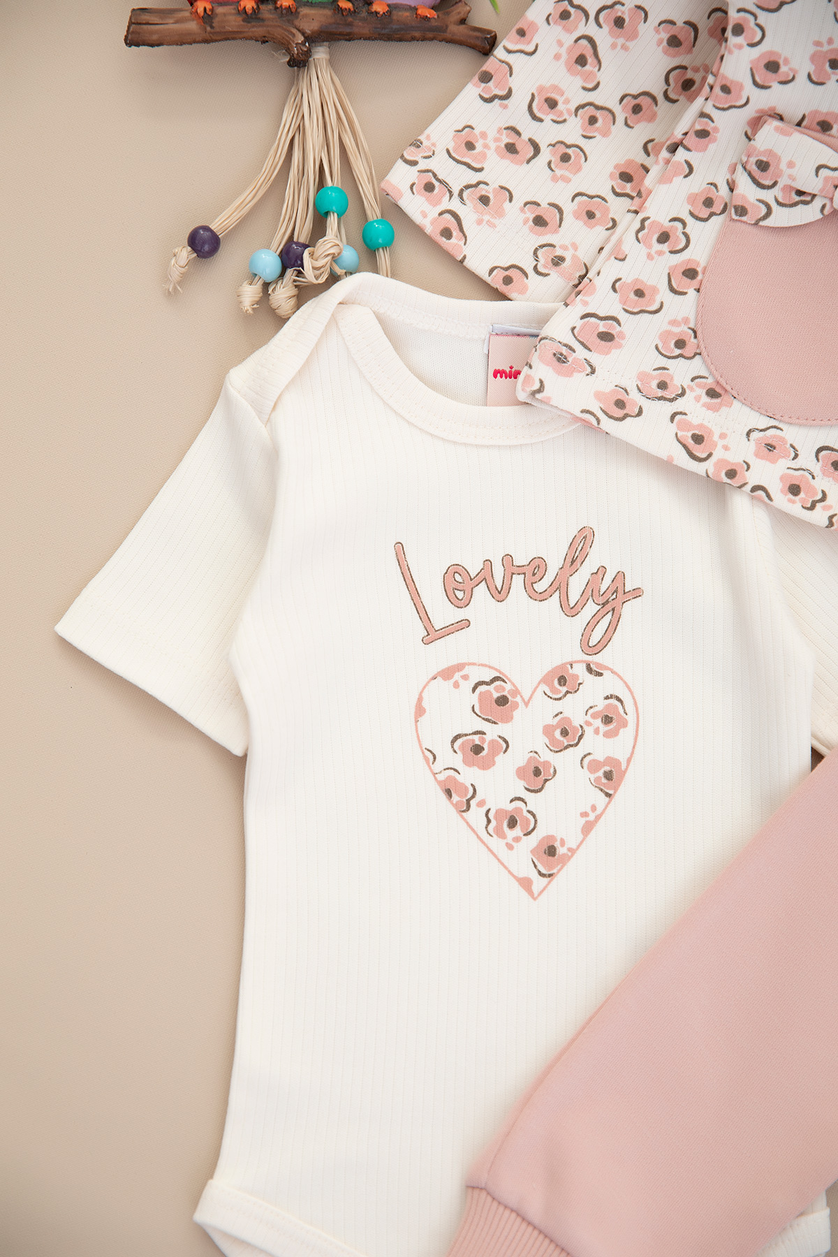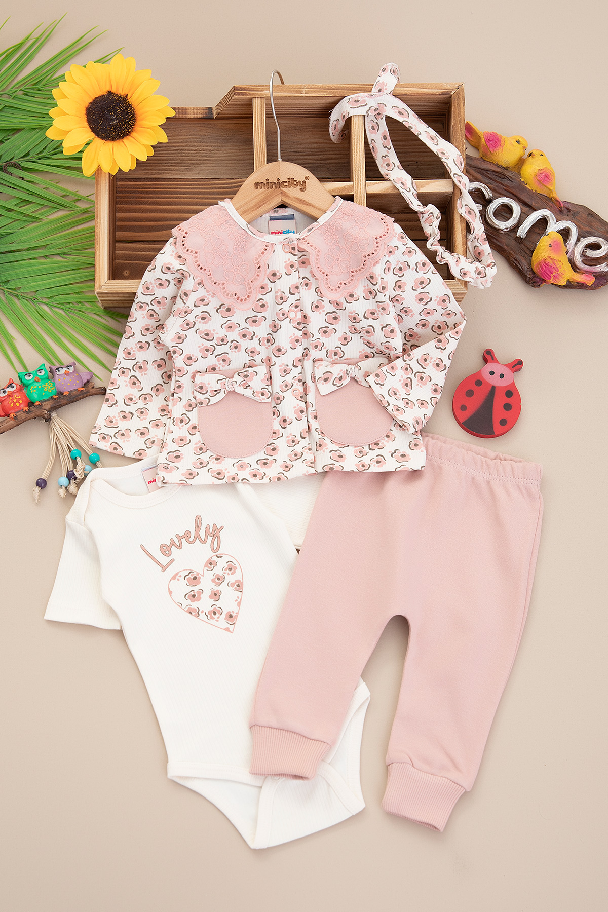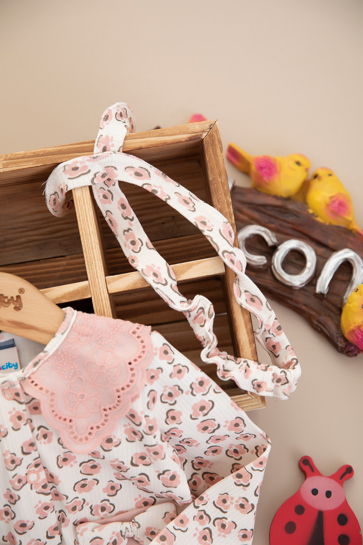 Kız Bebek Çiçek Desenli Badili Takım - NB-056 (3-12 Ay)
