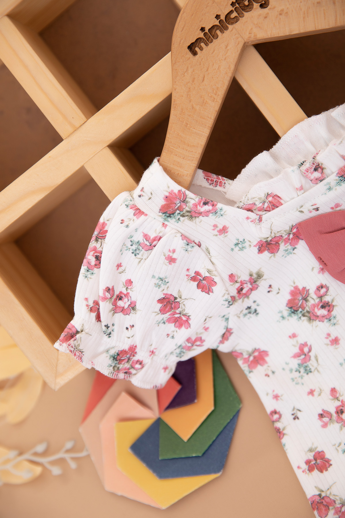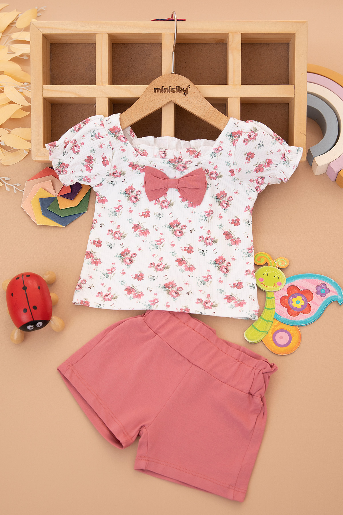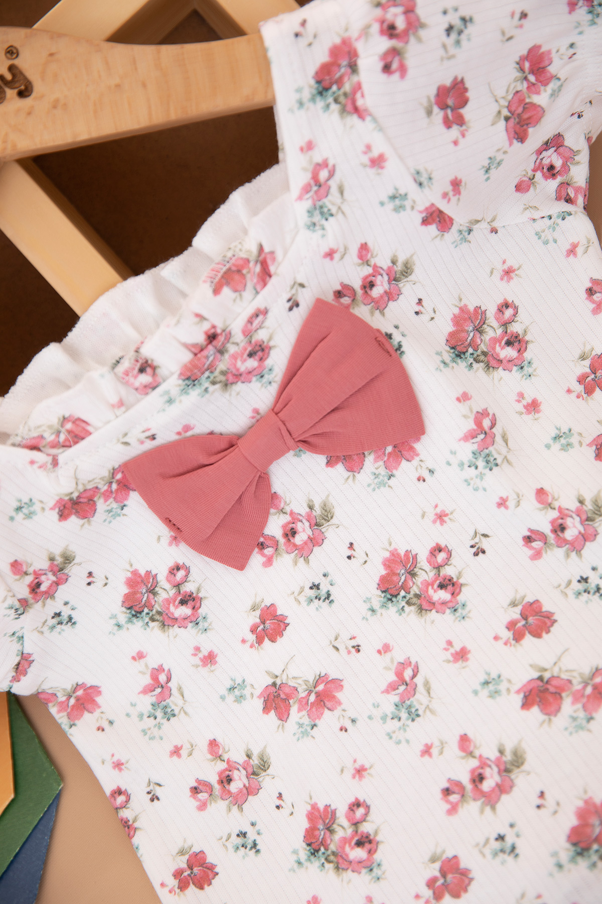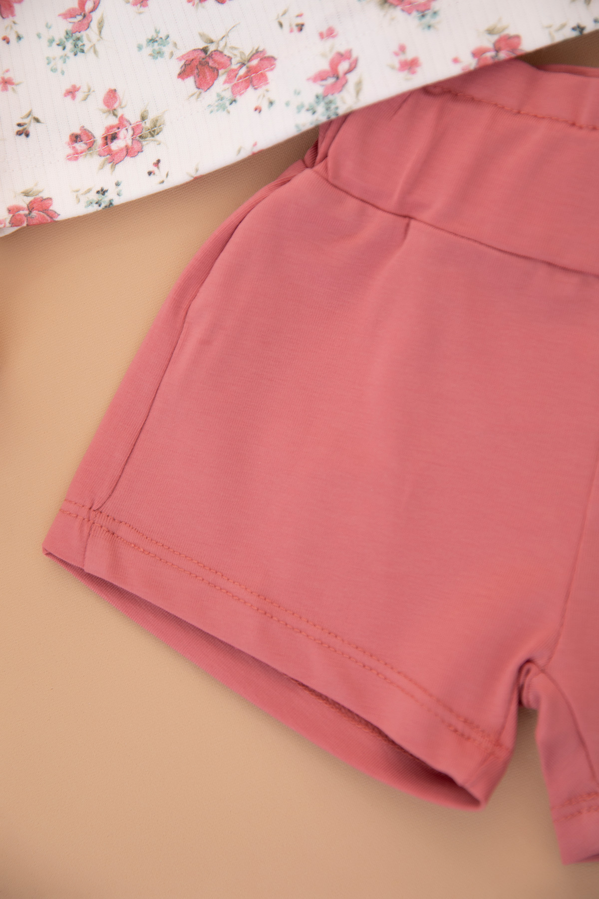 Kız Bebek Çiçek Desenli Fiyonklu Şortlu Takım - 25519 (9-24 Ay)
