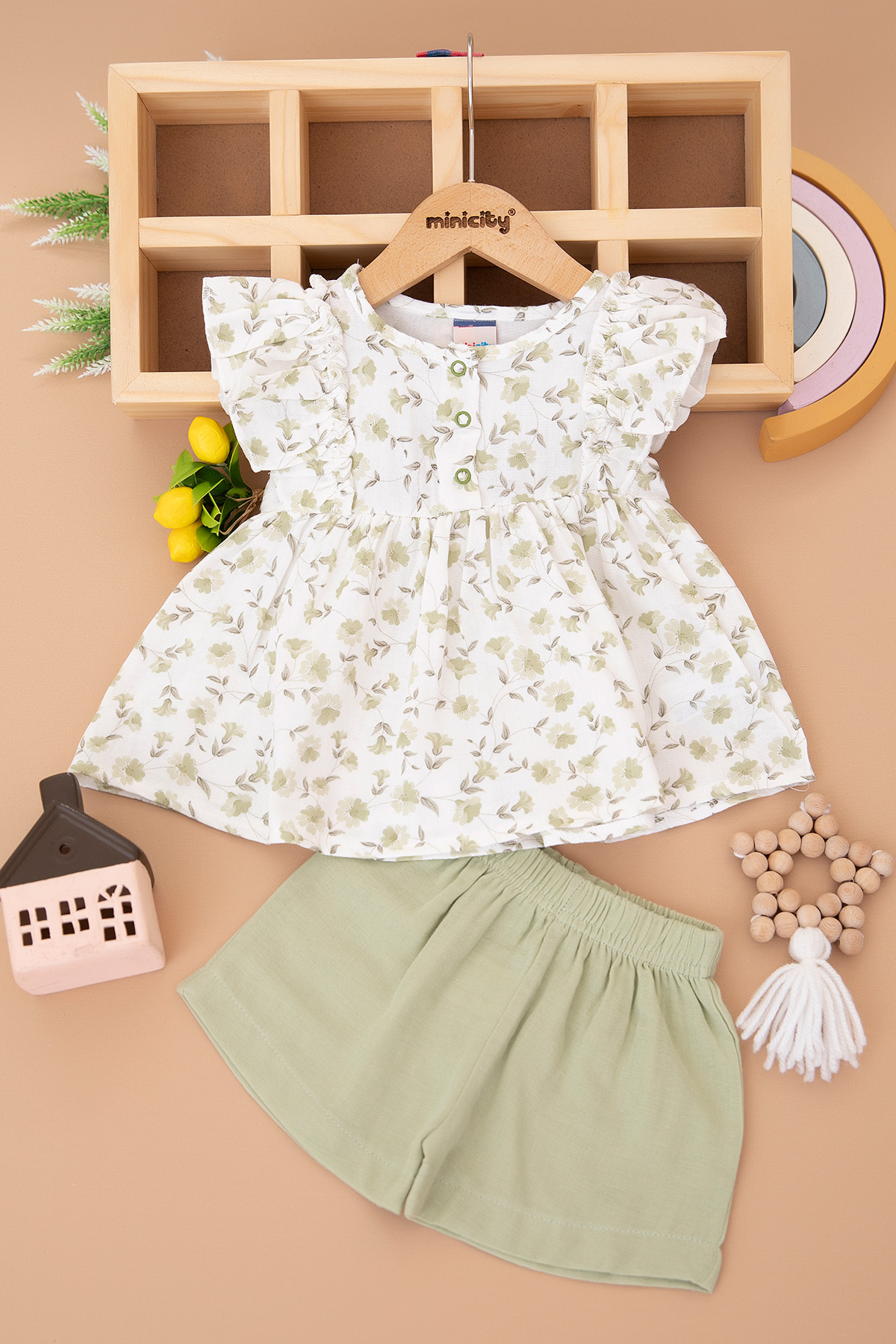 Kız Bebek Çiçek Desenli Şortlu Takım - 24325 (9-24 Ay)