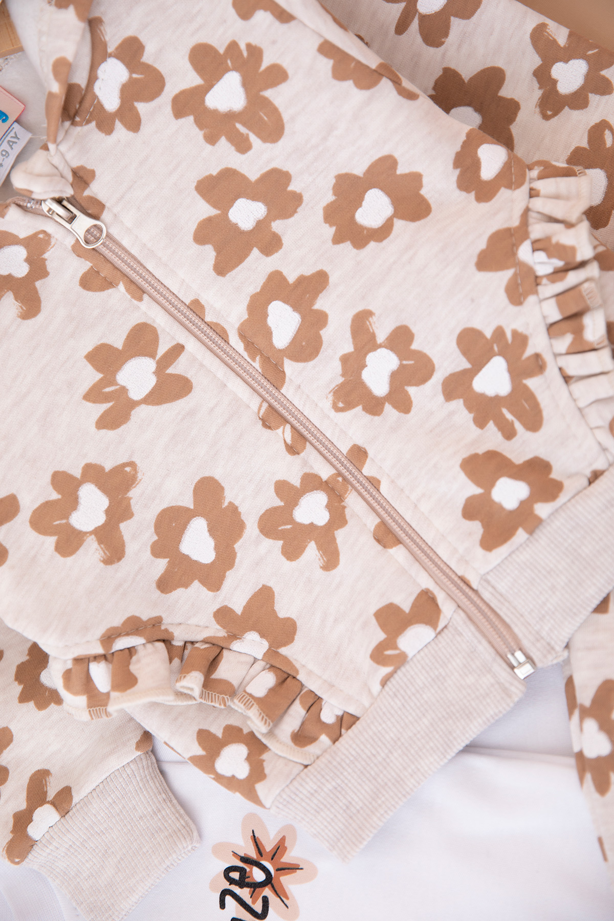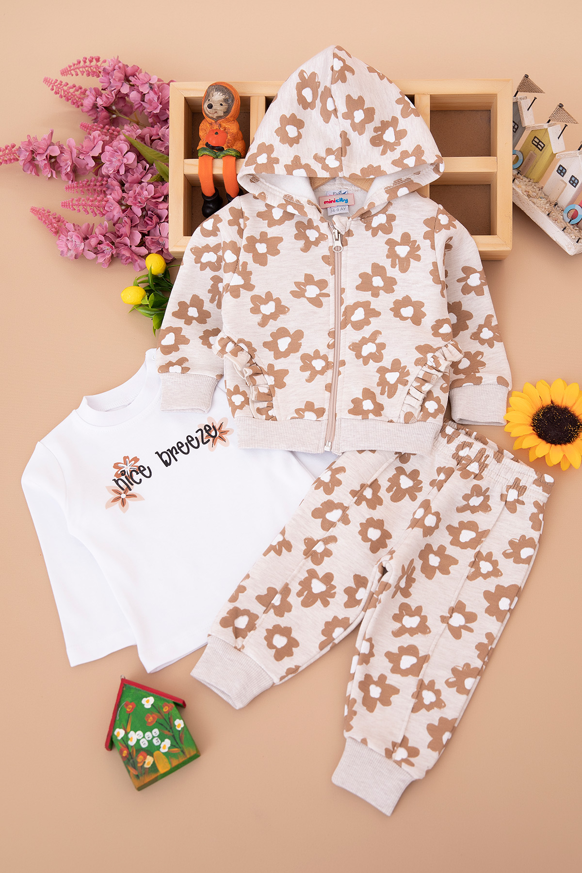 Kız Bebek Çiçek Desenli Üçlü Kapşonlu Takım -25991 (9-24 Ay)