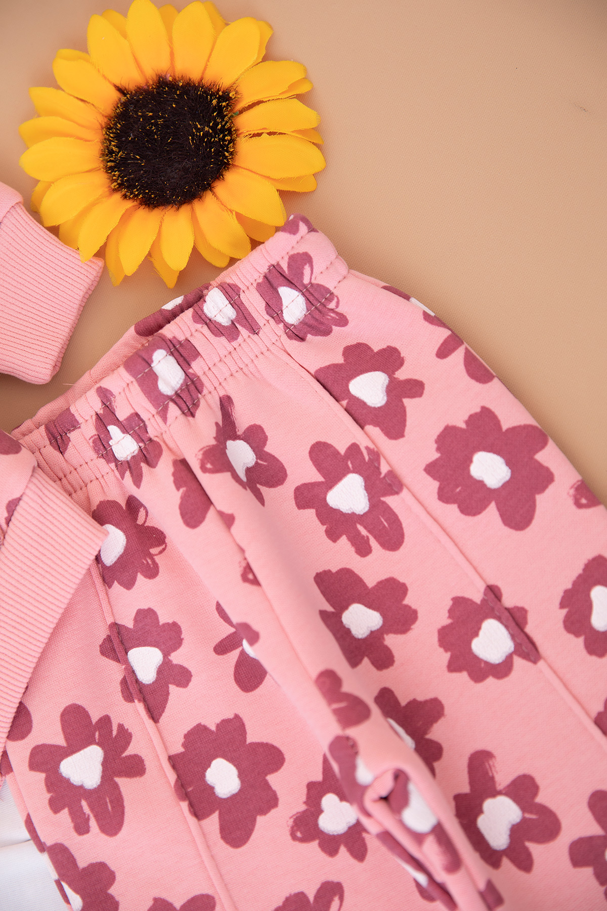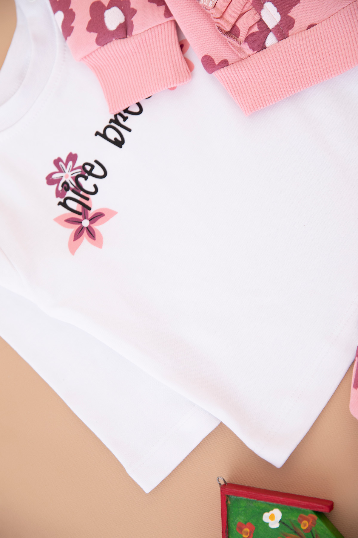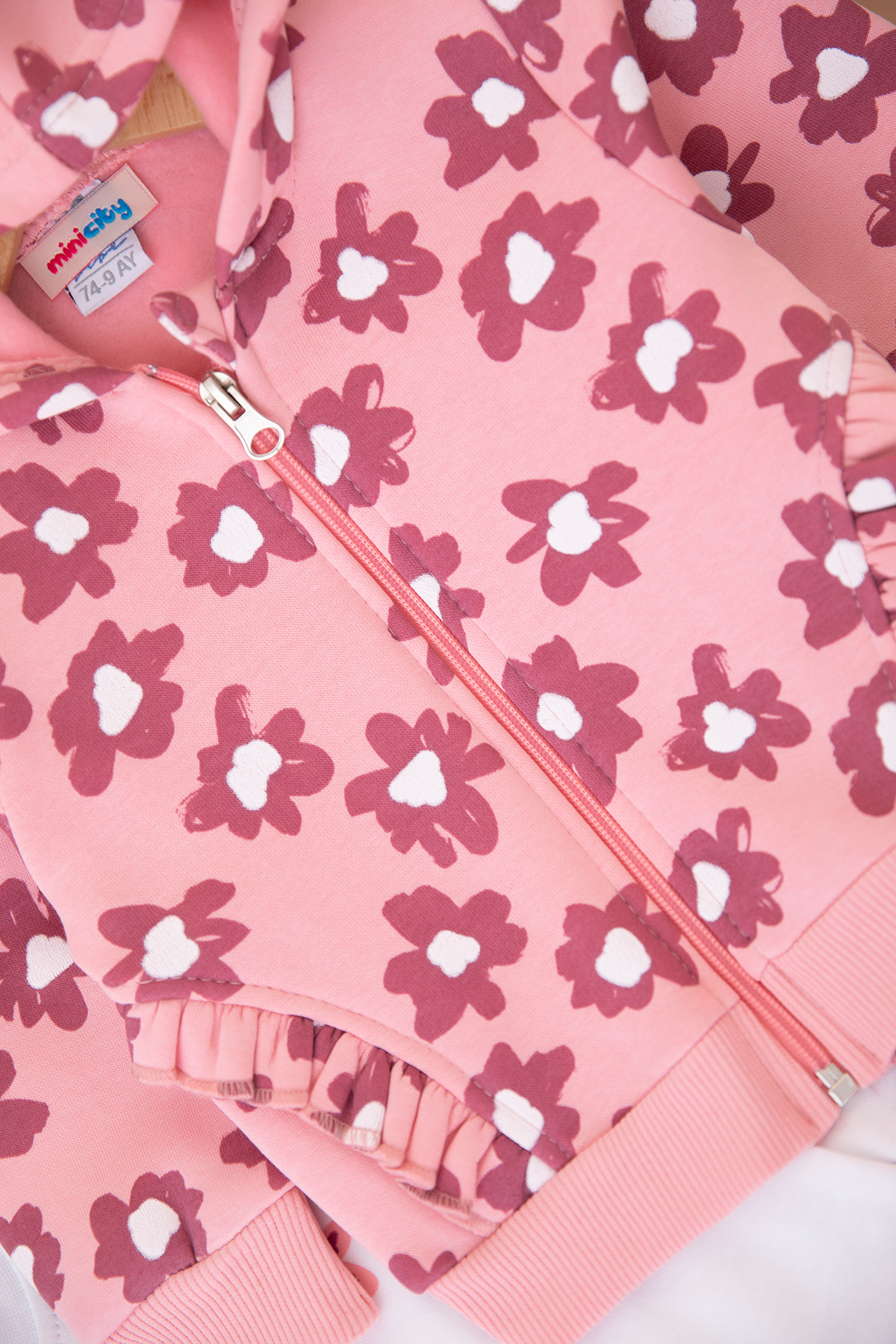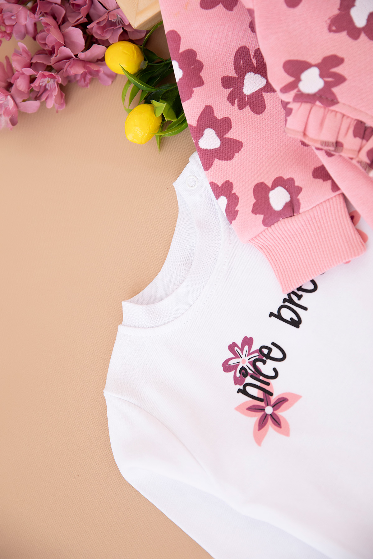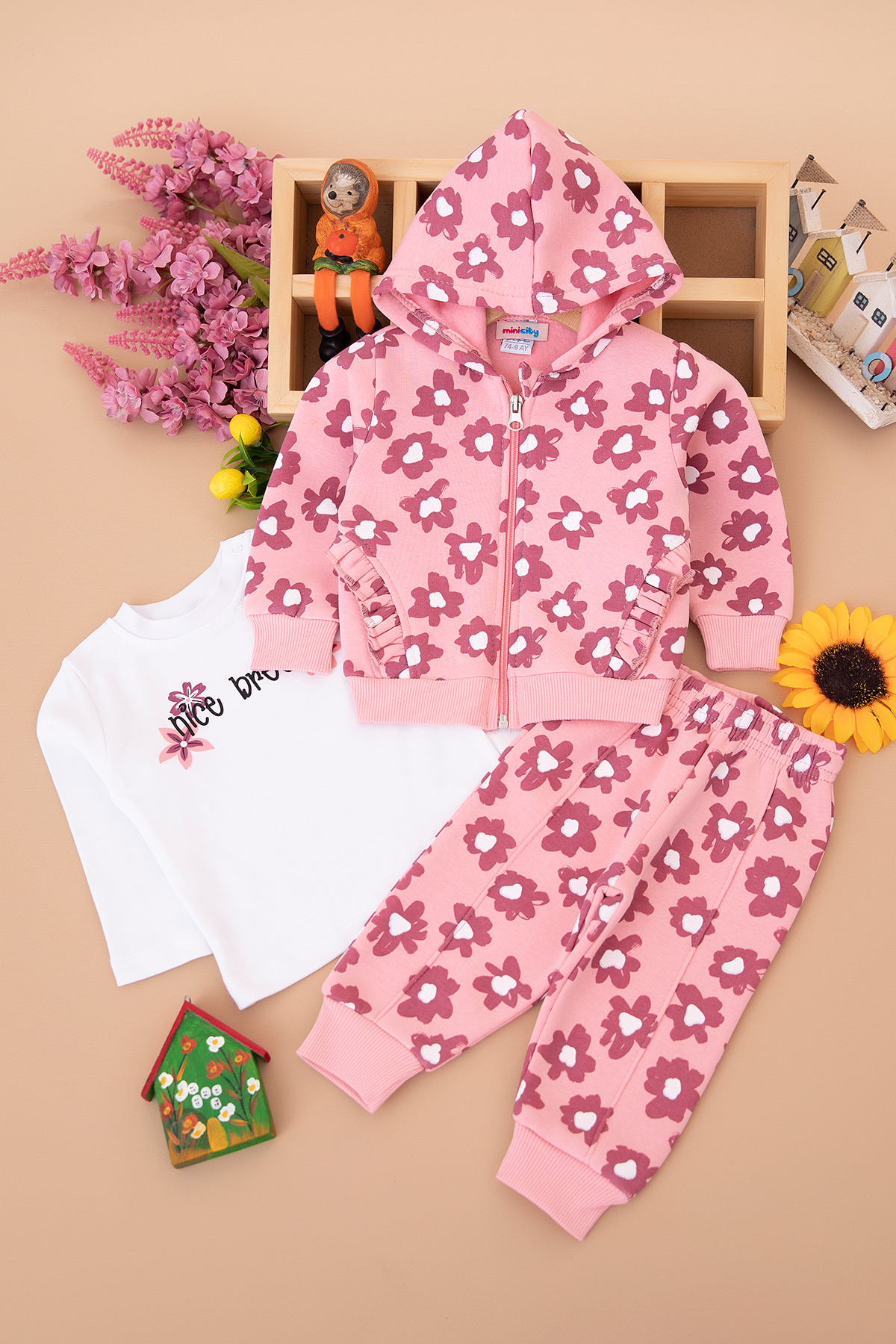Kız Bebek Çiçek Desenli Üçlü Kapşonlu Takım -25991 (9-24 Ay)