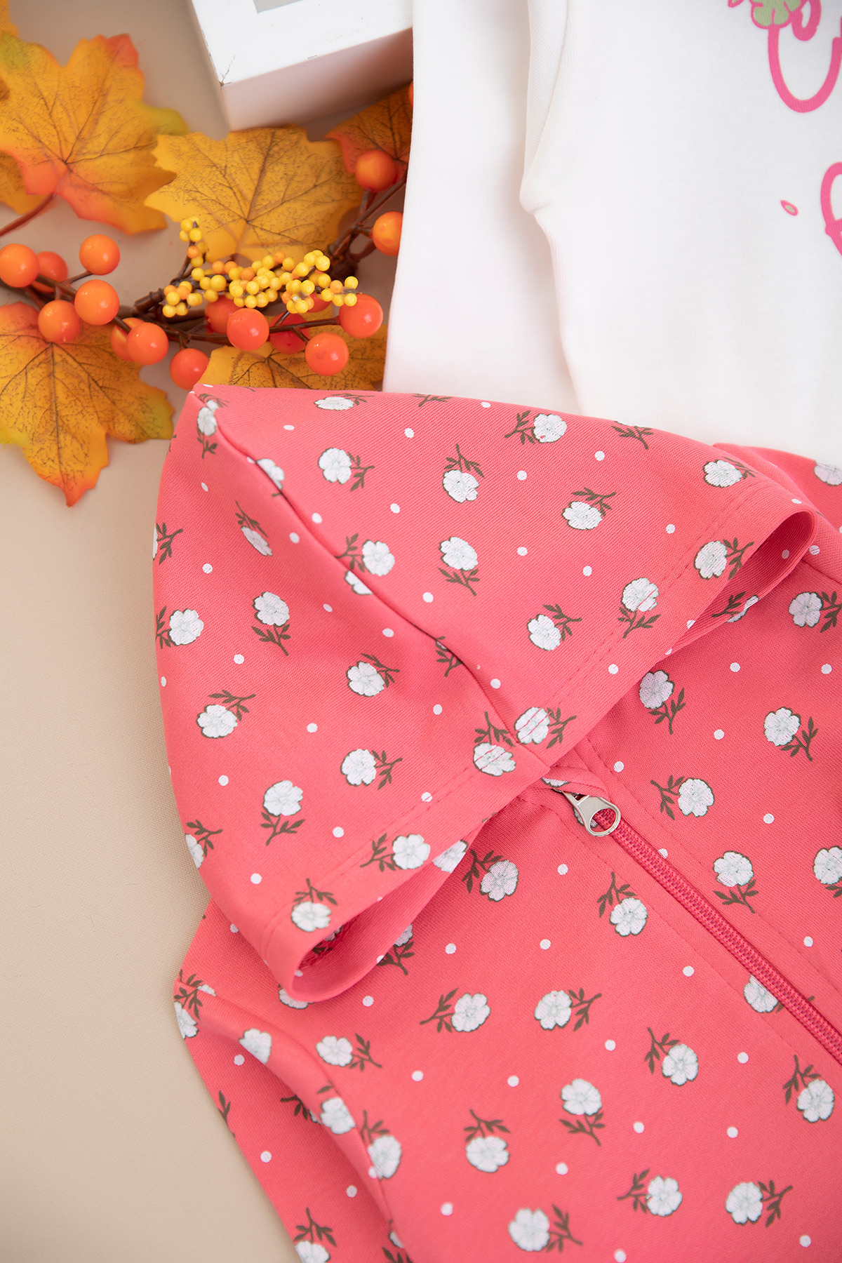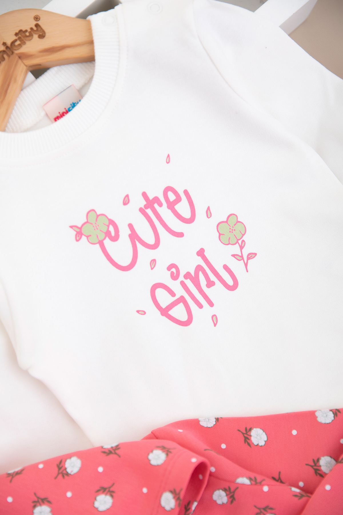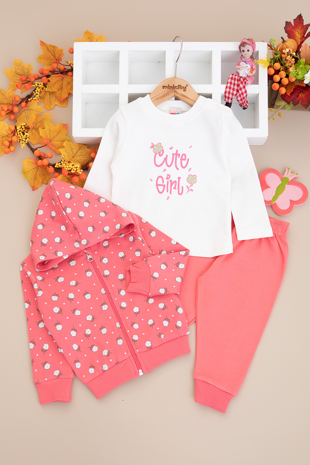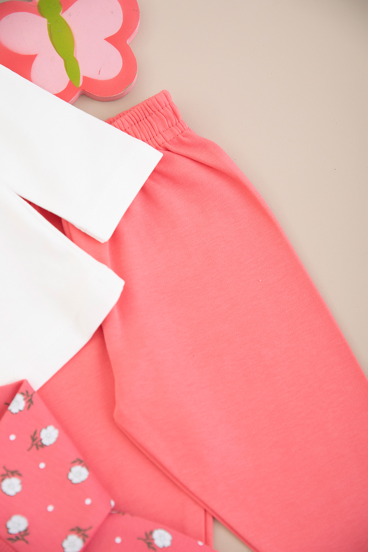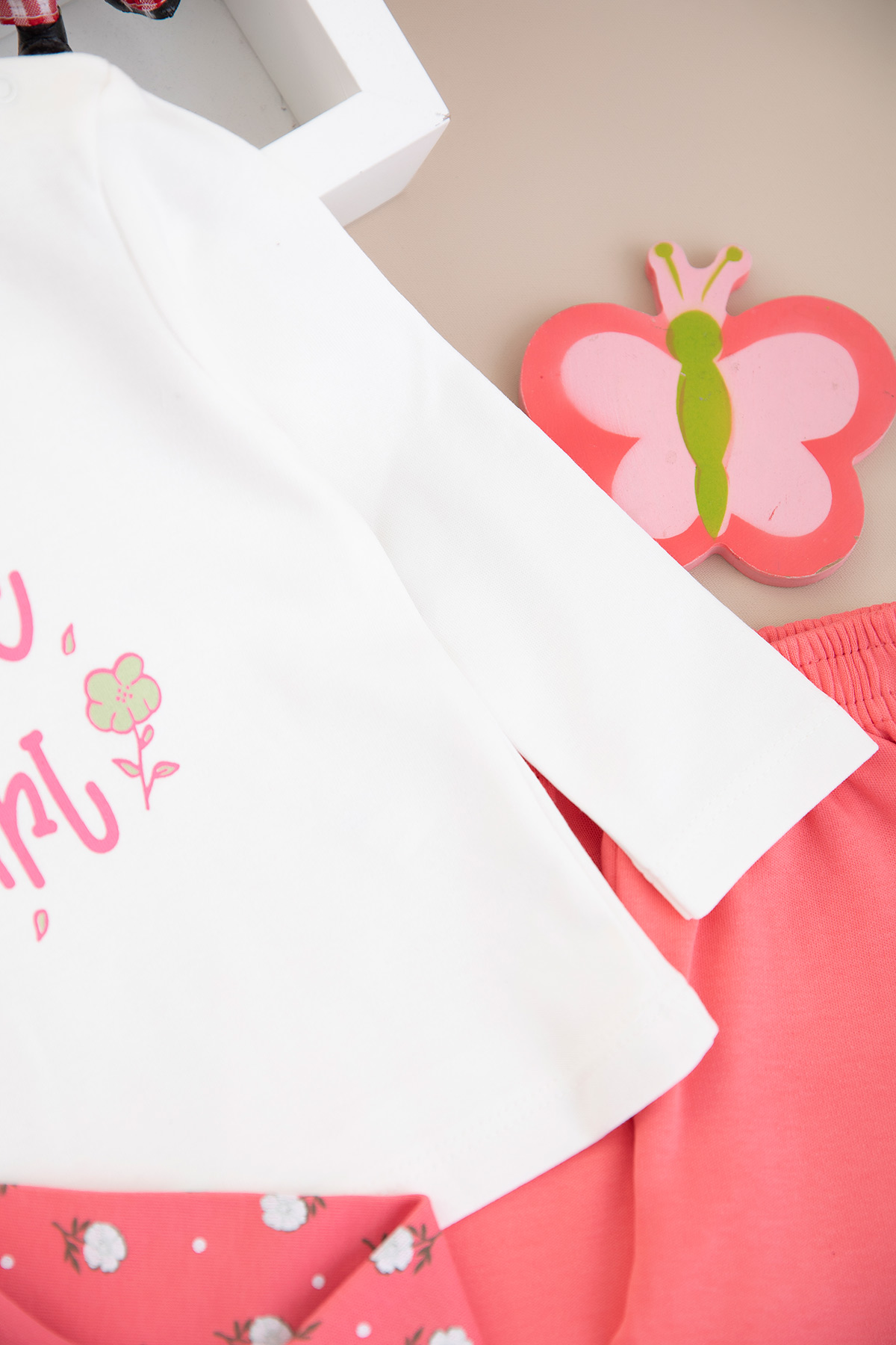 Kız Bebek Çiçek Desenli Üçlü Takım - 25739 (9-24 Ay)