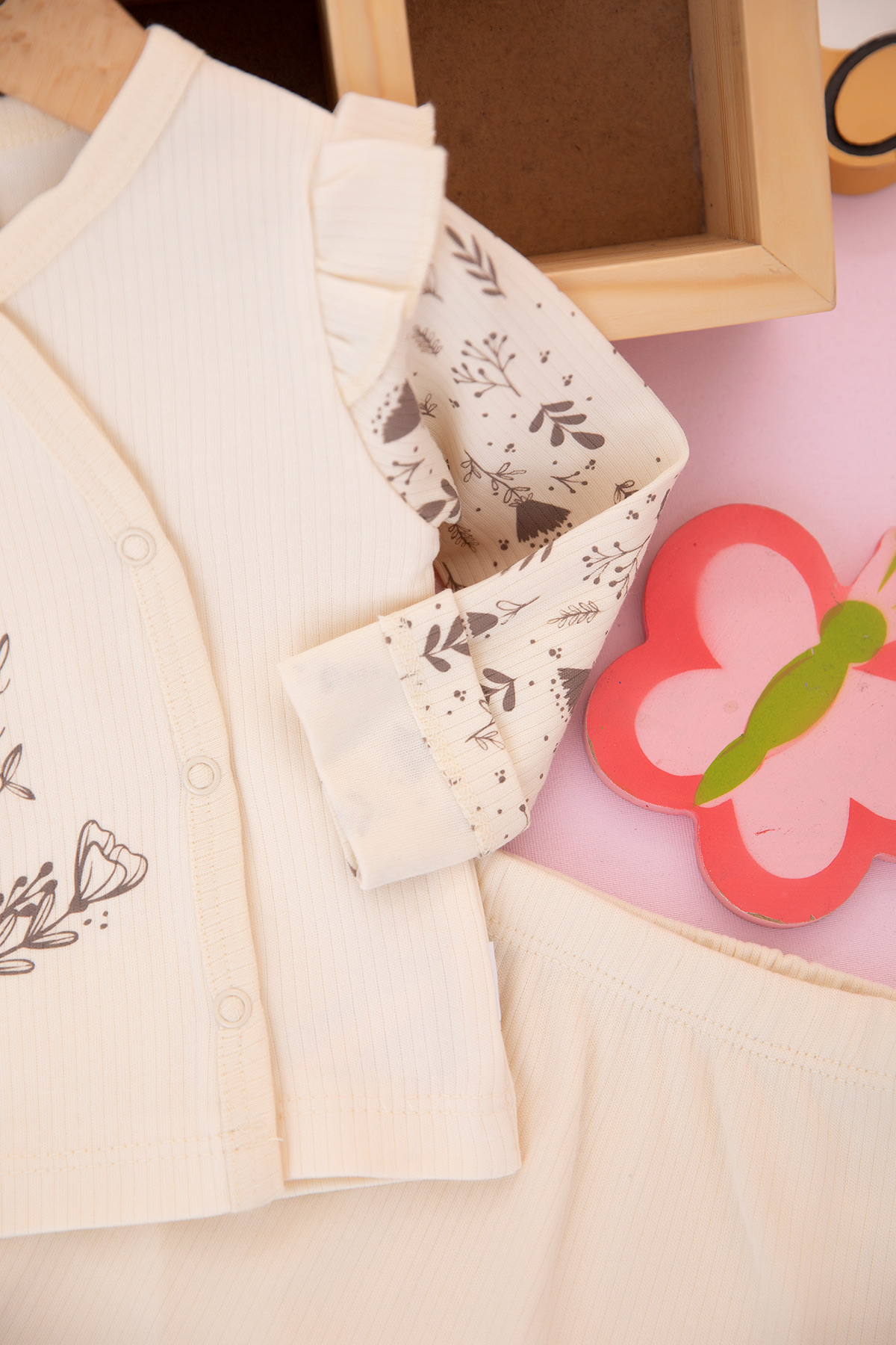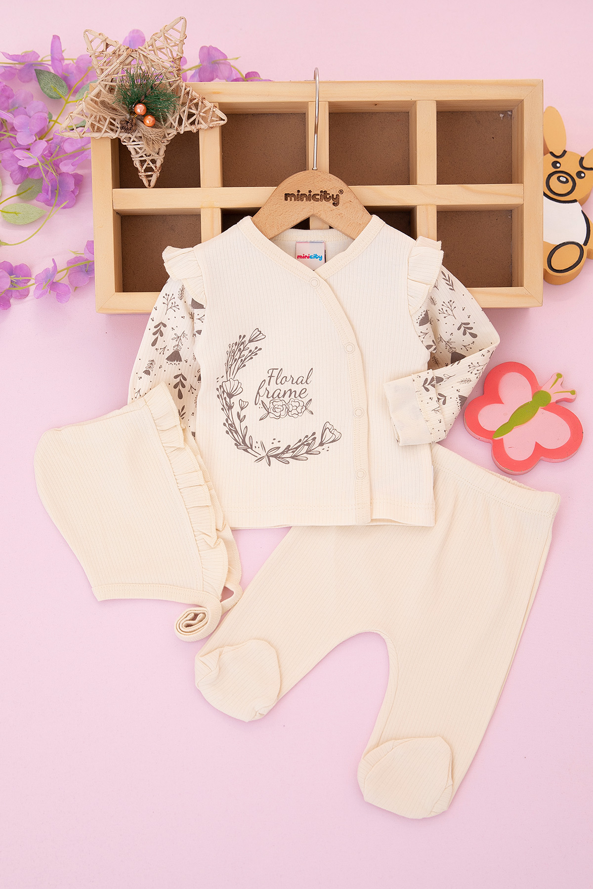 Kız Bebek Çiçek Desenli Zıbın Takımı - NB001 (0-3 Ay)
