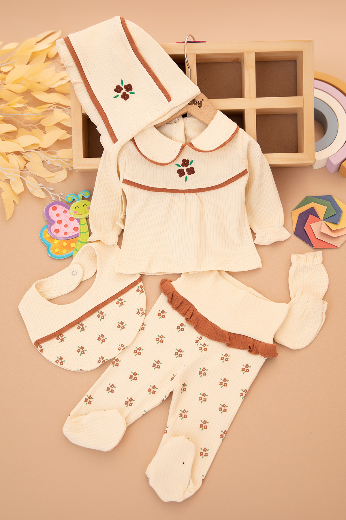 Kız Bebek Çiçek Nakışlı 5`Li Zıbın Seti - 2571 (0-3 Ay)