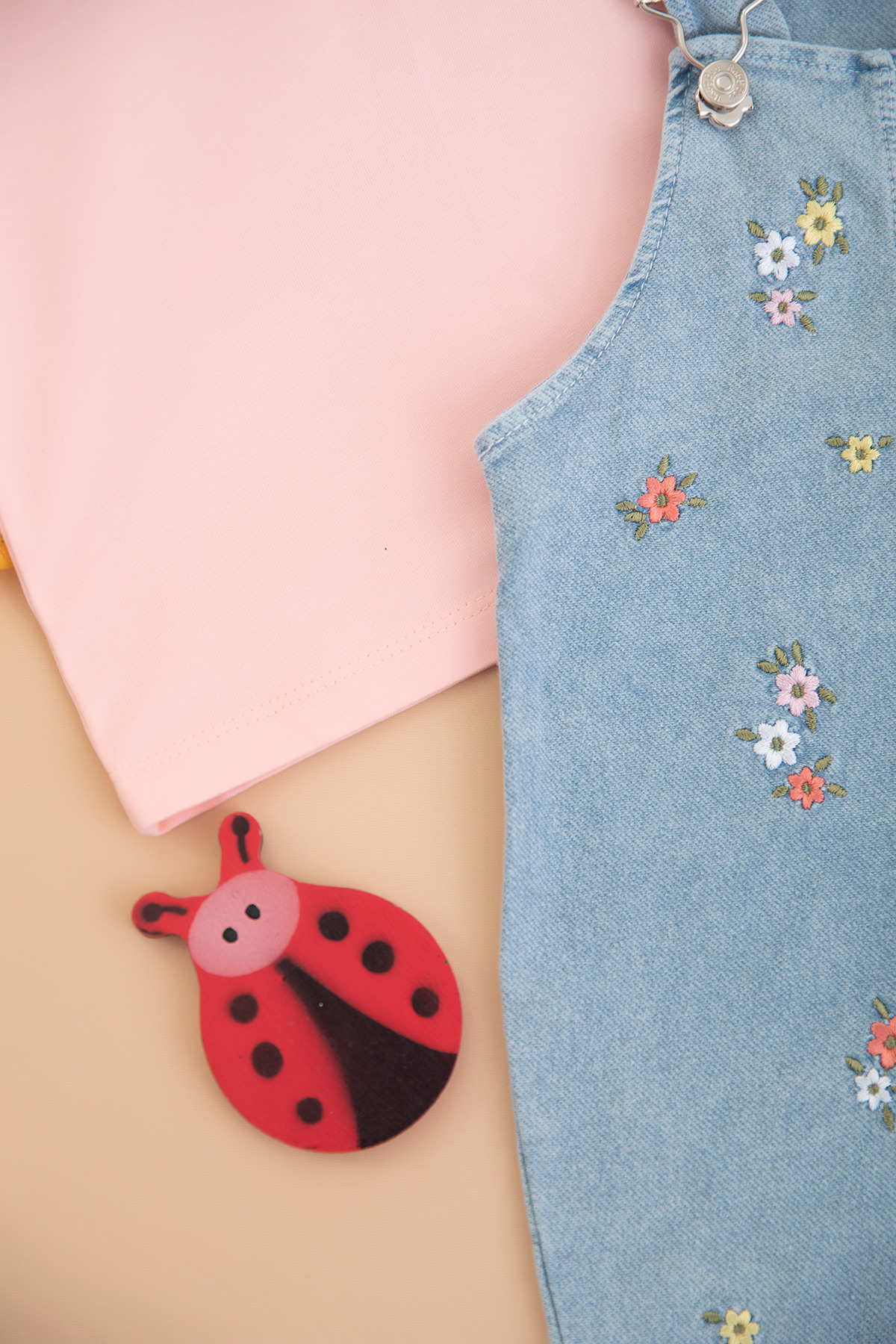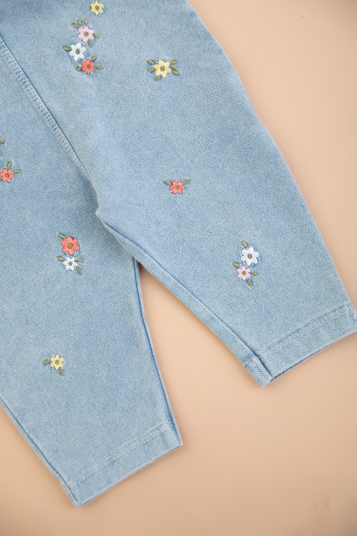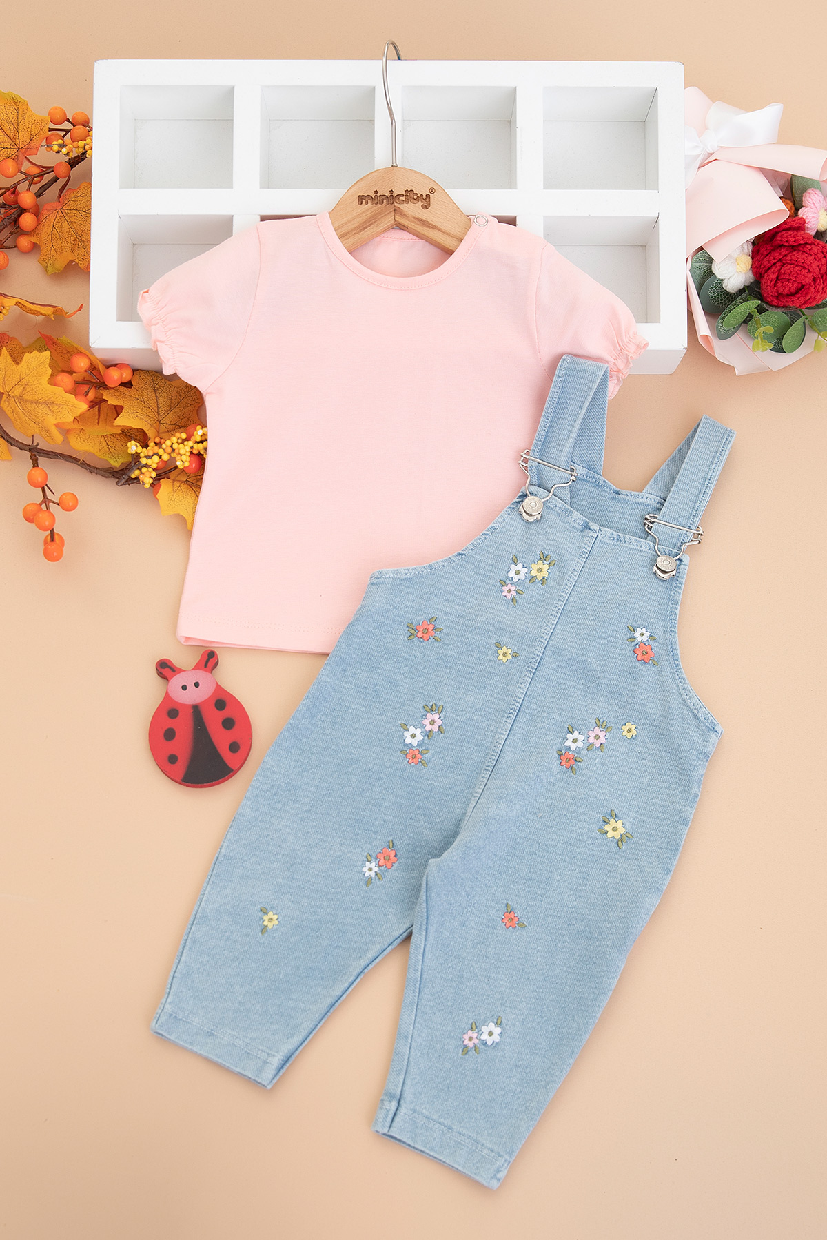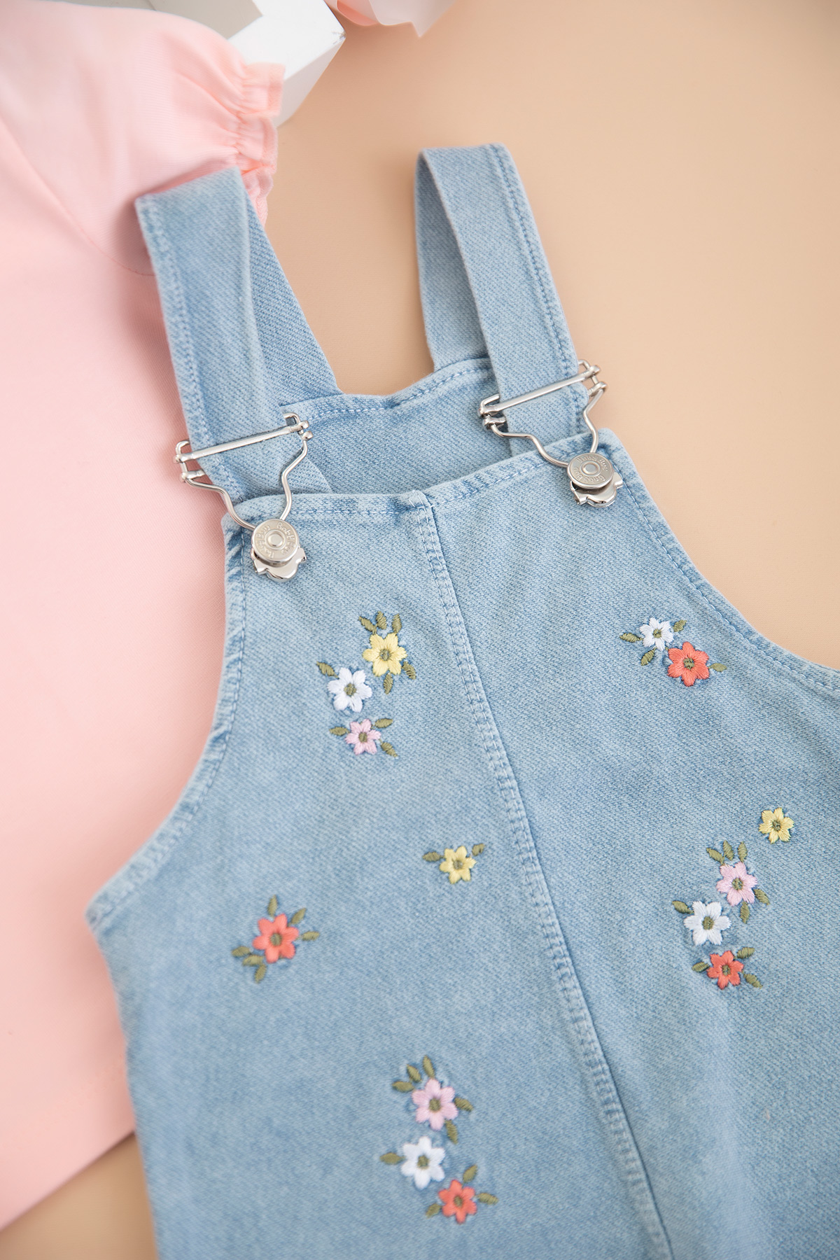 Kız Bebek Çiçek Nakışlı Badili Kot Salopet - 0270 (9-24 Ay)