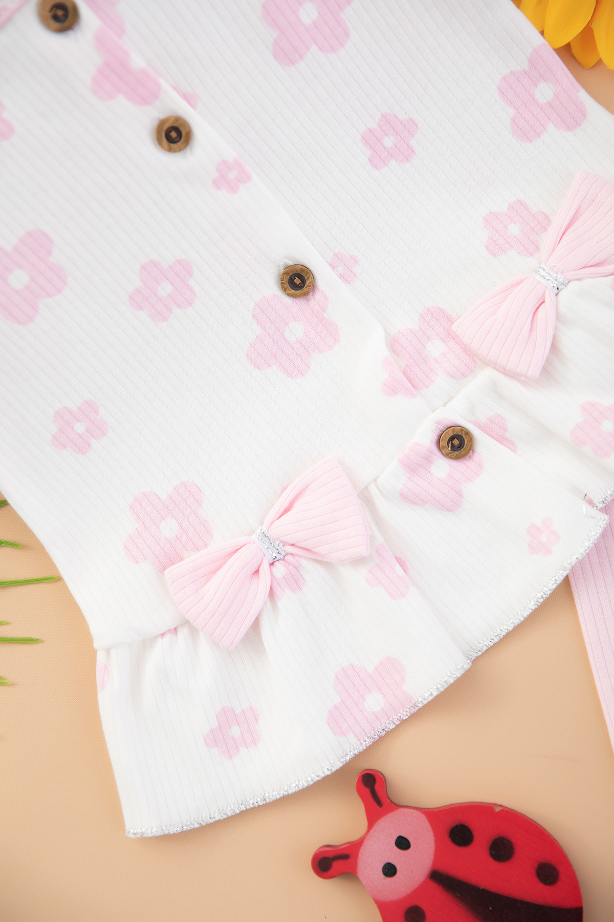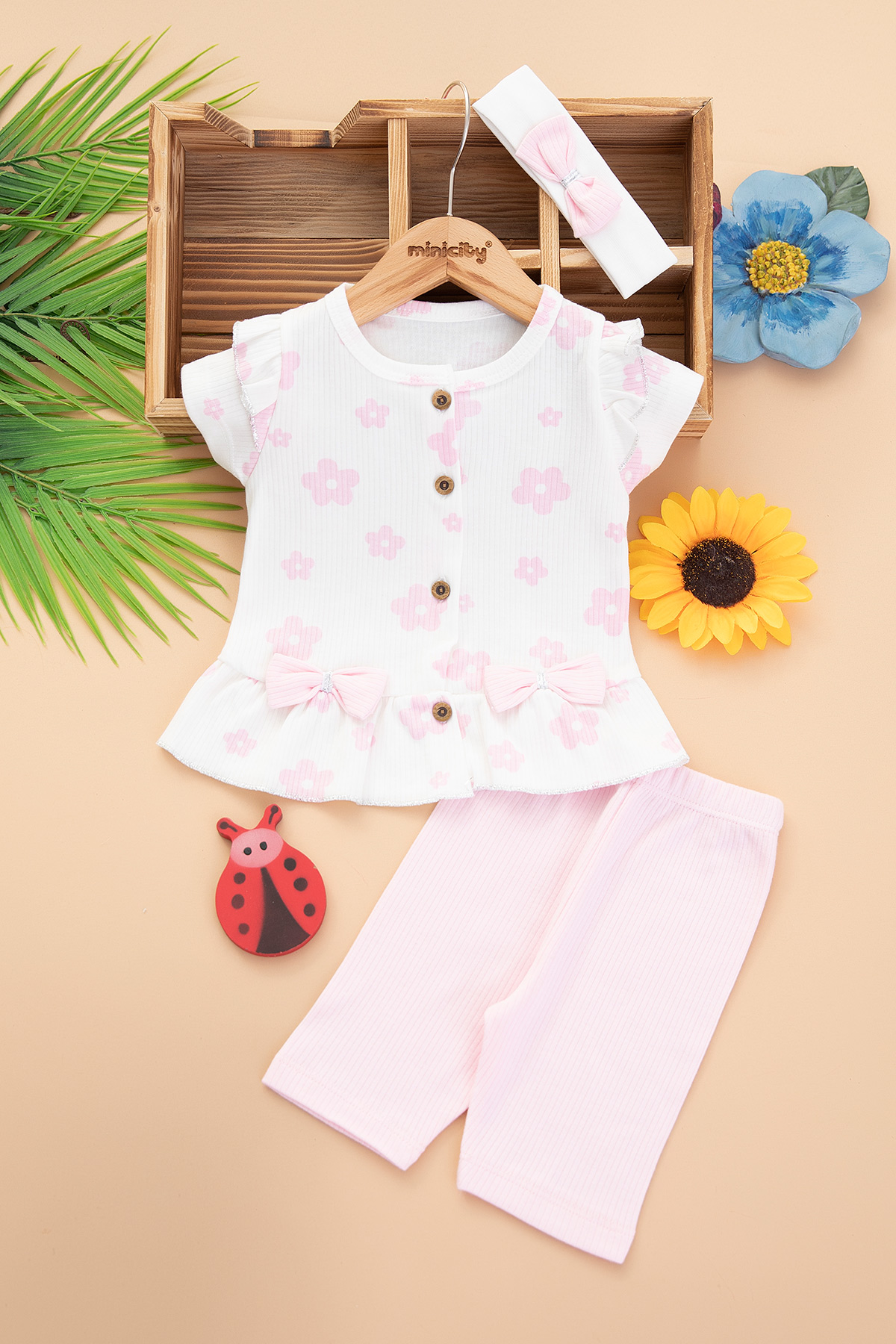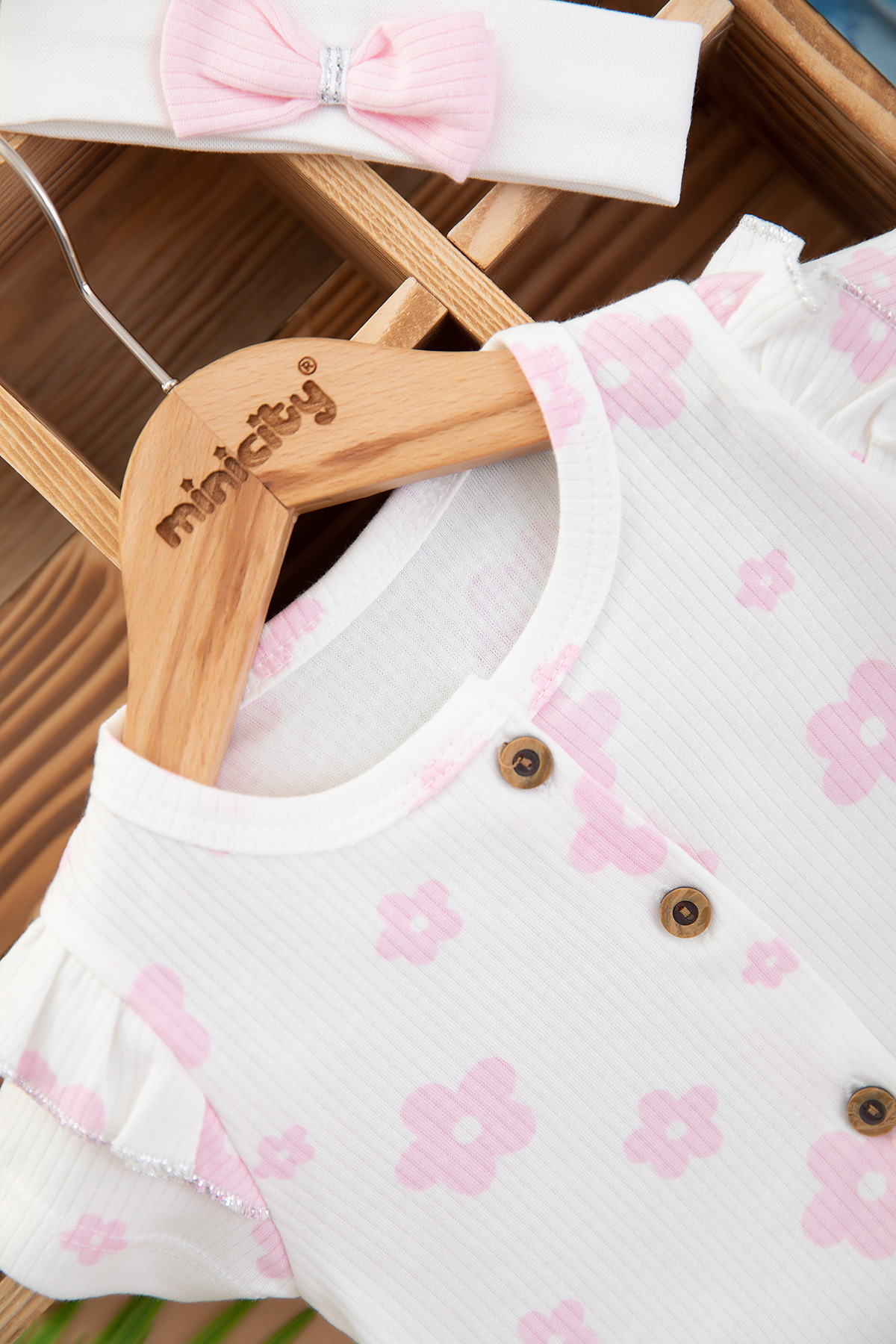 Kız Bebek Çiçek Nakışlı Bandanalı Takım - 1467 (6-12 Ay)