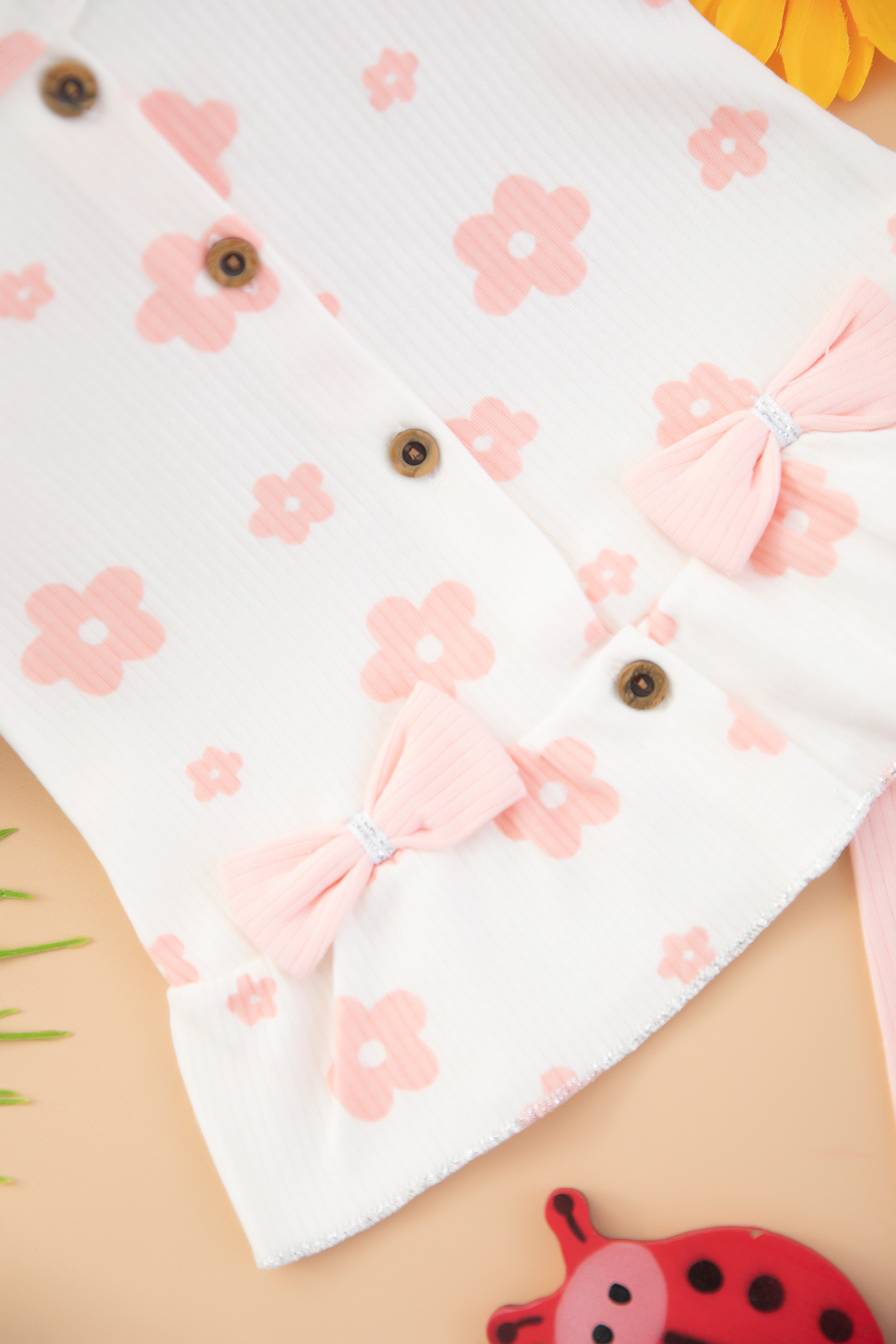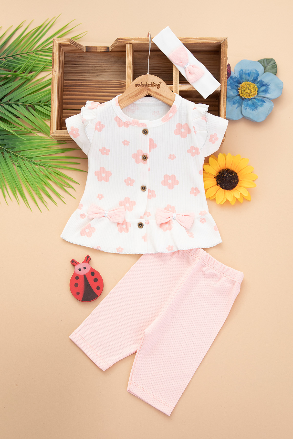 Kız Bebek Çiçek Nakışlı Bandanalı Takım - 1467 (6-12 Ay)
