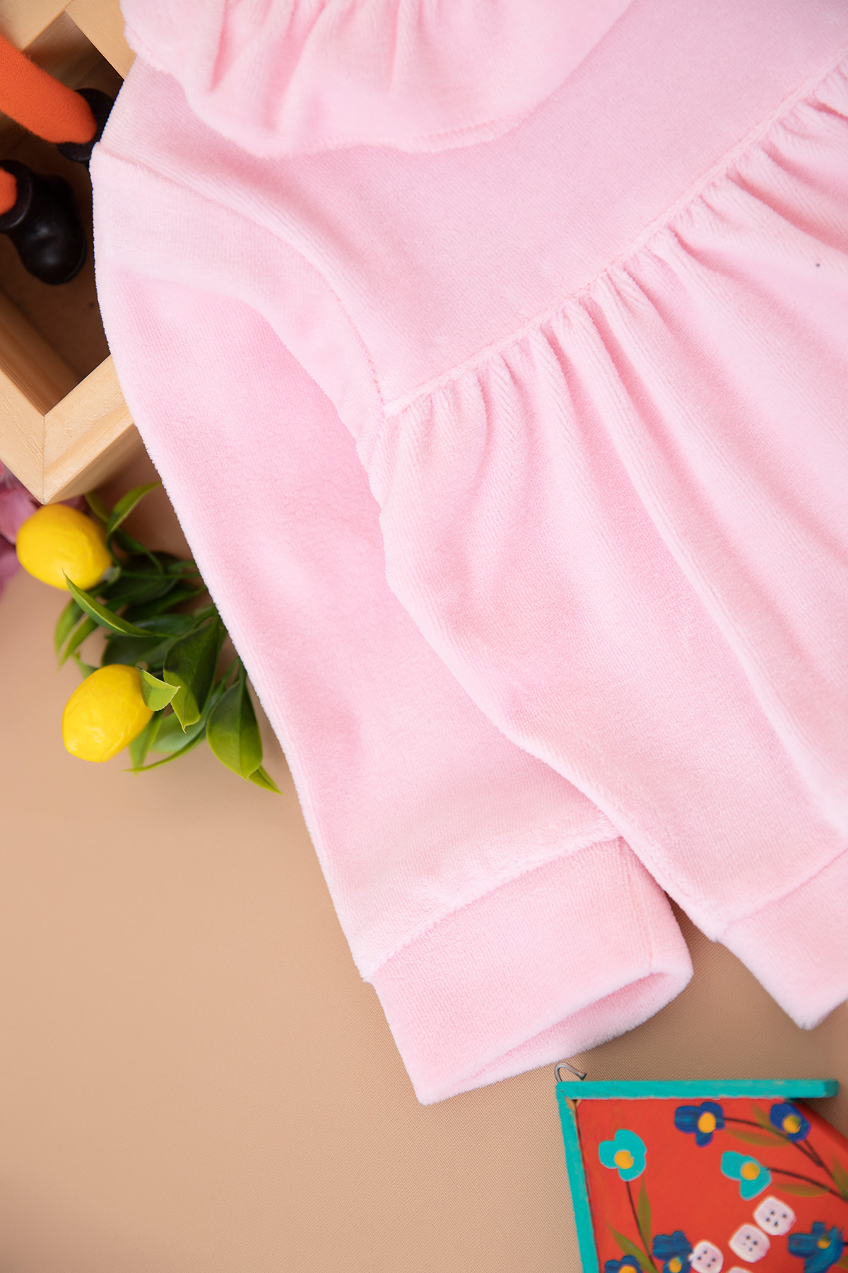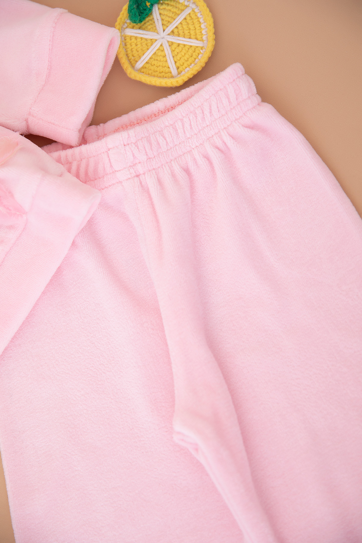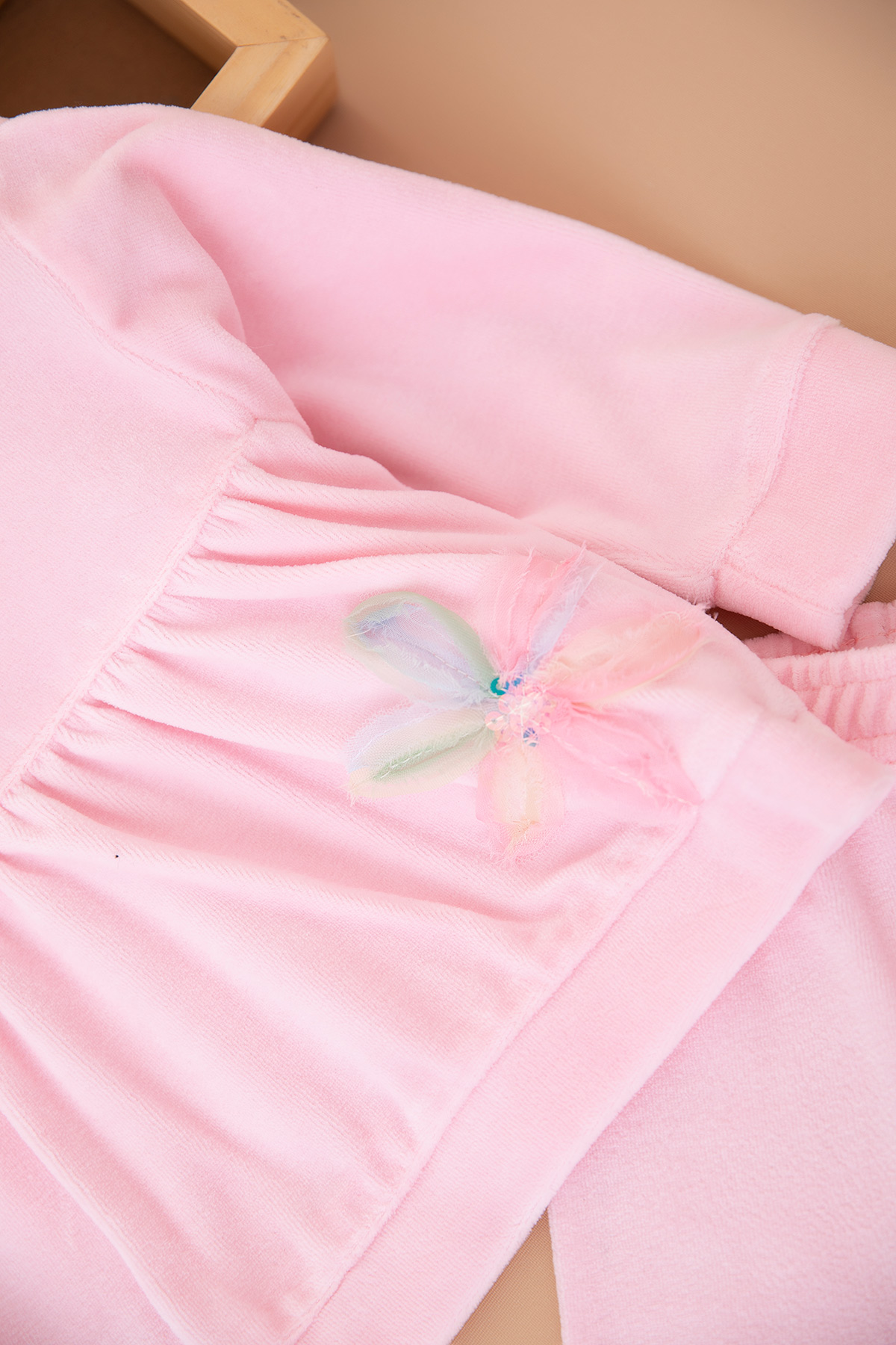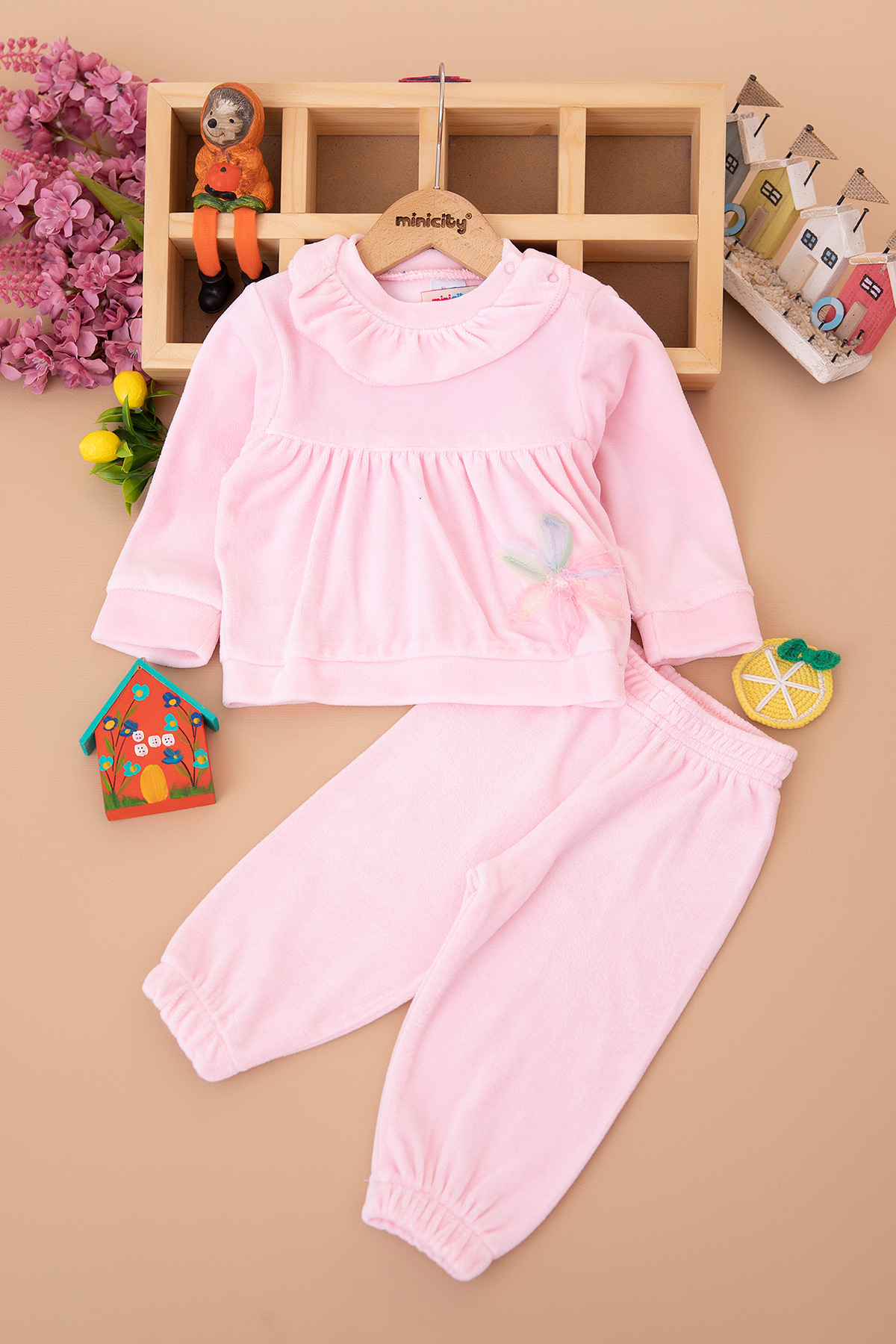 Kız Bebek Çiçek Nakışlı Kadife Takım - 25974 (9-24 Ay)