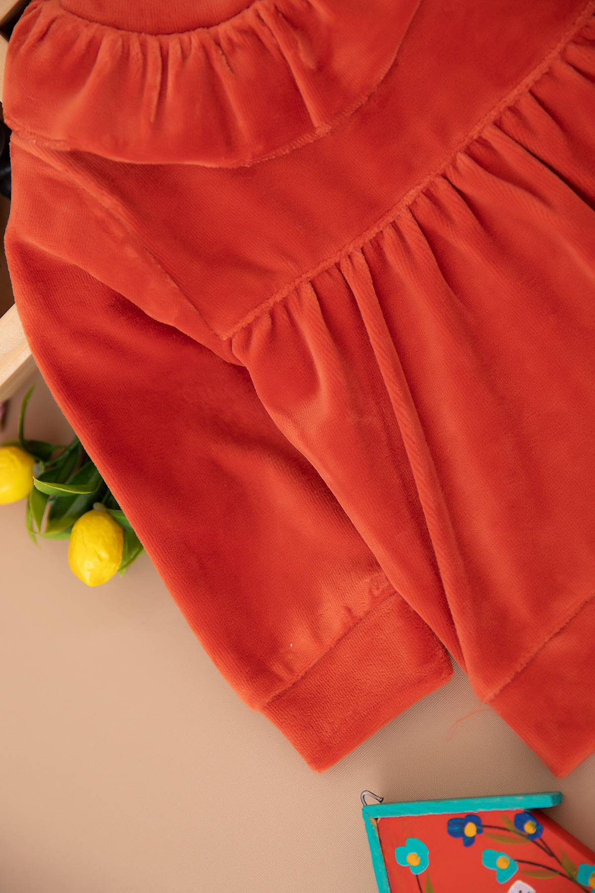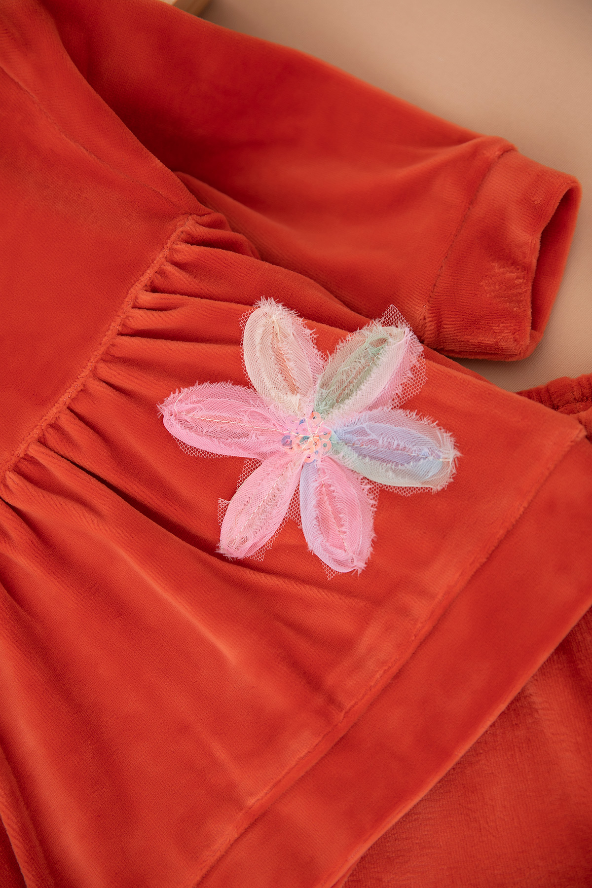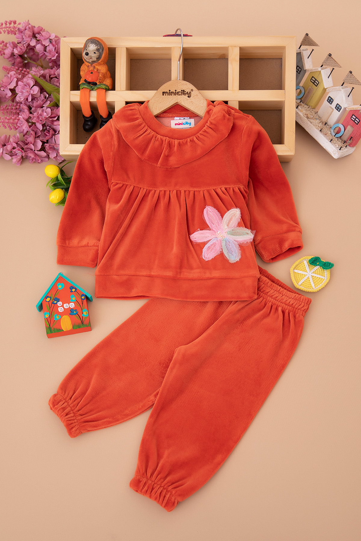 Kız Bebek Çiçek Nakışlı Kadife Takım - 25974 (9-24 Ay)