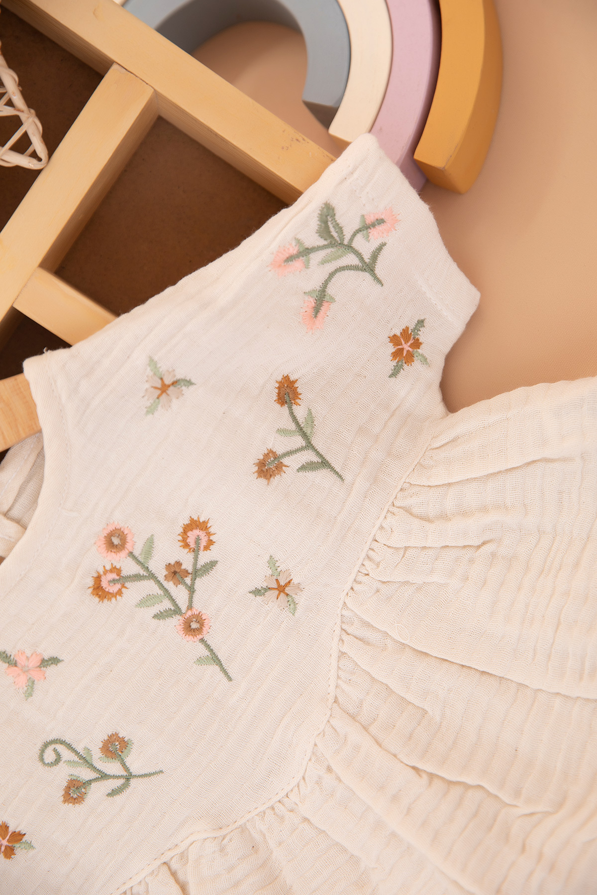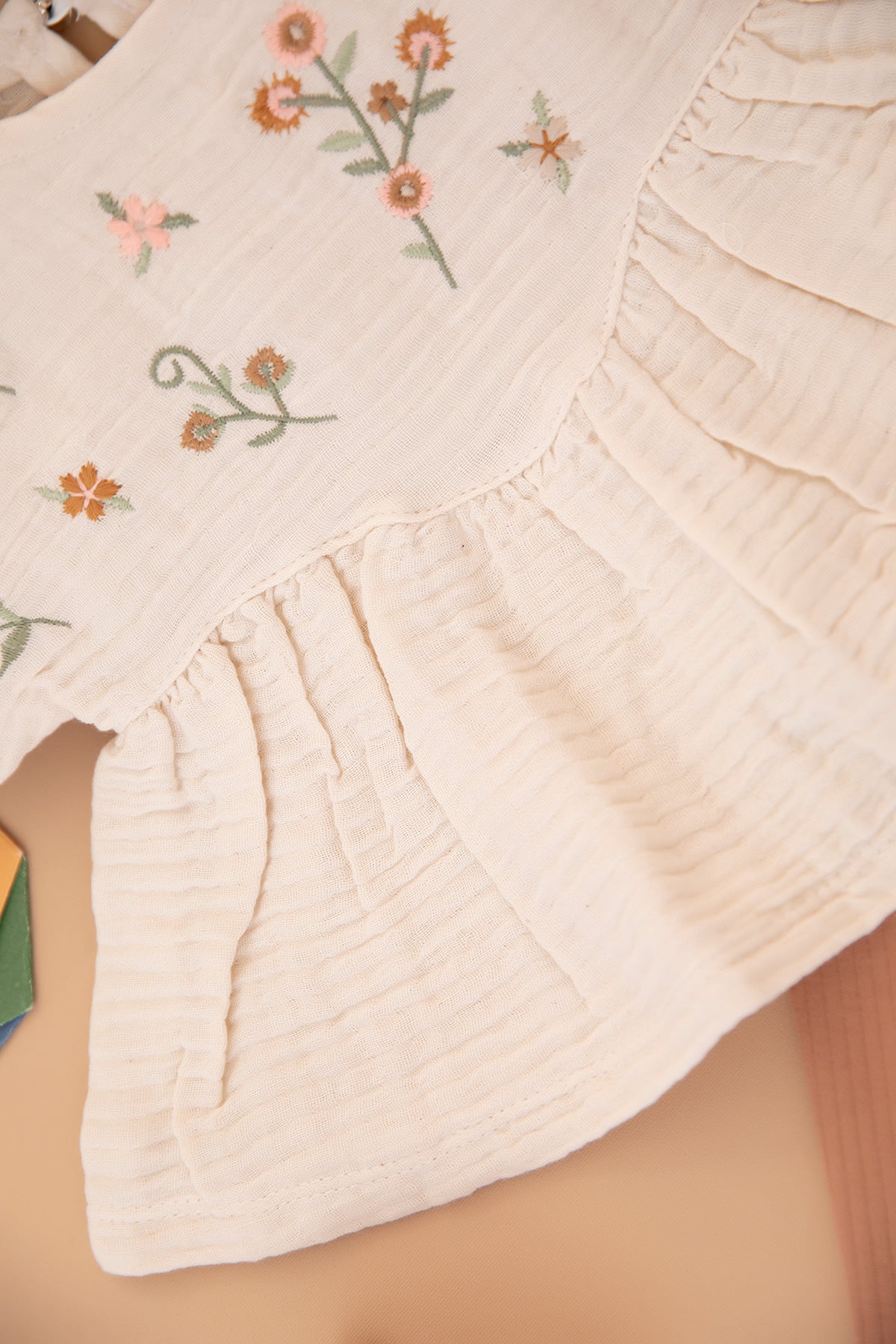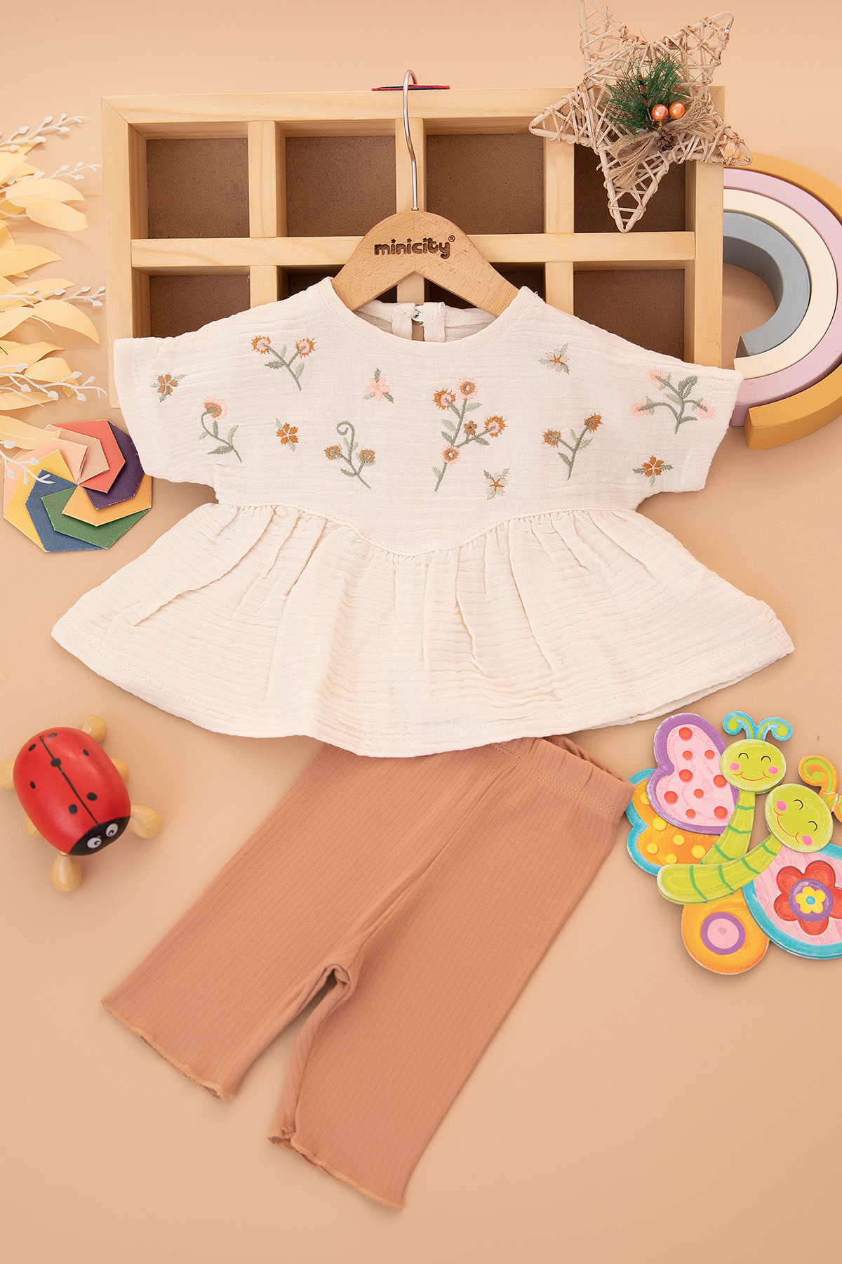 Kız Bebek Çiçek Nakışlı Müslin Şortlu Takım - 2658 (6-24 Ay)