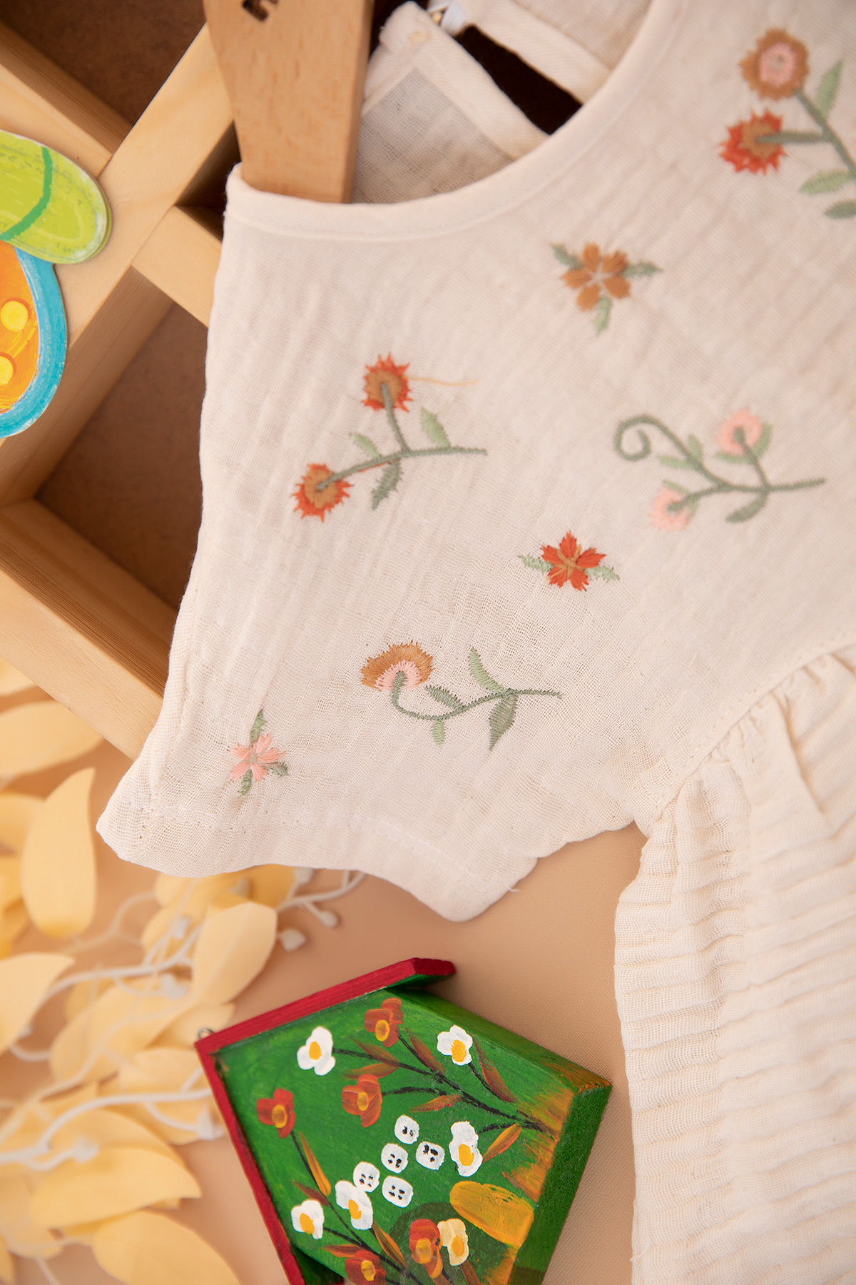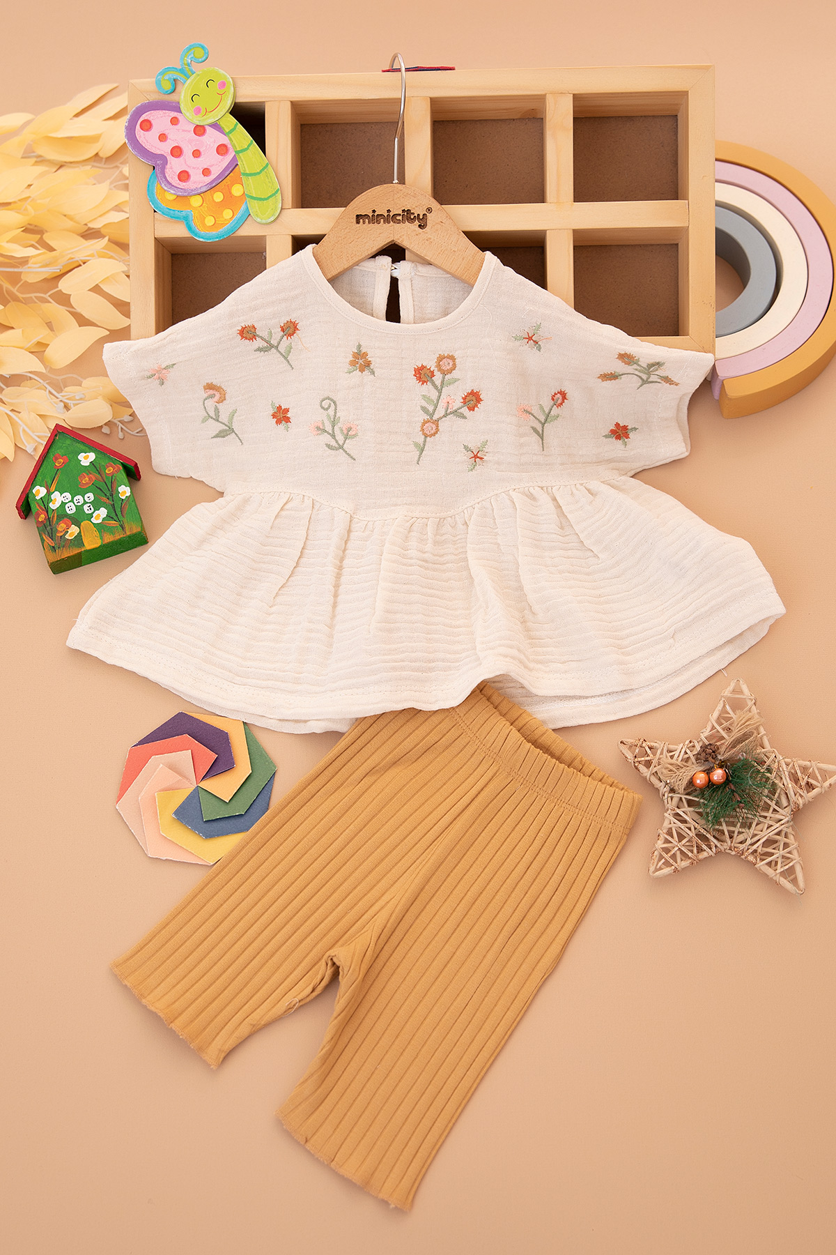 Kız Bebek Çiçek Nakışlı Müslin Şortlu Takım - 2658 (6-24 Ay)