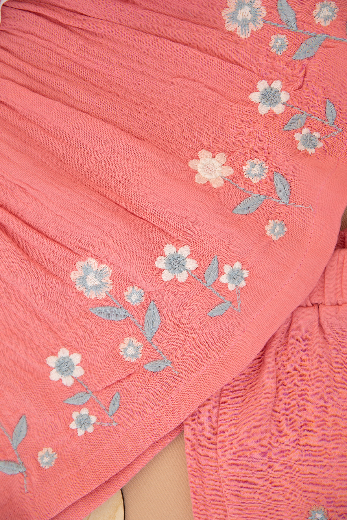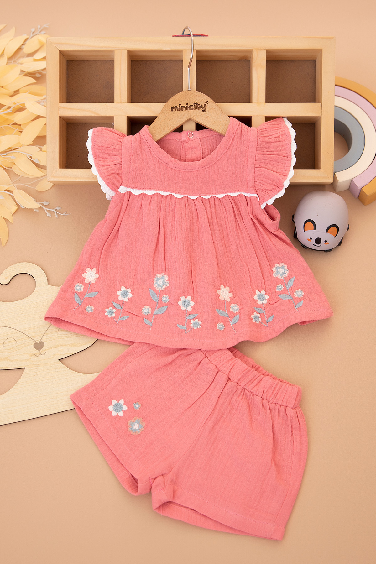 Kız Bebek Çiçek Nakışlı Şortlu Takım - 252077 (6-24 Ay)