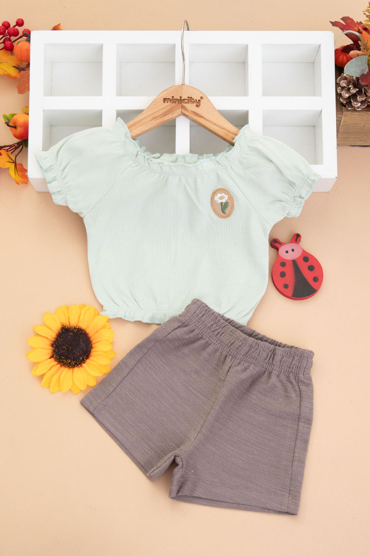 Kız Bebek Çiçek Nakışlı Takım - 26515 (9-24 Ay)