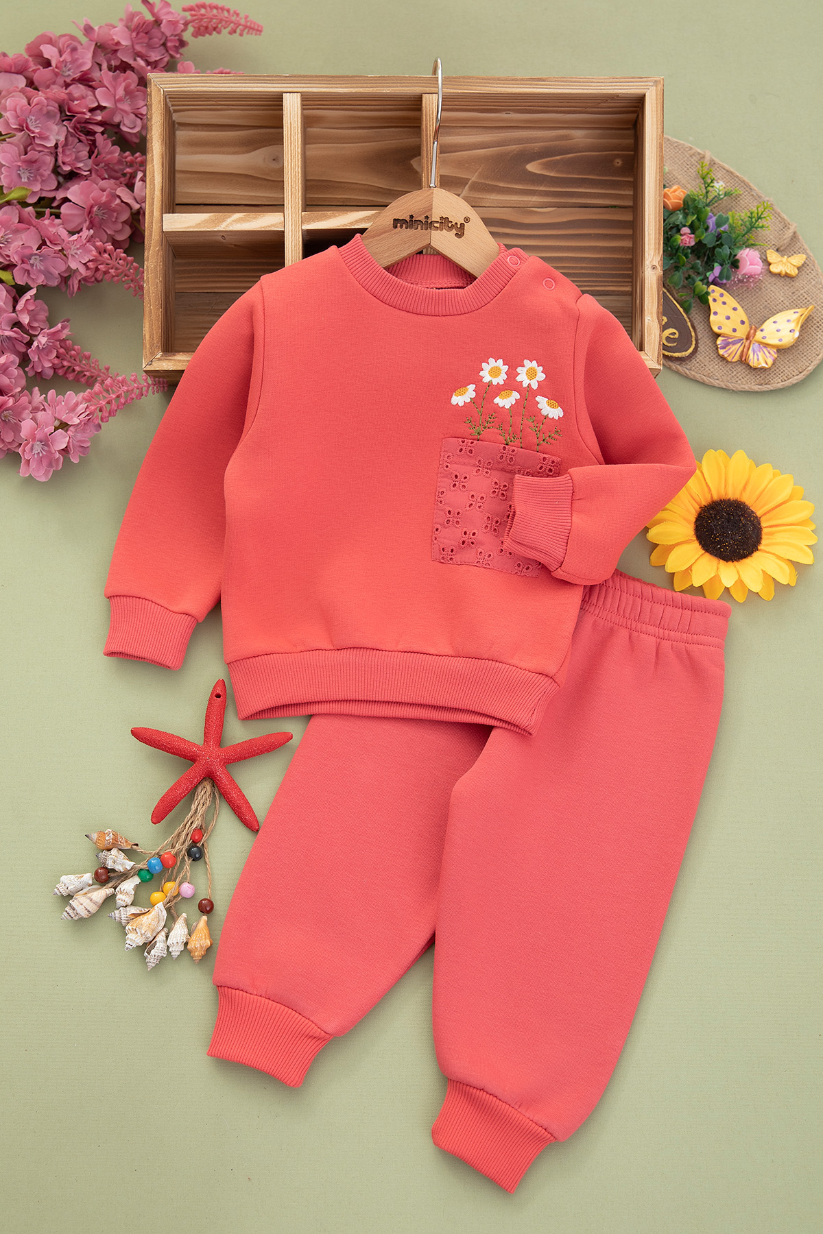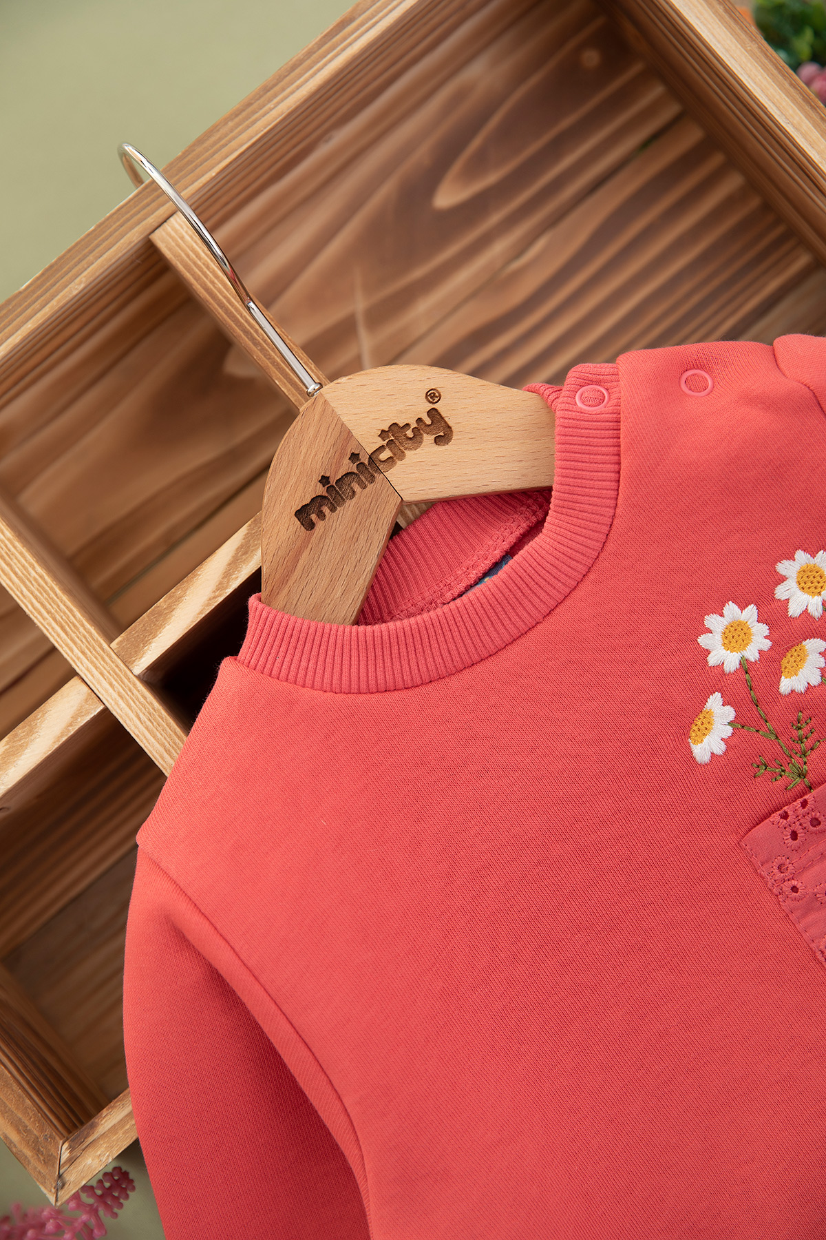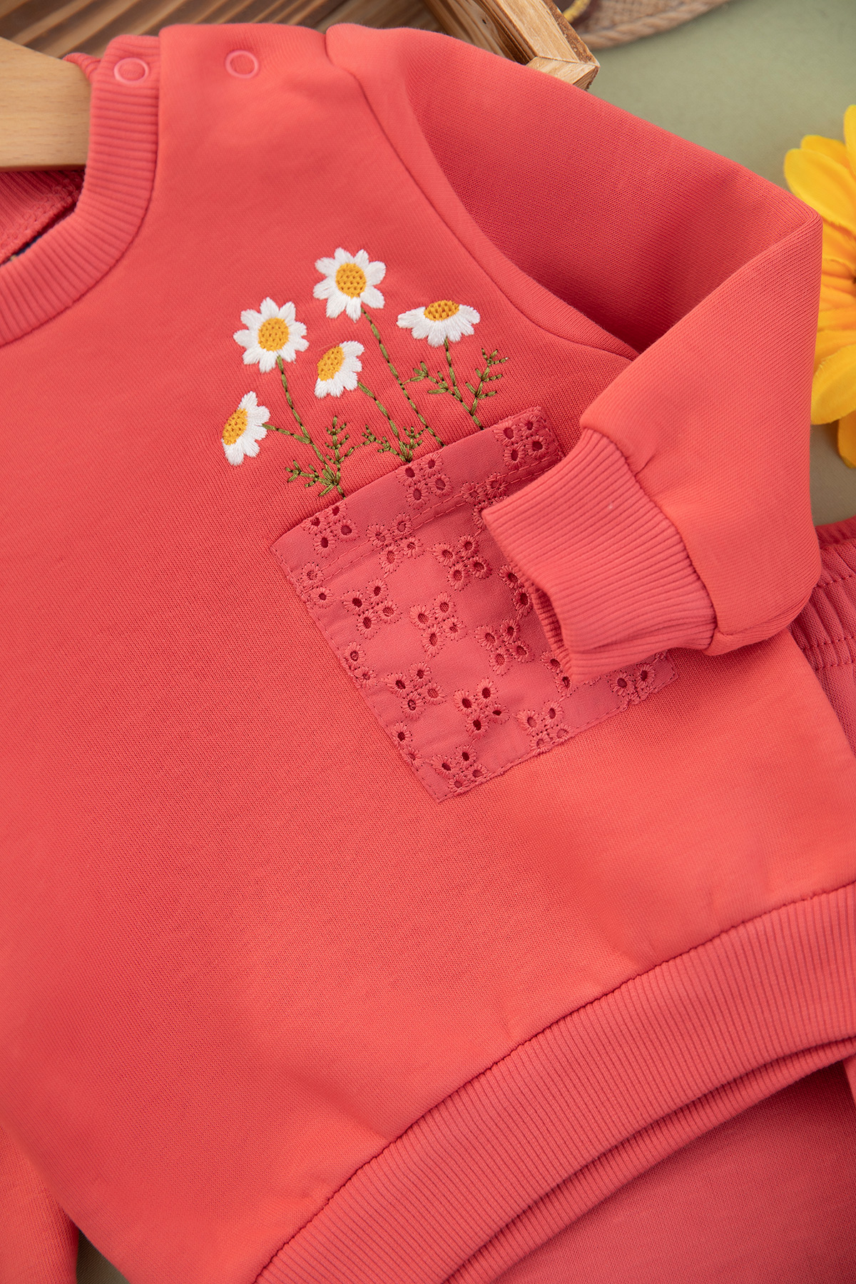 Kız Bebek Çiçek Nakışlı Üç İp Takım - 24801 (9-24 Ay)