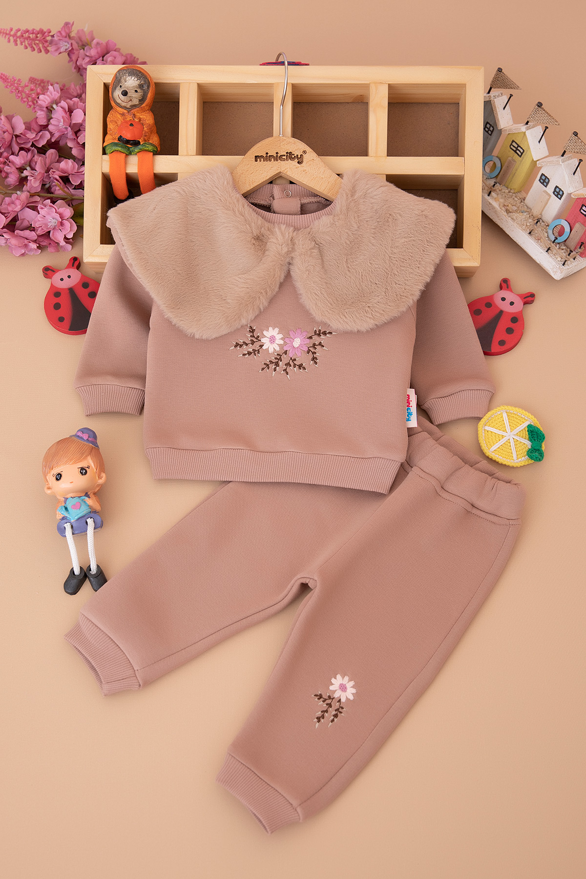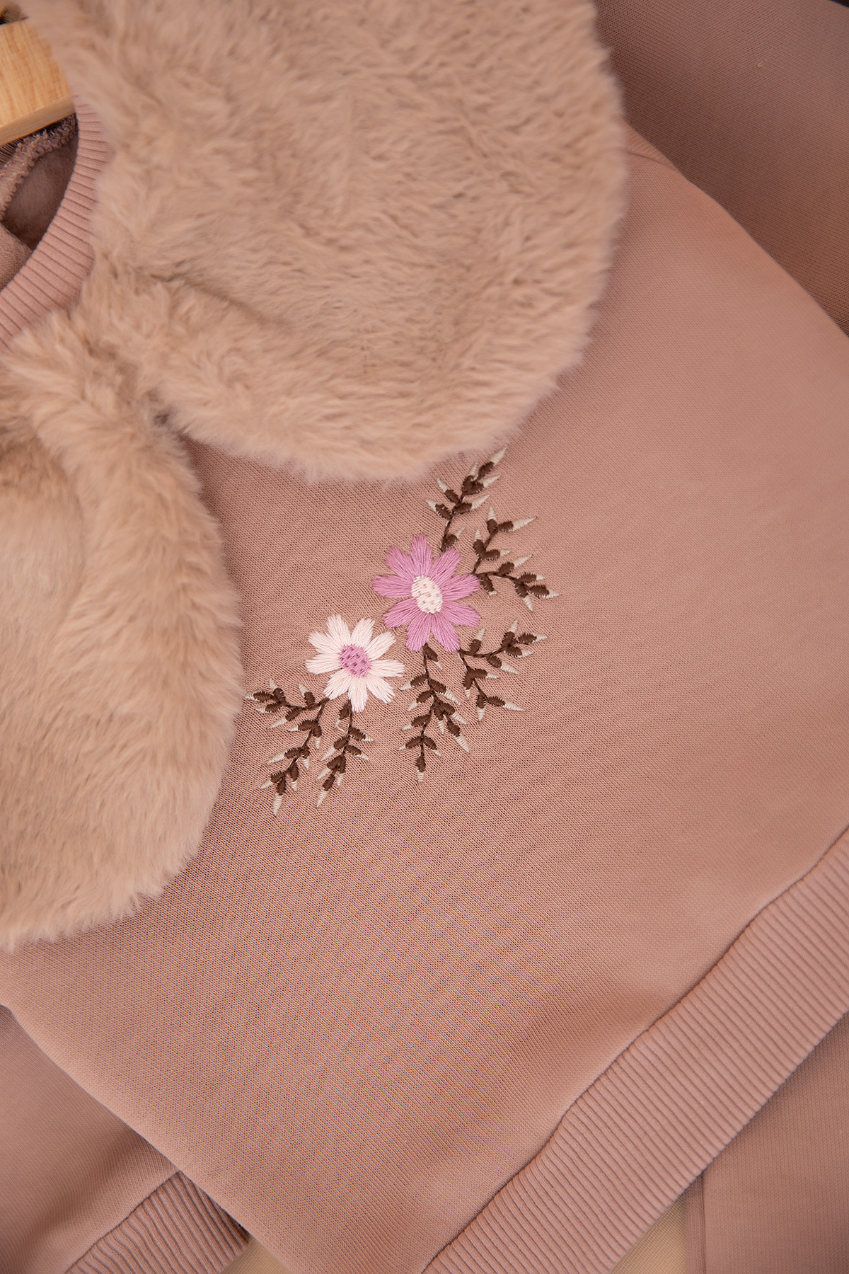 Kız Bebek Çiçek Nakışlı Üçip Takım - 254085 (6-24 Ay)