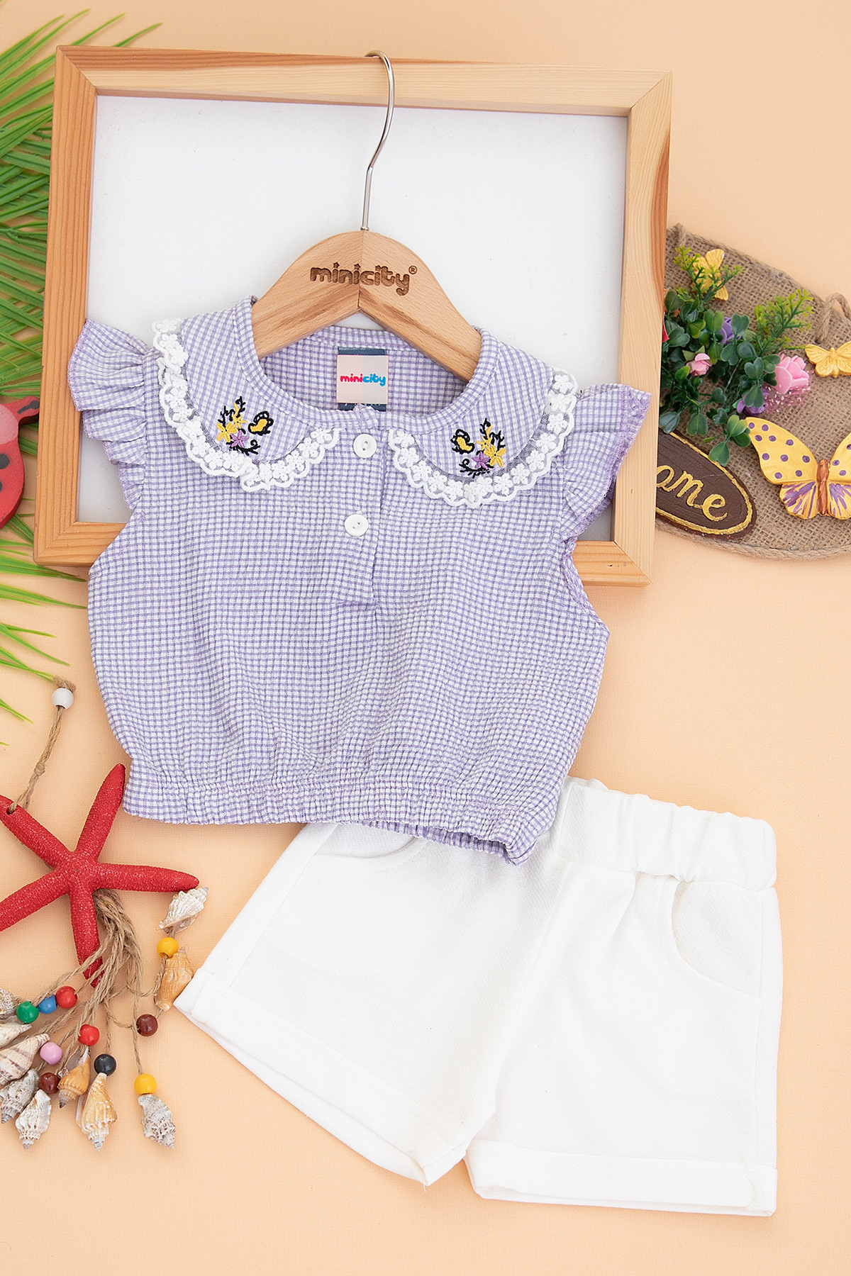Kız Bebek Çiçek Nakışlı Yakalı Takım - 24344 (9-24 Ay)