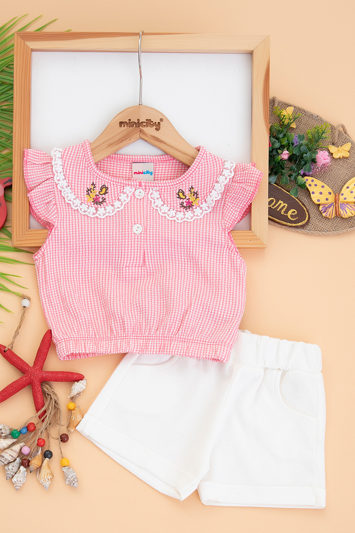 Kız Bebek Çiçek Nakışlı Yakalı Takım - 24344 (9-24 Ay)