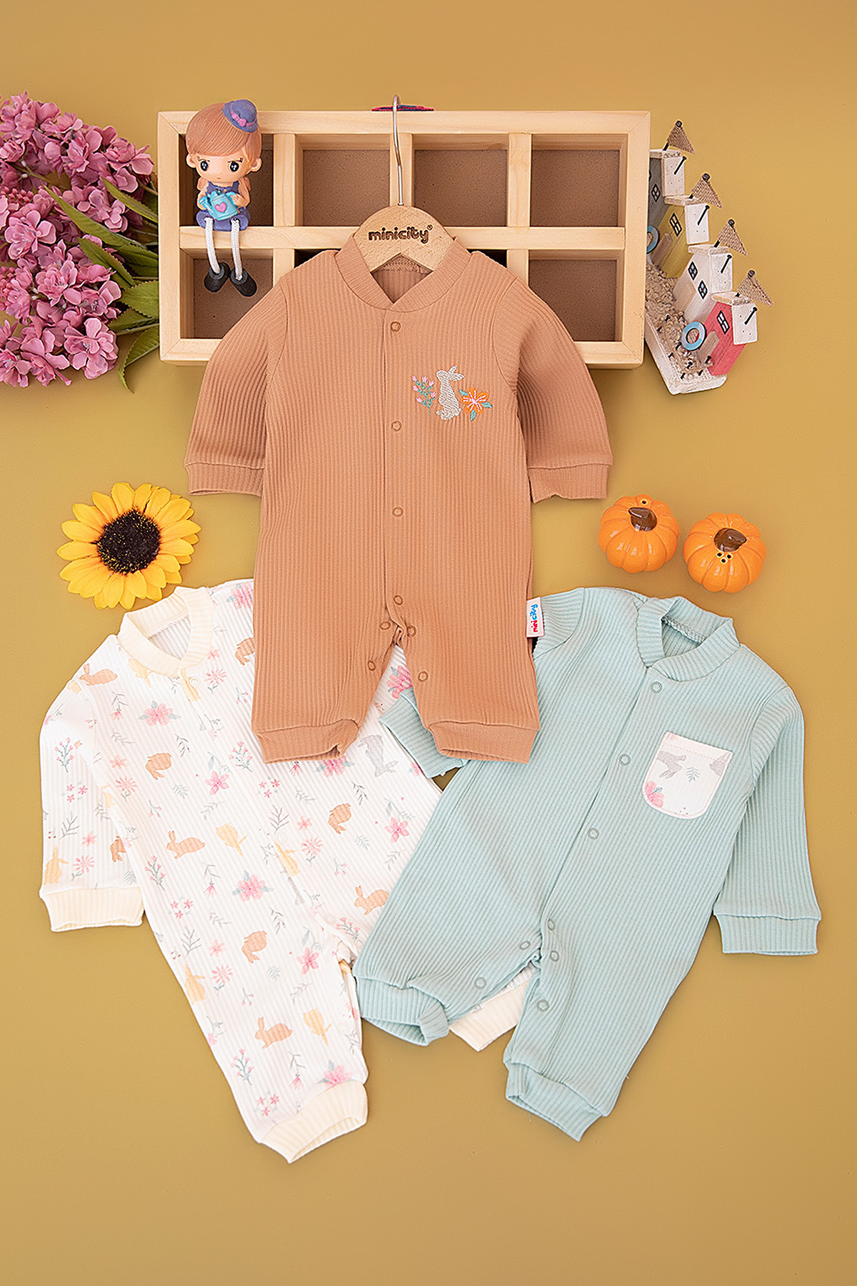 Kız Bebek Çiçek Tavşan Üçlü Tulum - 241196 (0-9 Ay)