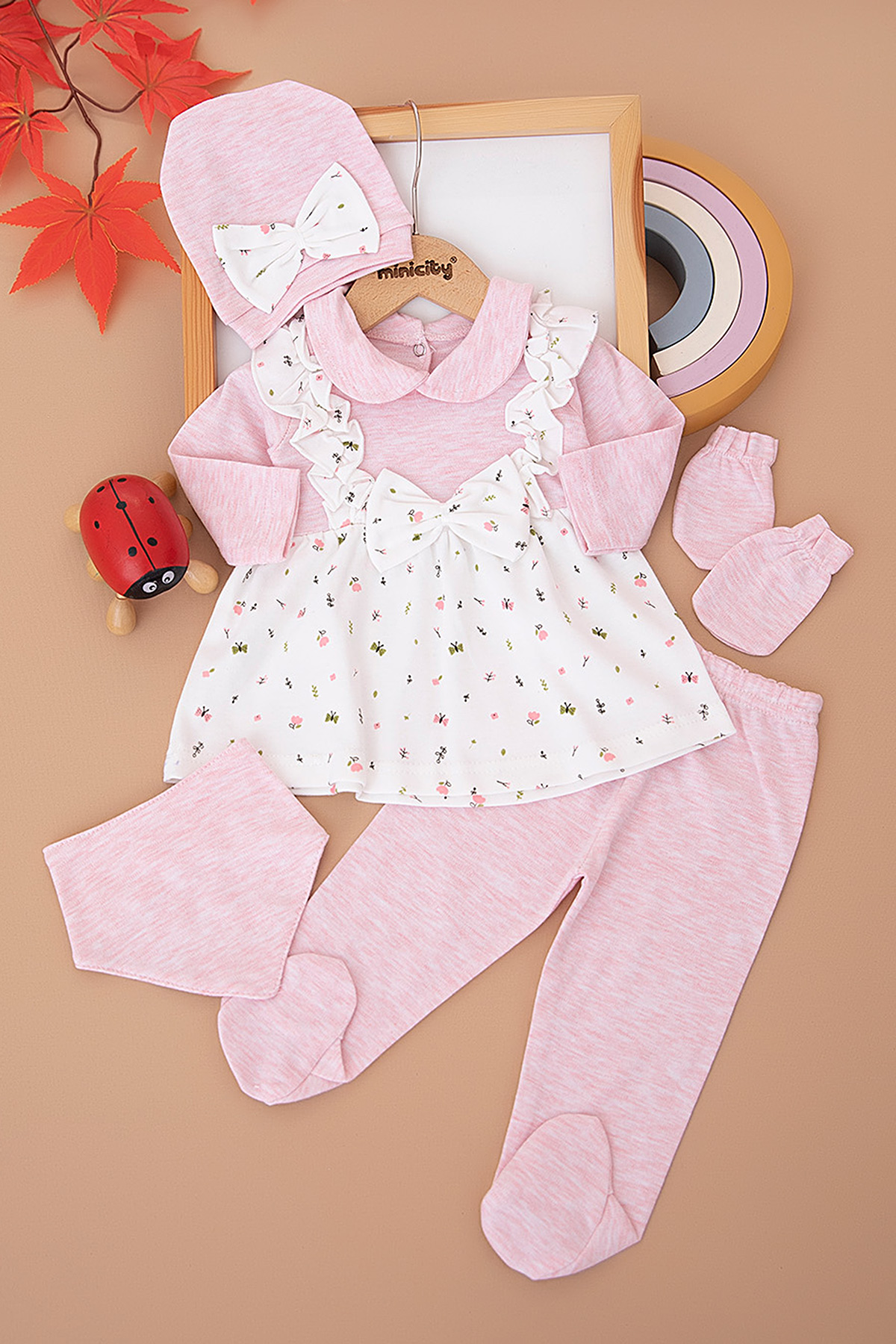 Kız Bebek Çiçekli 5`Li Zıbın Takımı - 3400 (6-9 Ay)