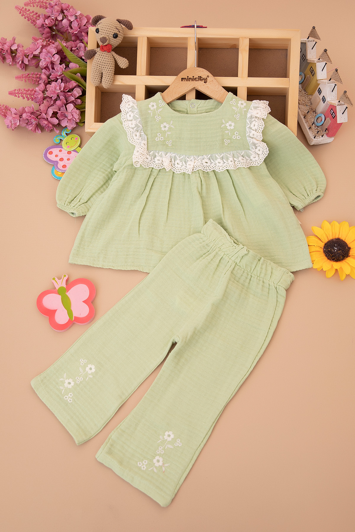 Kız Bebek Çiçekli Fistolu Brodeli Takım - 3004 (6-24 Ay)