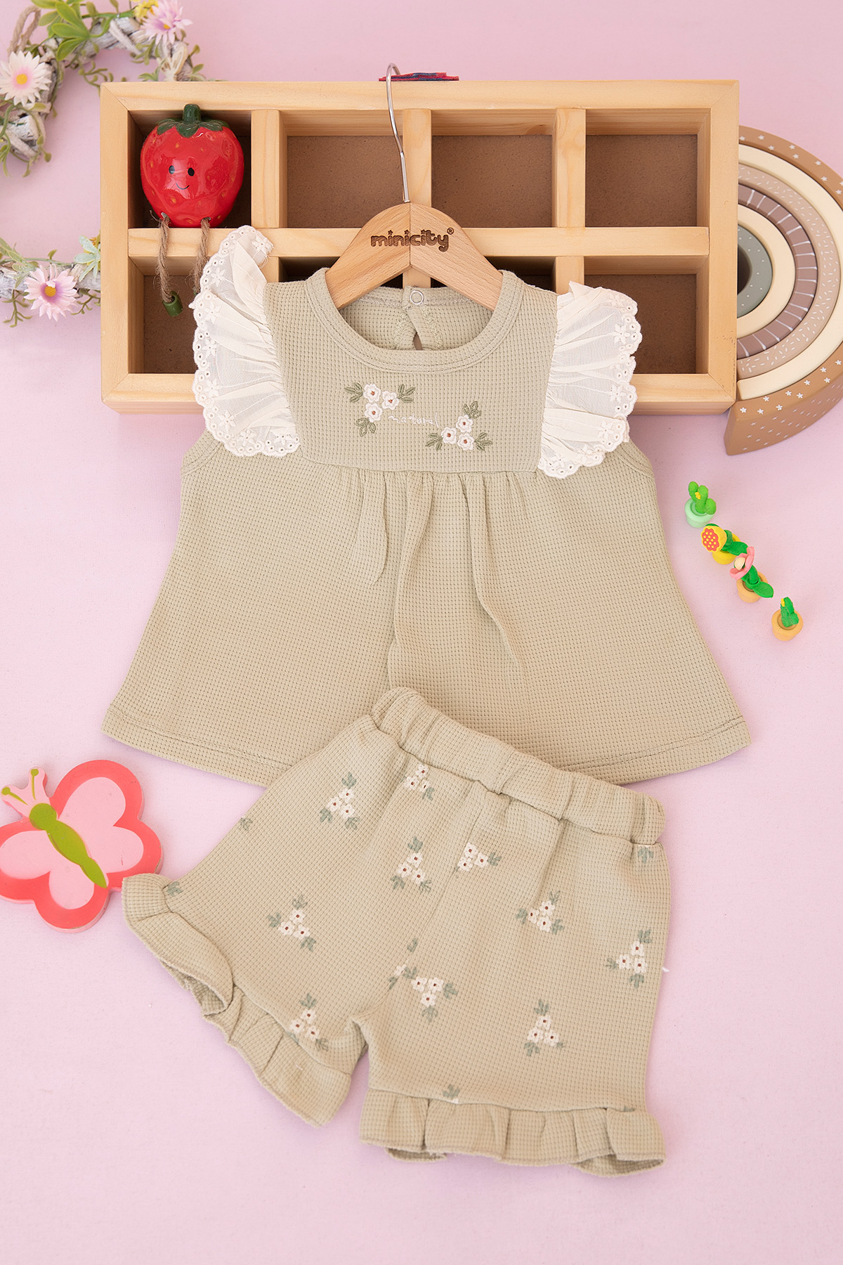 Kız Bebek Çiçekli Fistolu Şortlu Takım - 3115 (6-24 Ay)