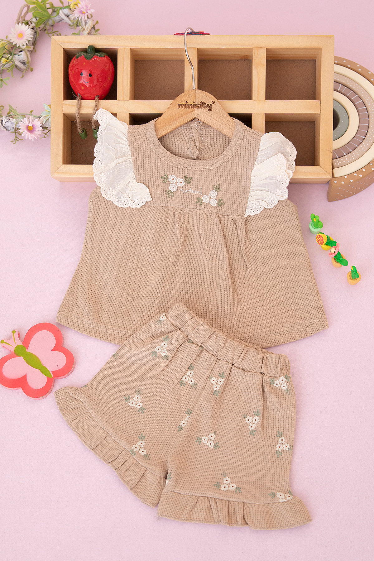 Kız Bebek Çiçekli Fistolu Şortlu Takım - 3115 (6-24 Ay)
