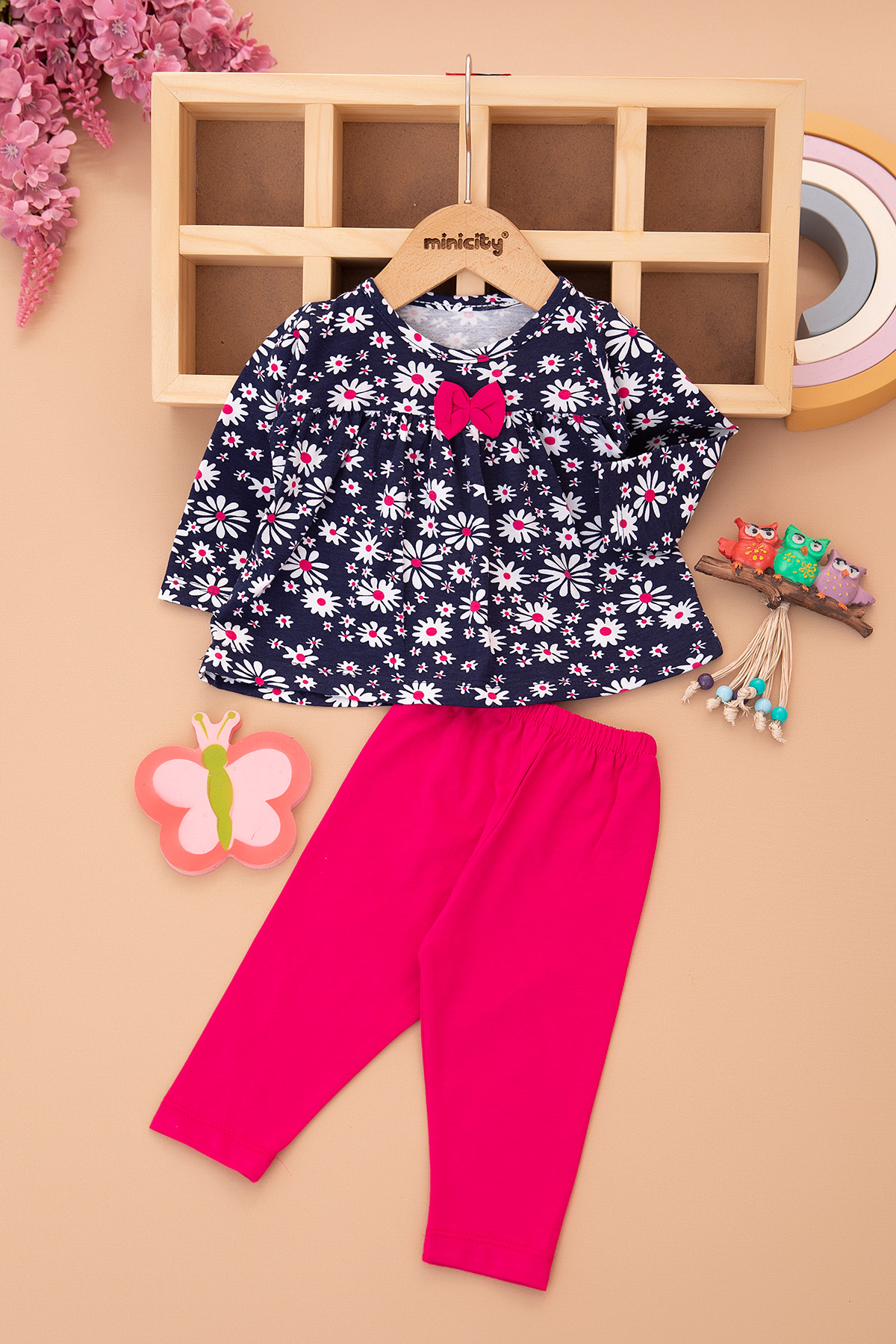 Kız Bebek Çiçekli Fiyonklu Taytlı Takım (9-24 Ay)