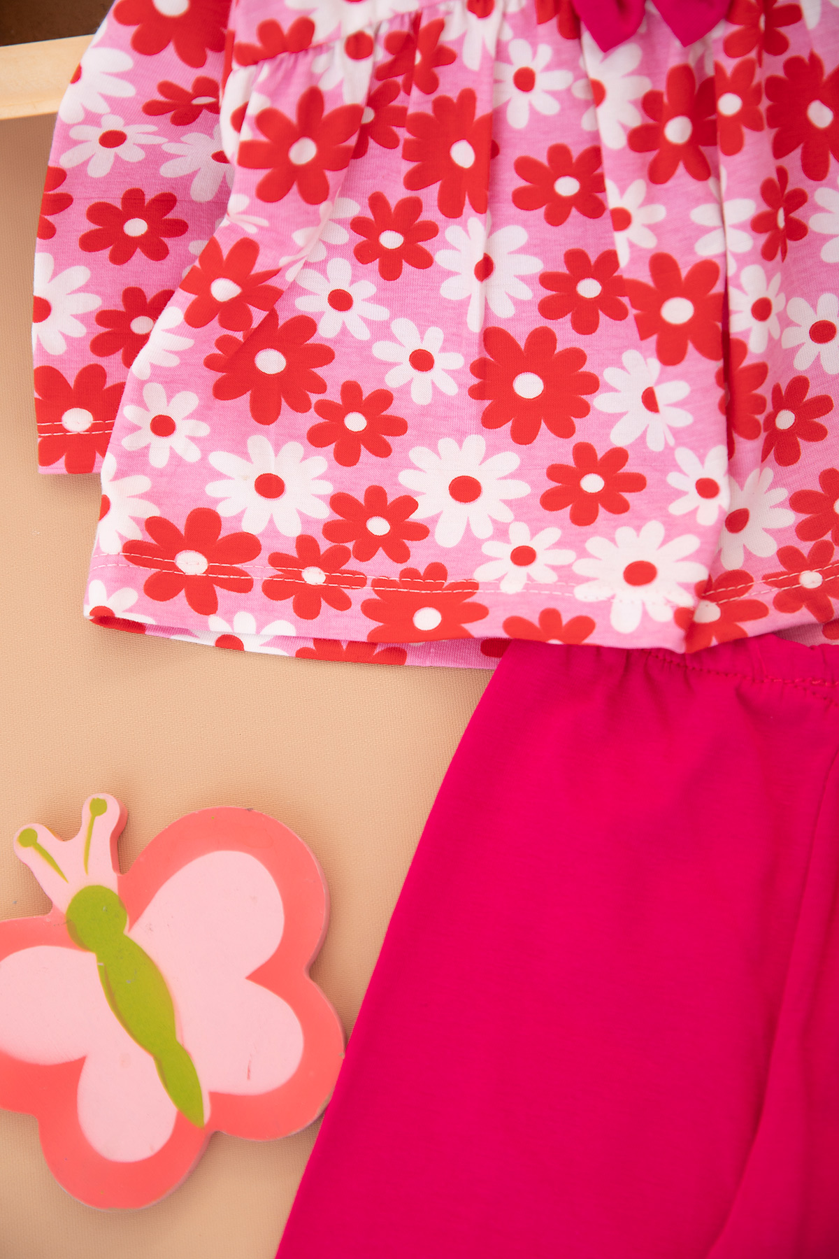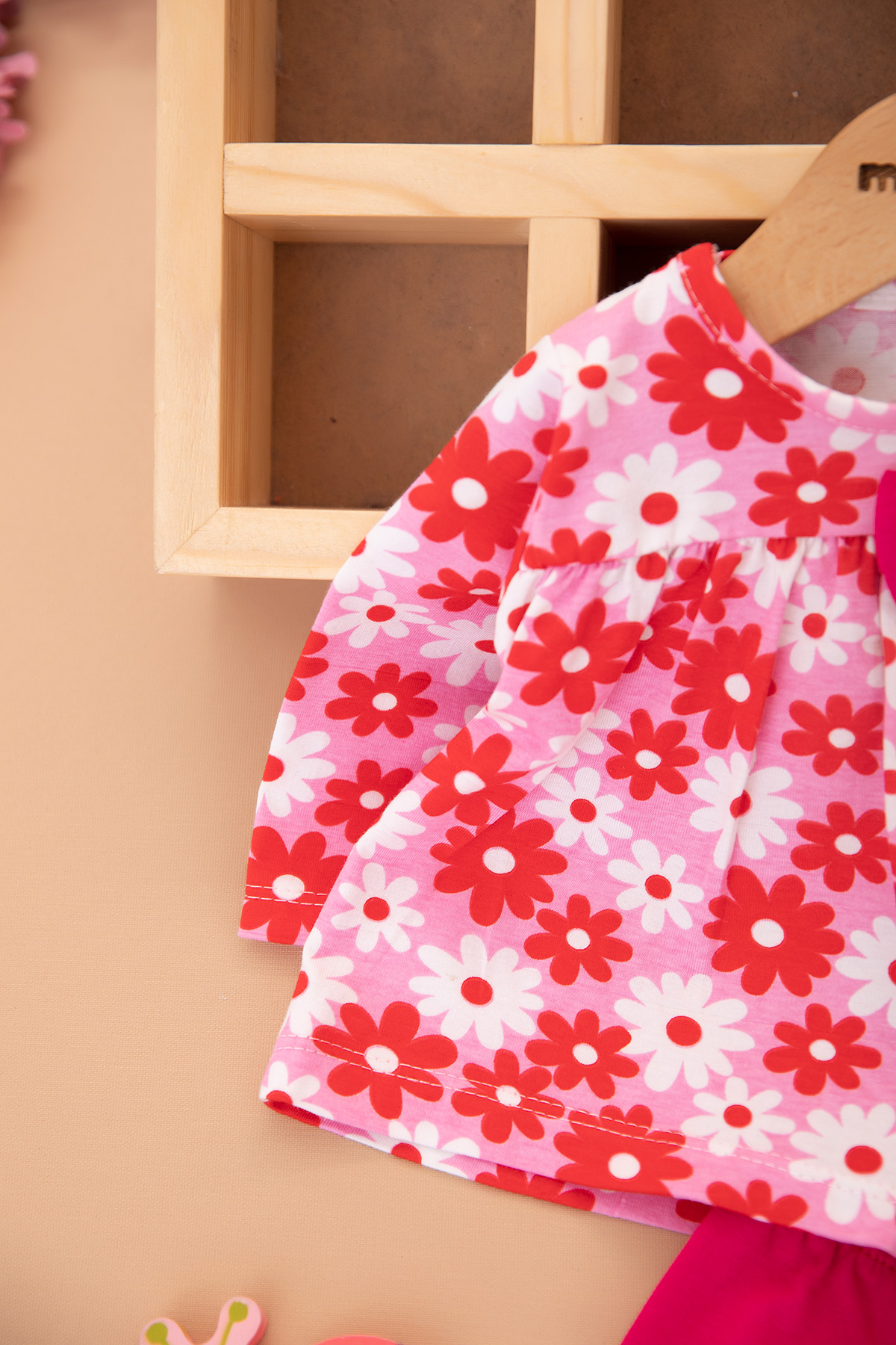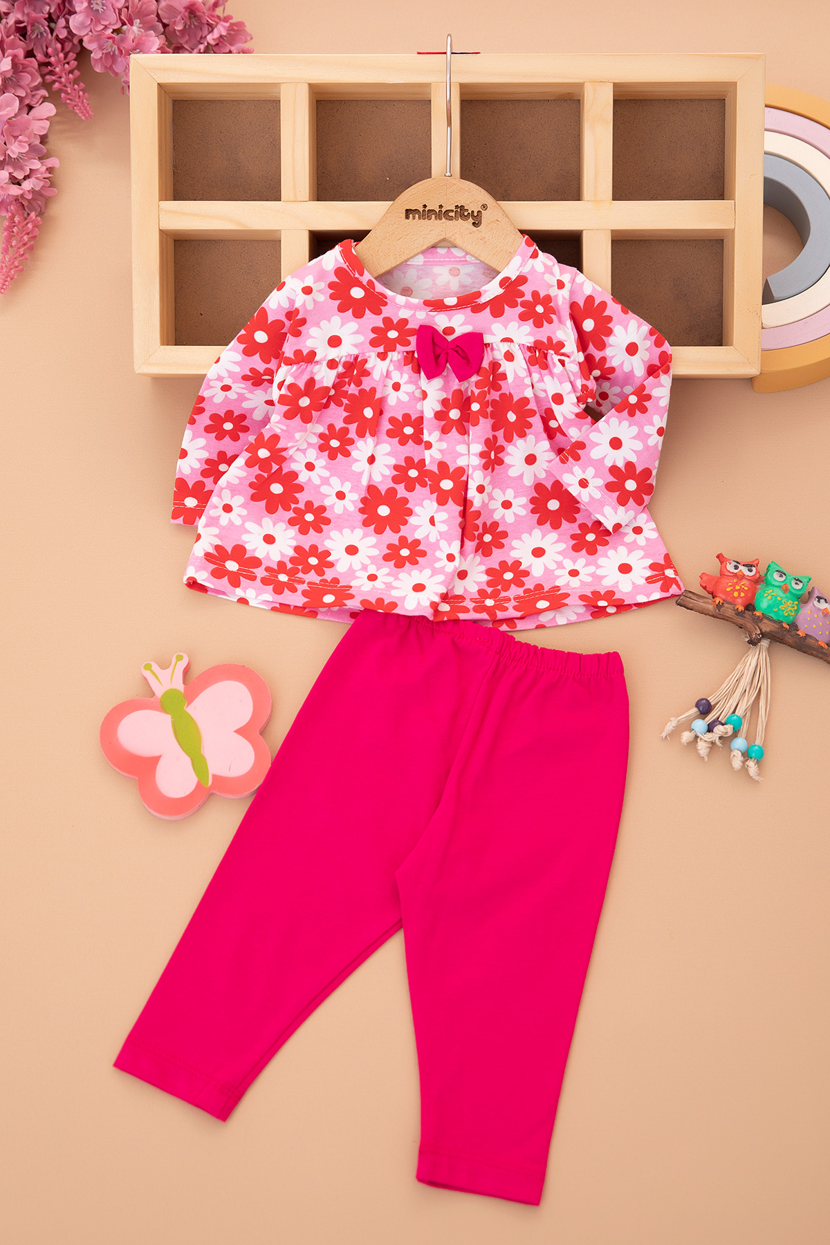 Kız Bebek Çiçekli Fiyonklu Taytlı Takım (9-24 Ay)