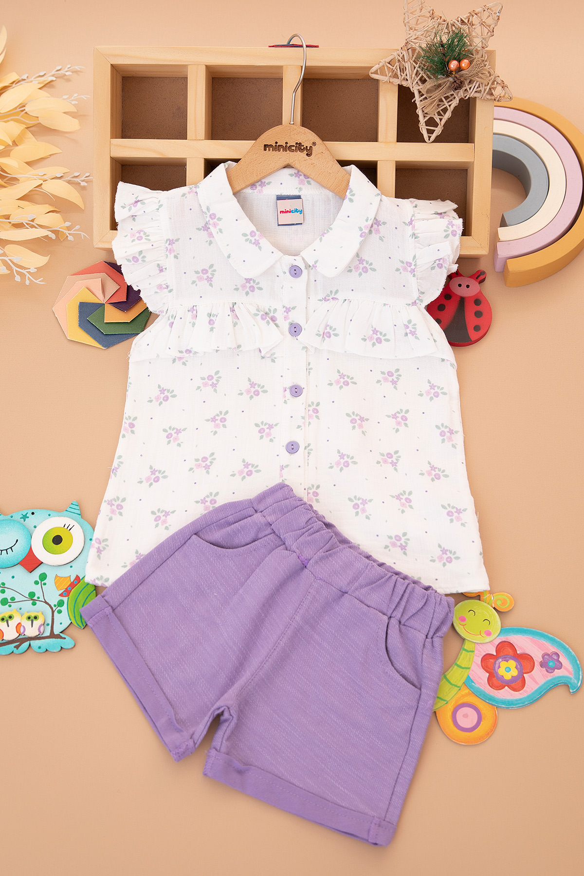 Kız Bebek Çiçekli Gömlek Şortlu Takım - 25157 (9-24 Ay)