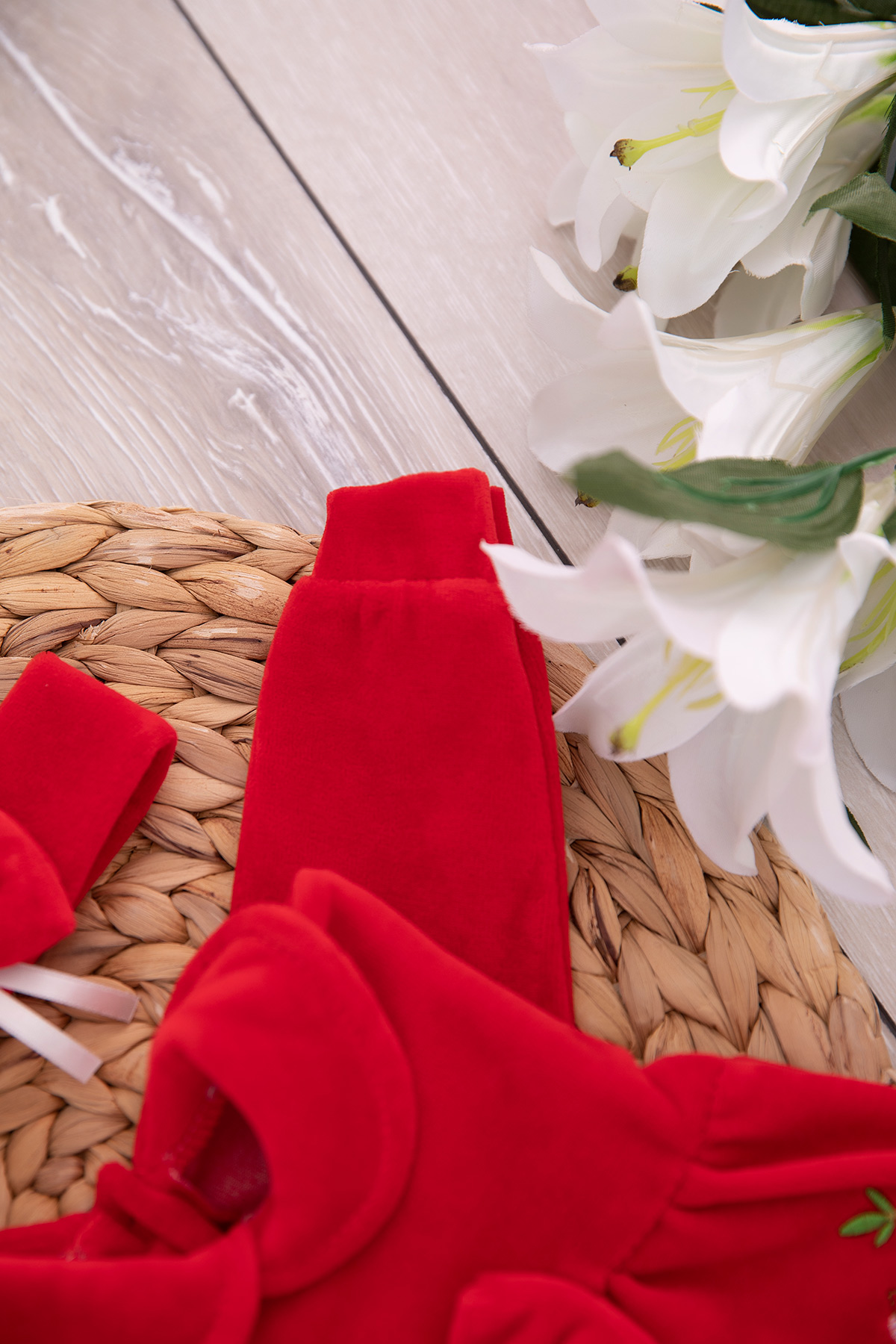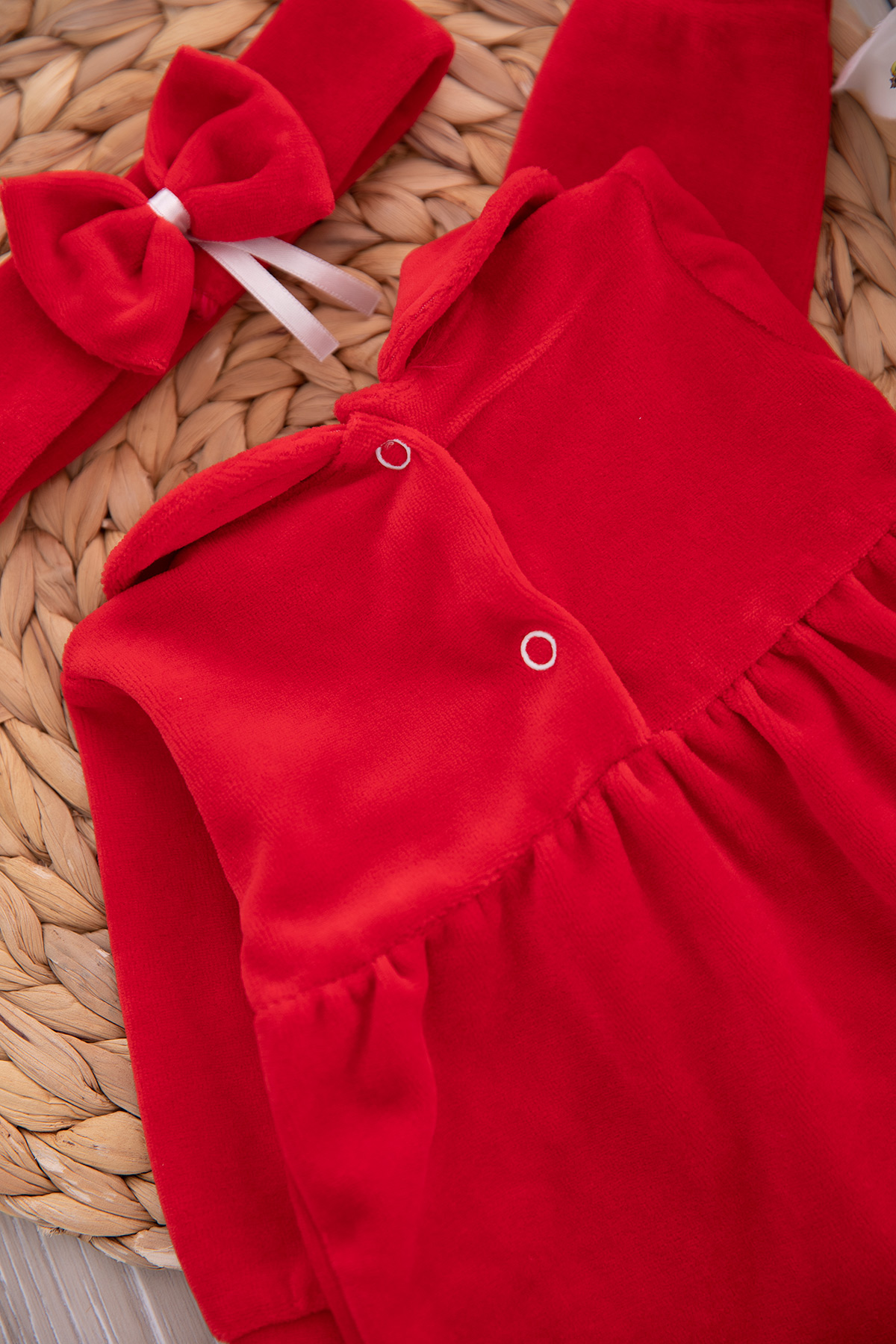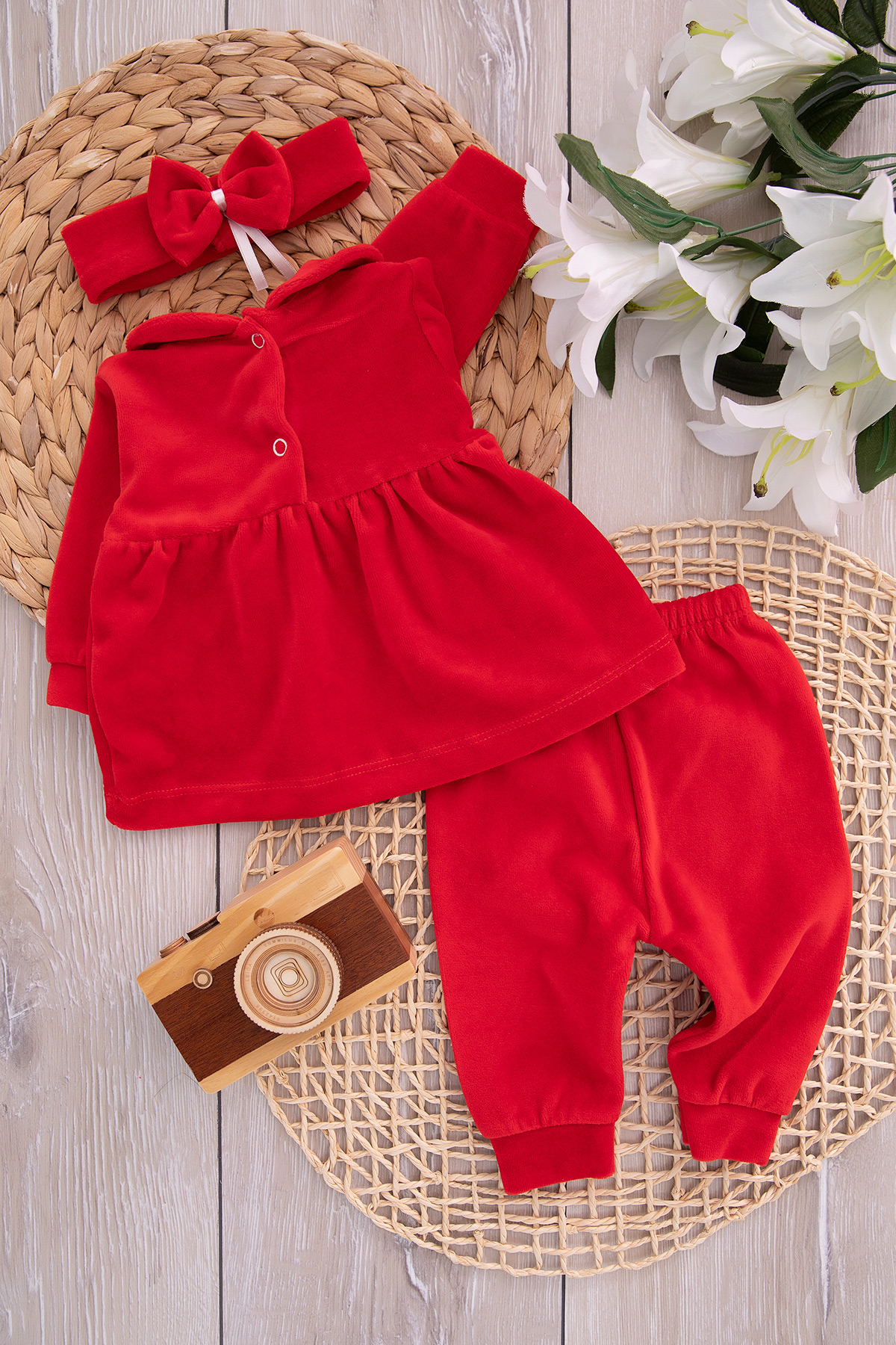 Kız Bebek Çiçekli Kadife Takım - 877