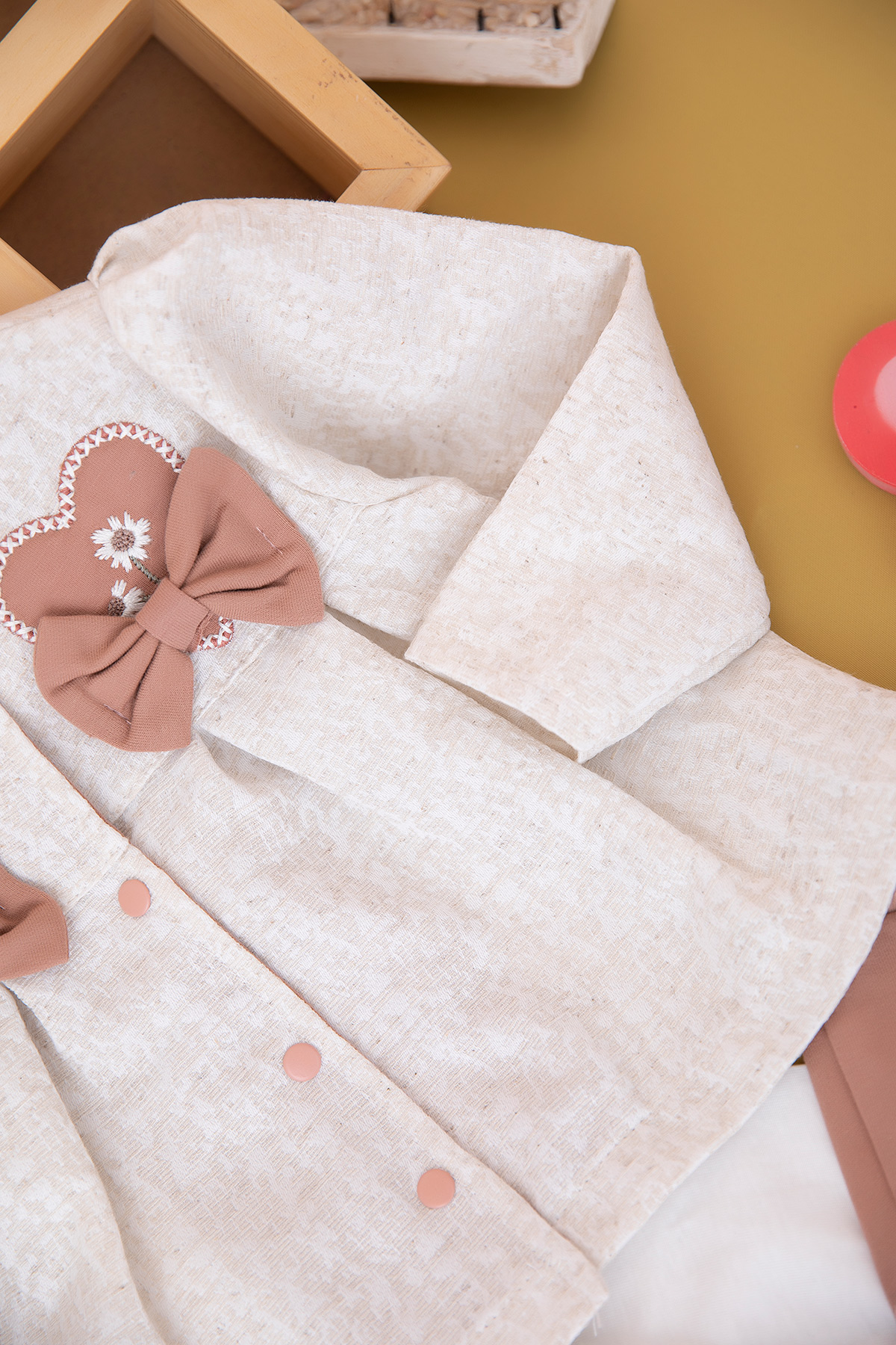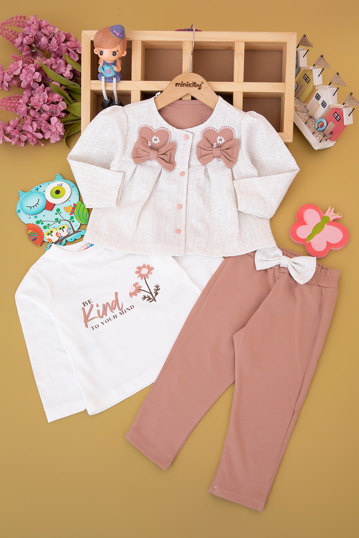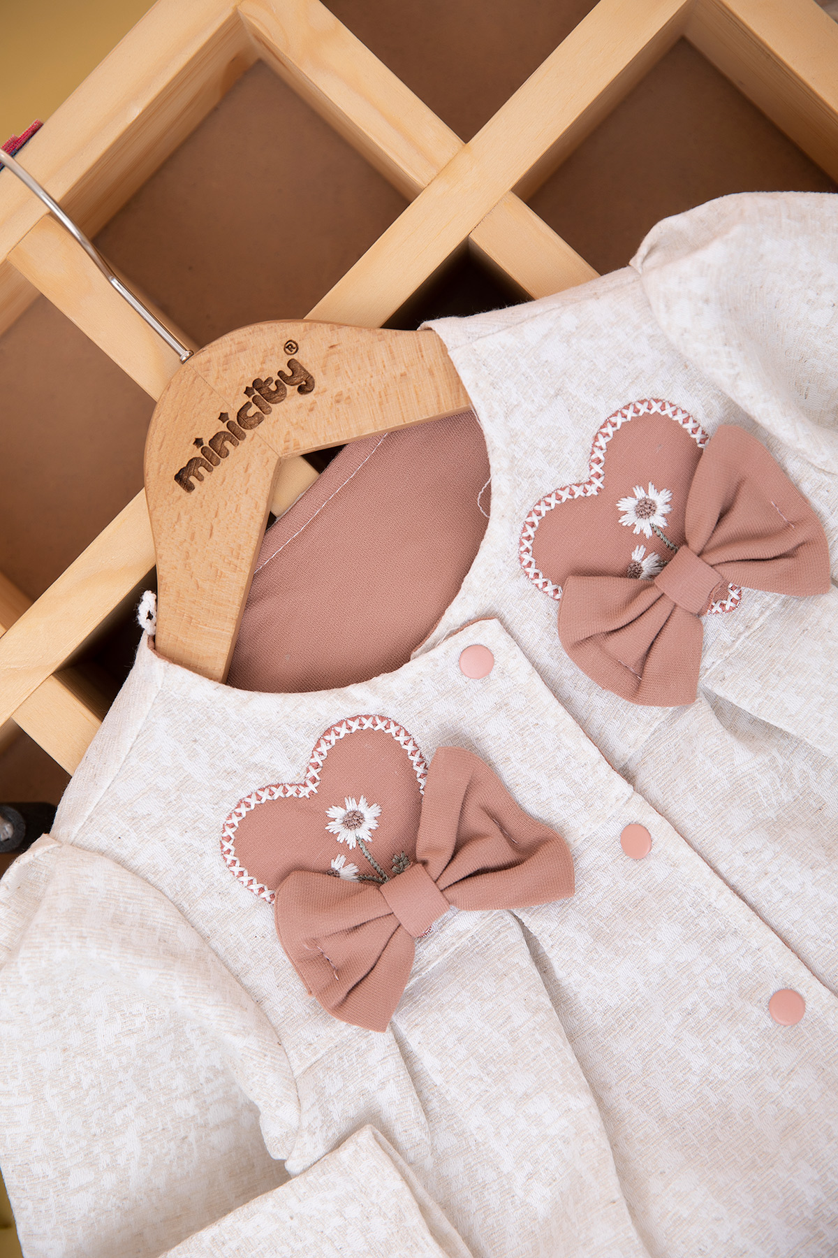 Kız Bebek Çiçekli Kalp Nakışlı Hırkalı Takım - 90031 (6-24 Ay)