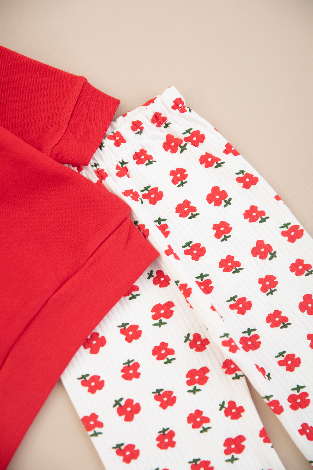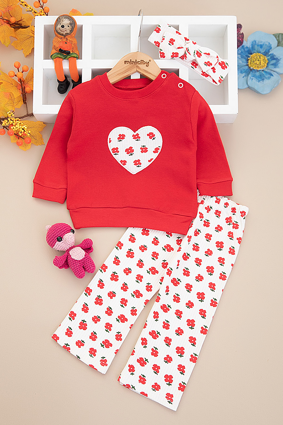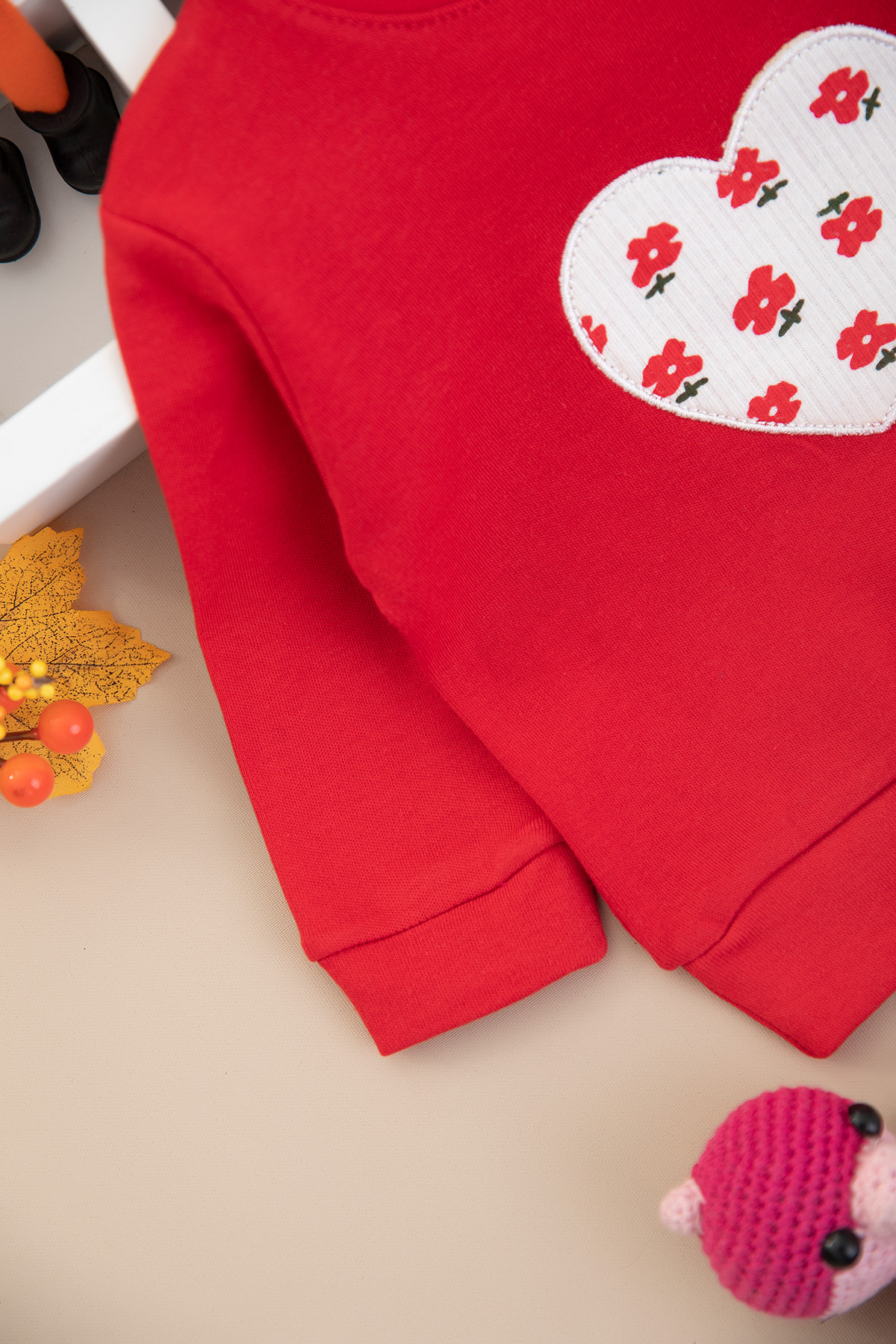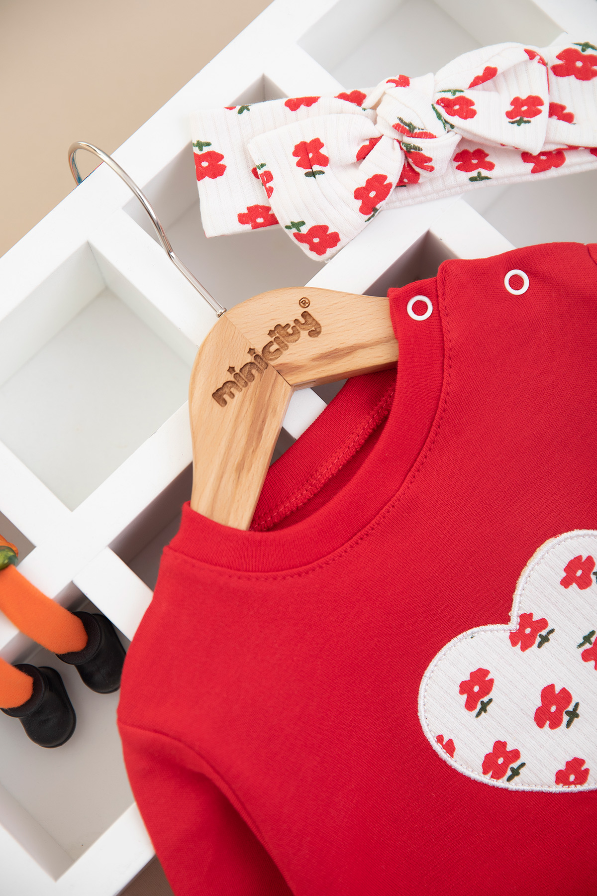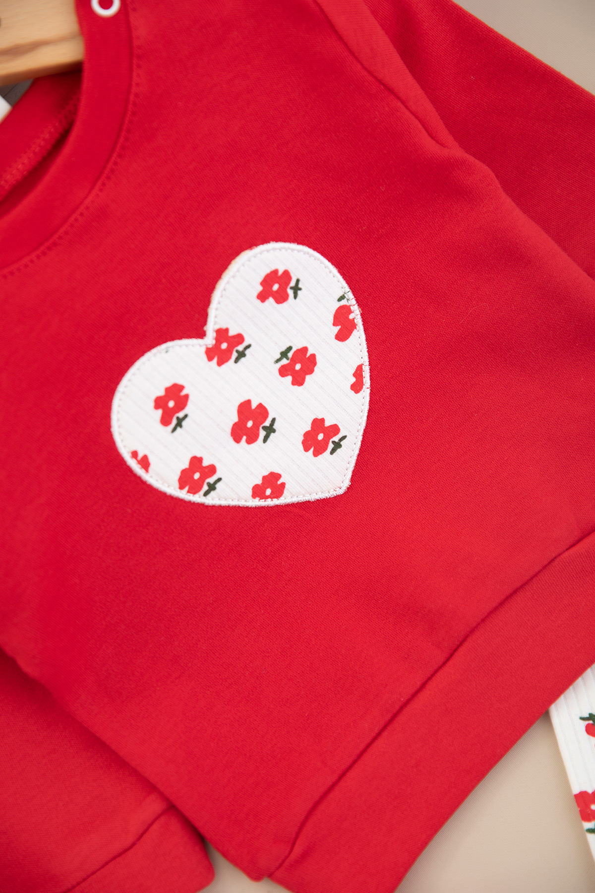 Kız Bebek Çiçekli Kalp Nakışlı Takım (9-24 Ay)