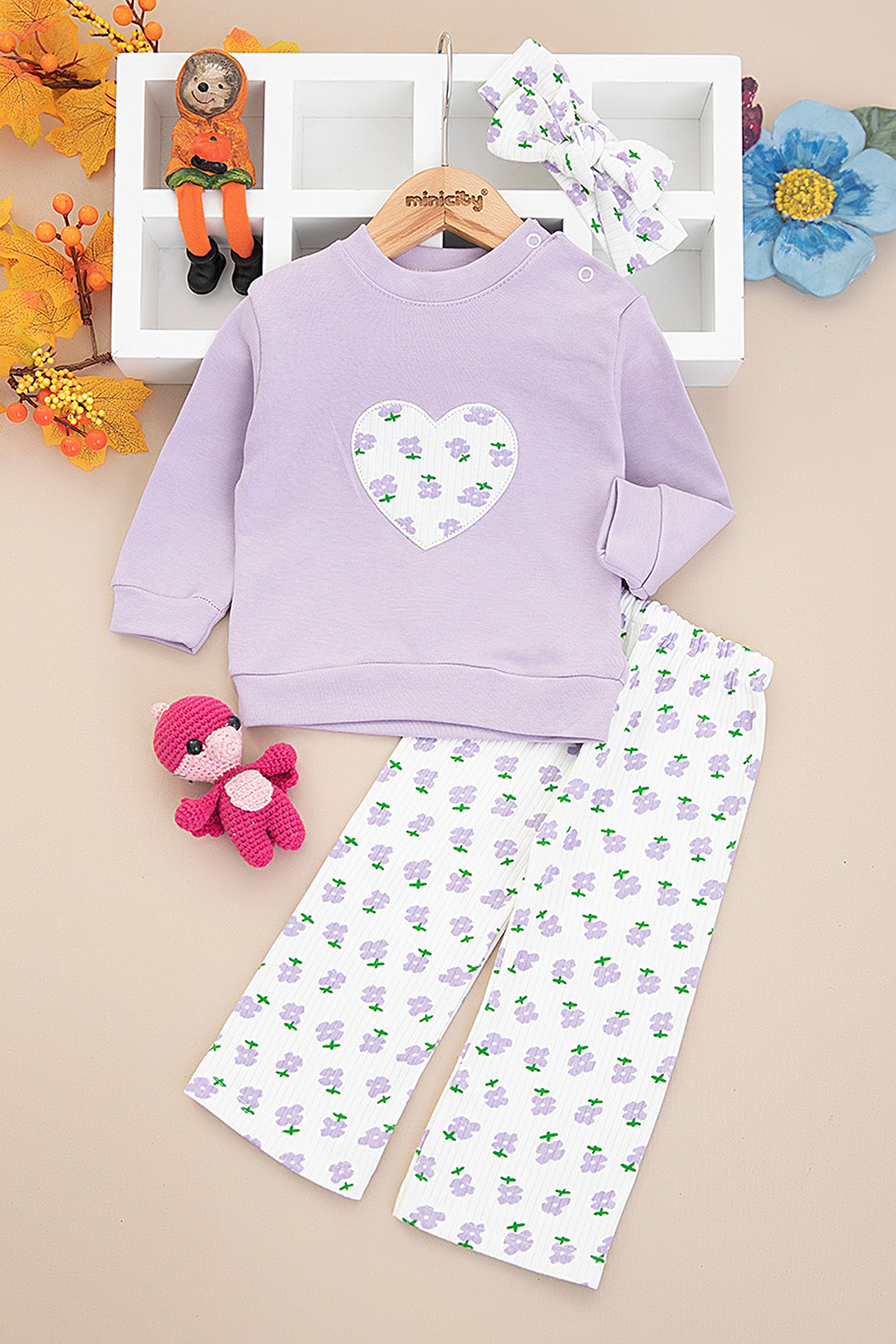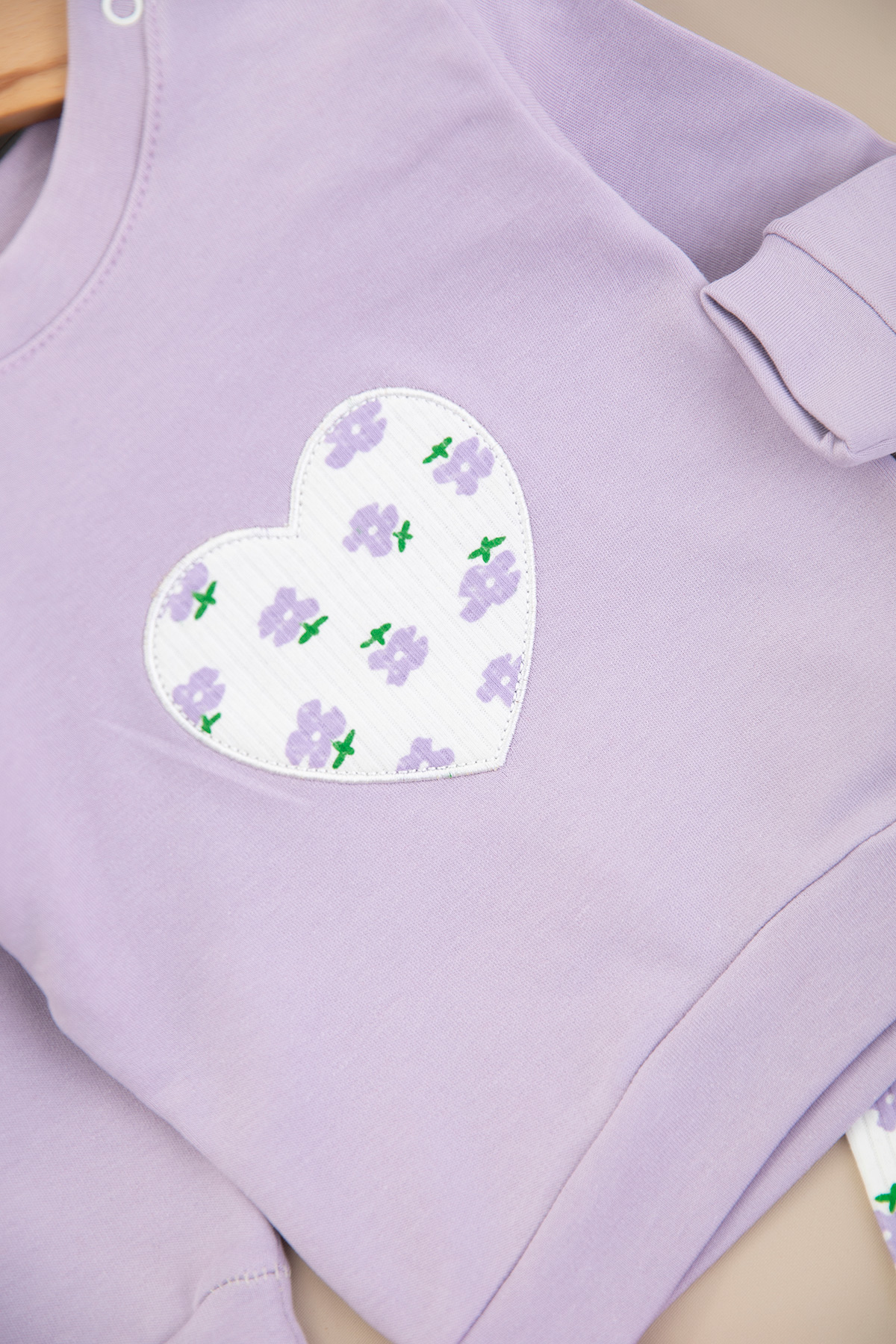 Kız Bebek Çiçekli Kalp Nakışlı Takım (9-24 Ay)