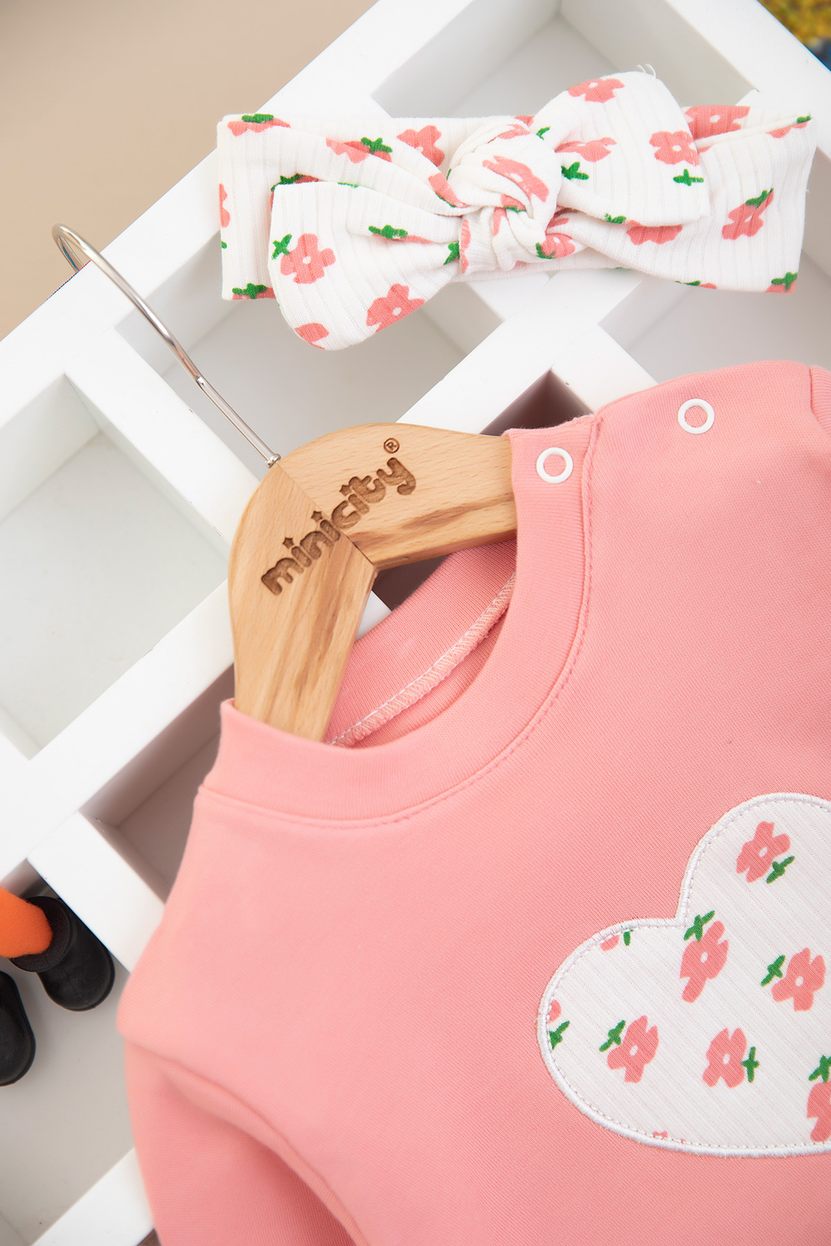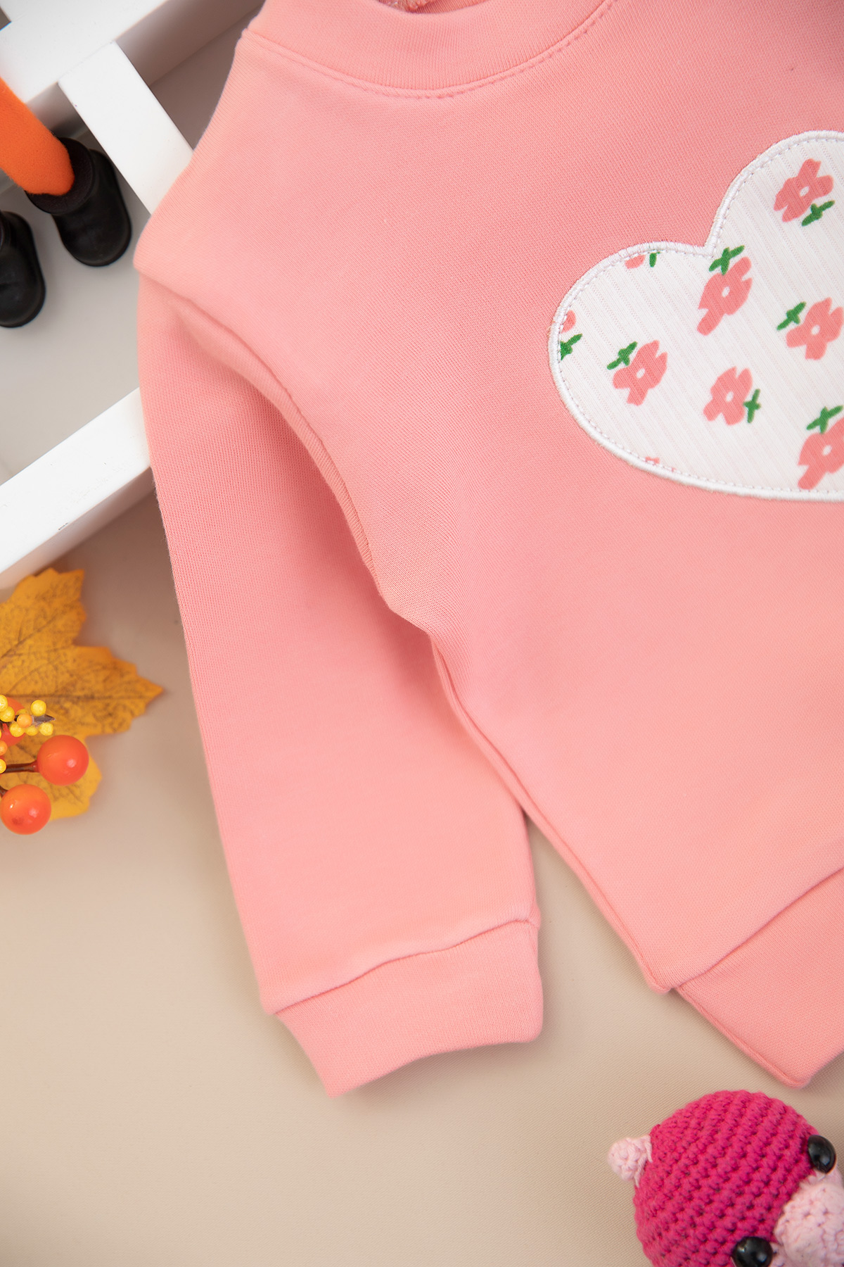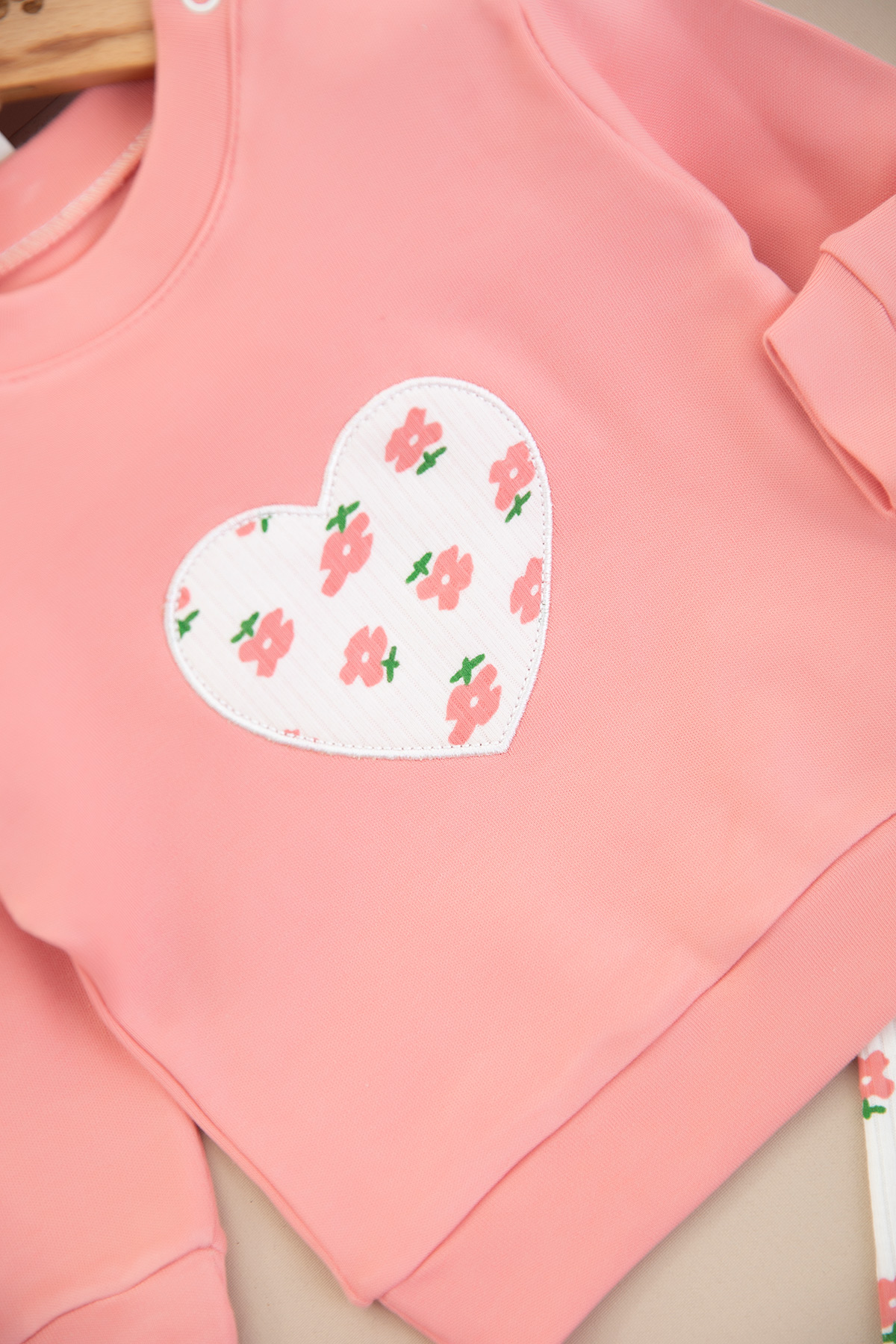 Kız Bebek Çiçekli Kalp Nakışlı Takım (9-24 Ay)