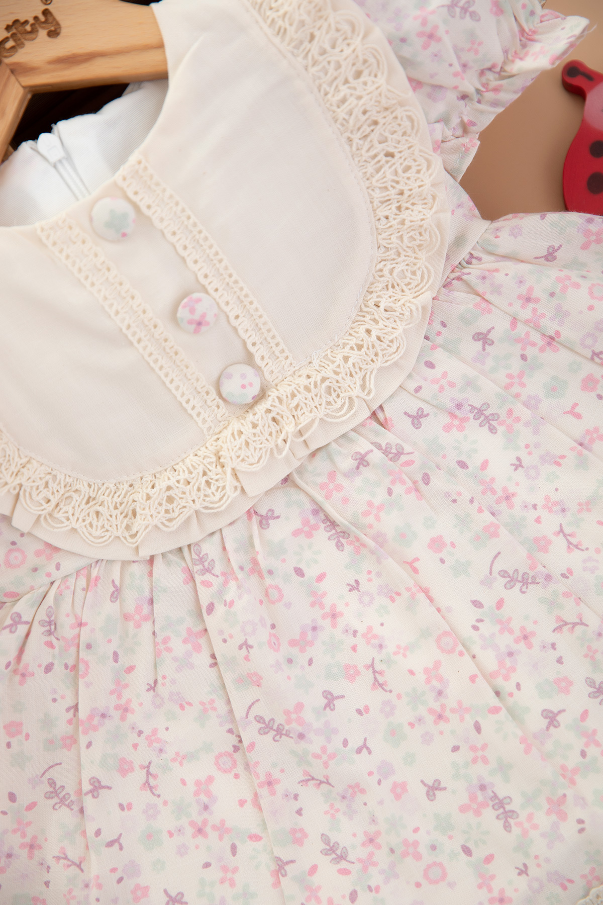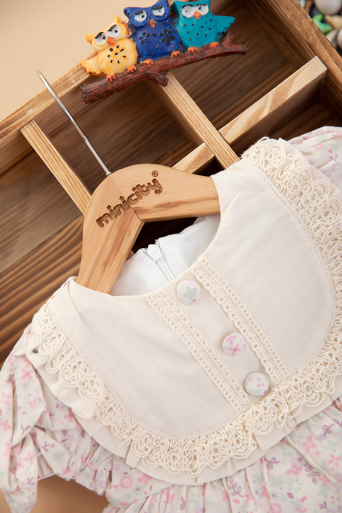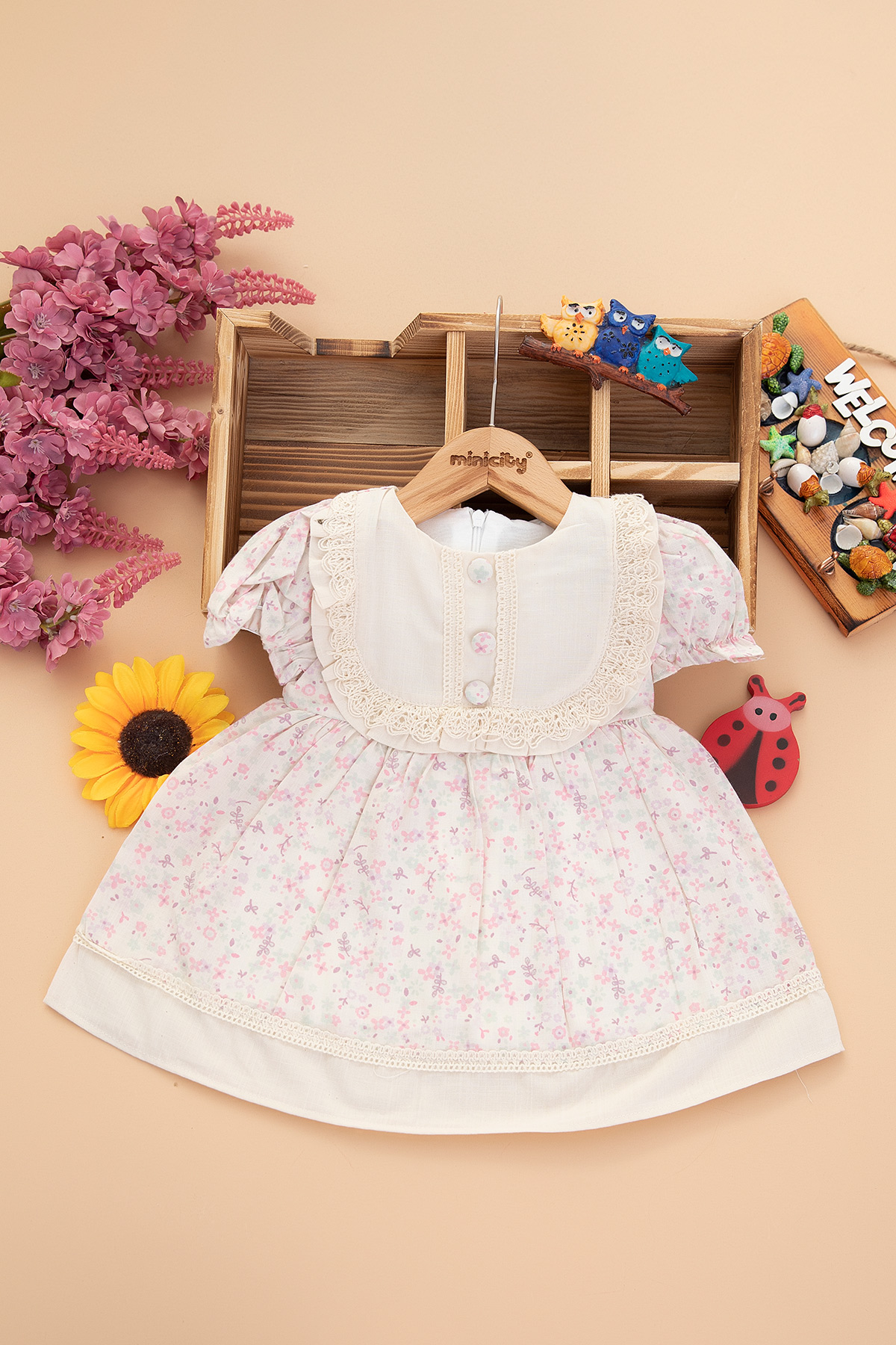 Kız Bebek Çiçekli Keten Fistolu Elbise - 3008 (9-24 Ay)