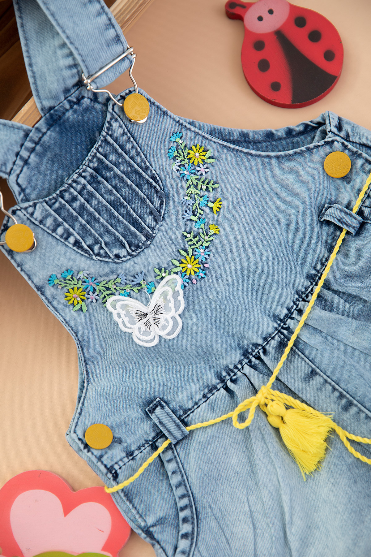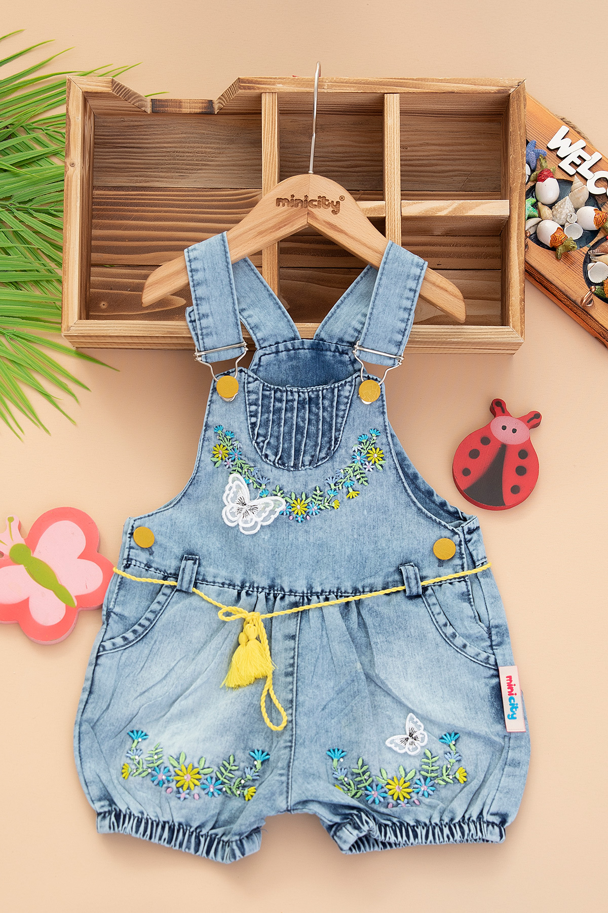 Kız Bebek Çiçekli Kot Şort Salopet - 11292 (9-24 Ay)