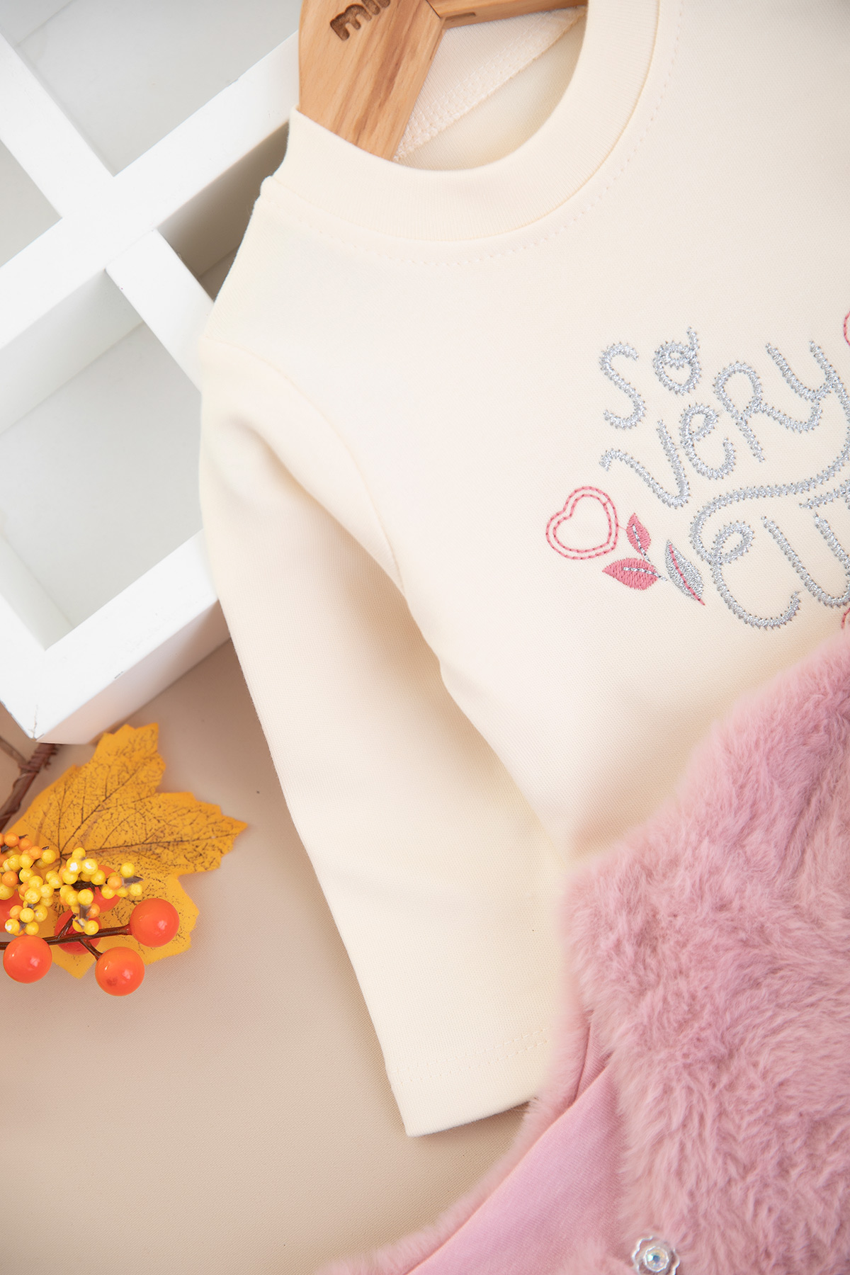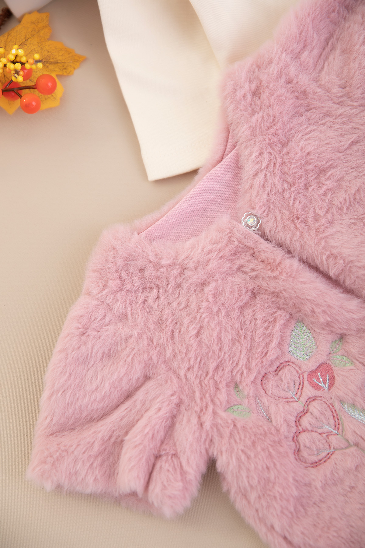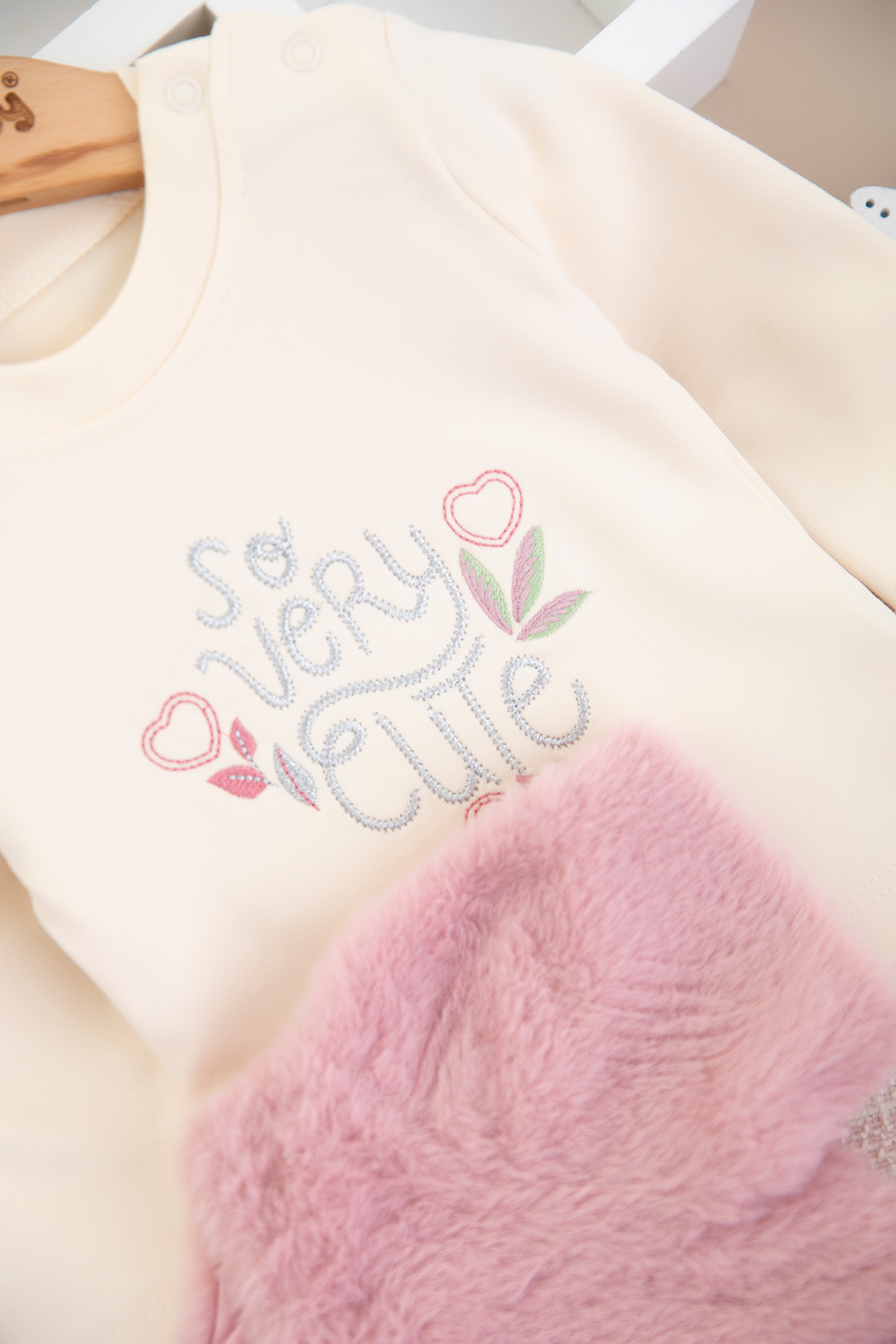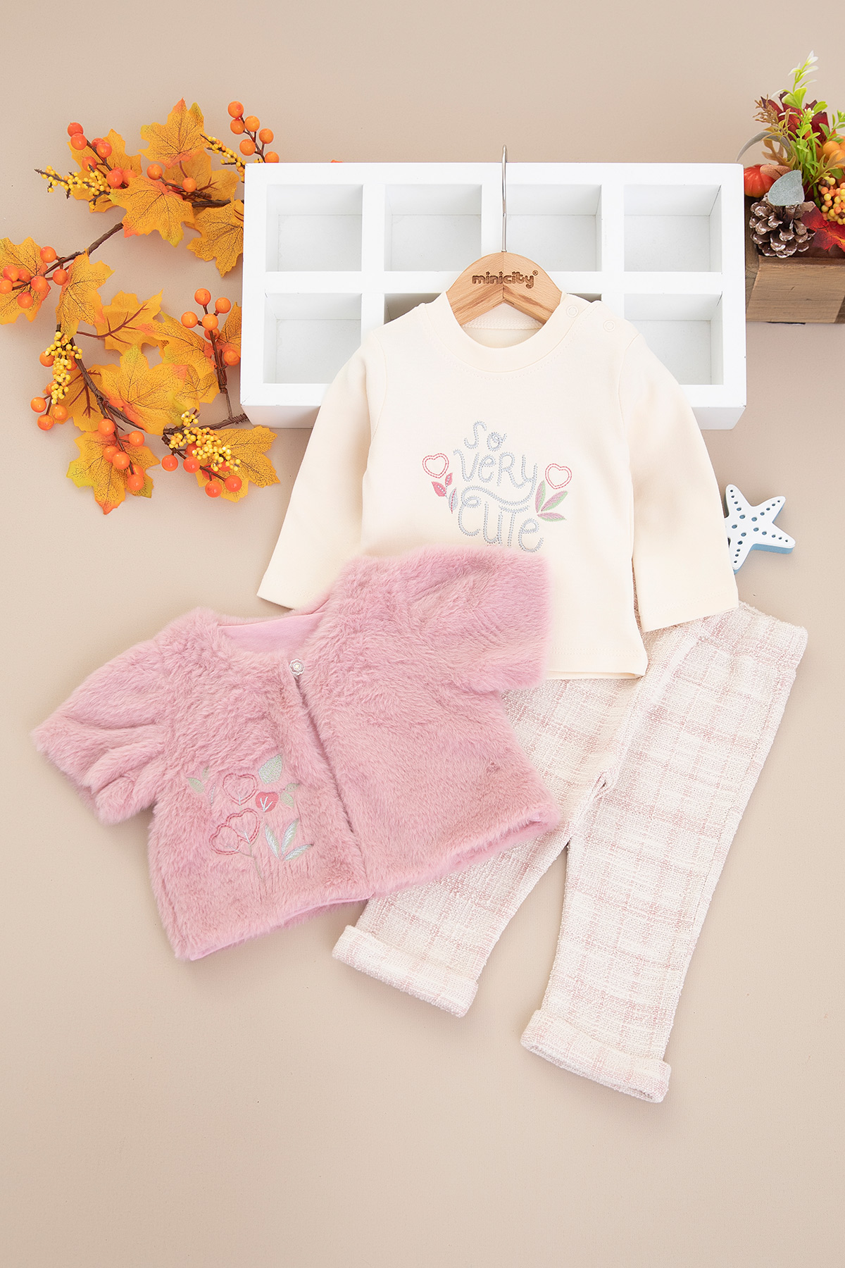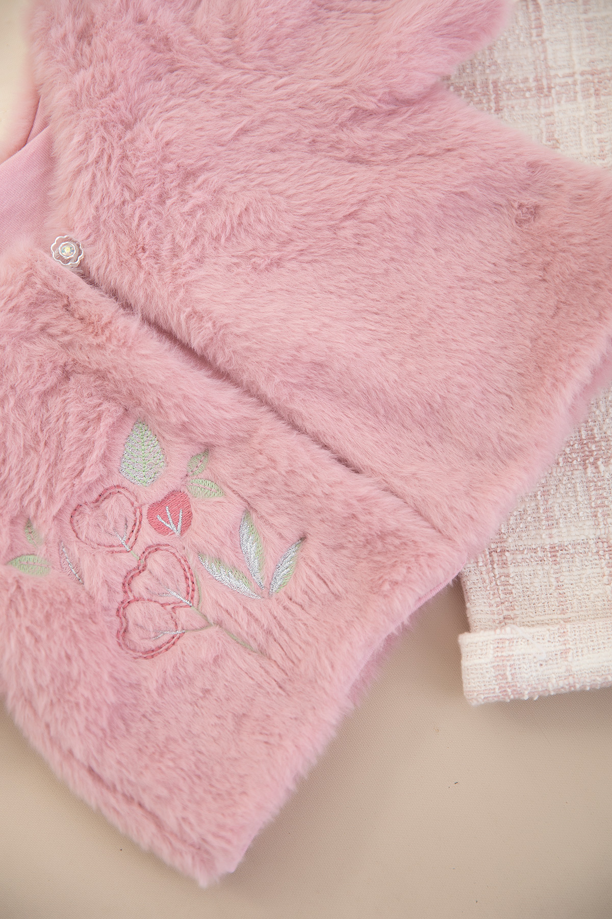 Kız Bebek Çiçekli Peluş Hırkalı Takım - 8471 (6-24 Ay)