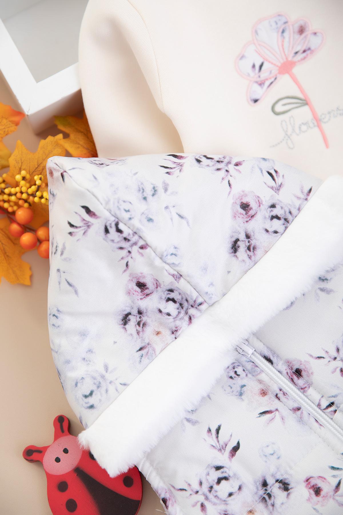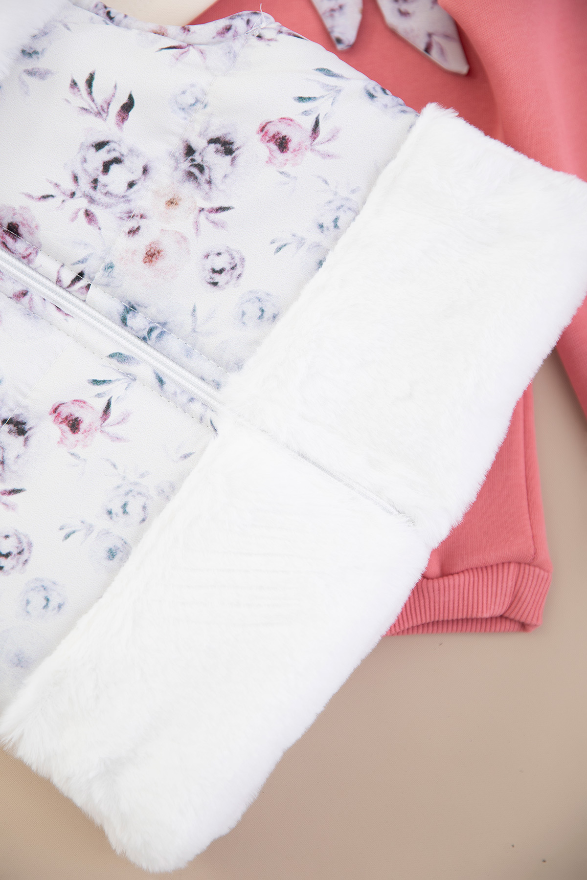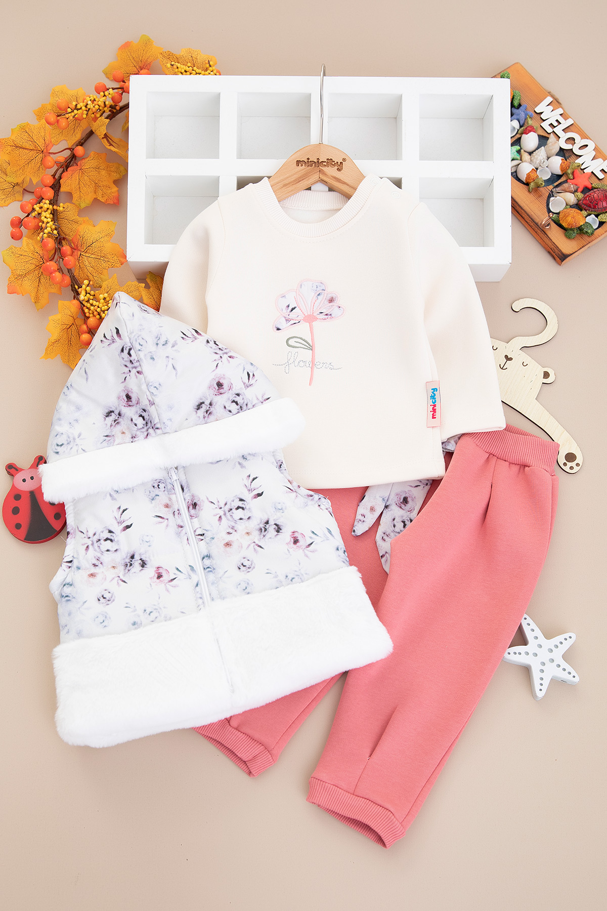Kız Bebek Çiçekli Peluş Yelekli Takım - 2603 (9-18 Ay)