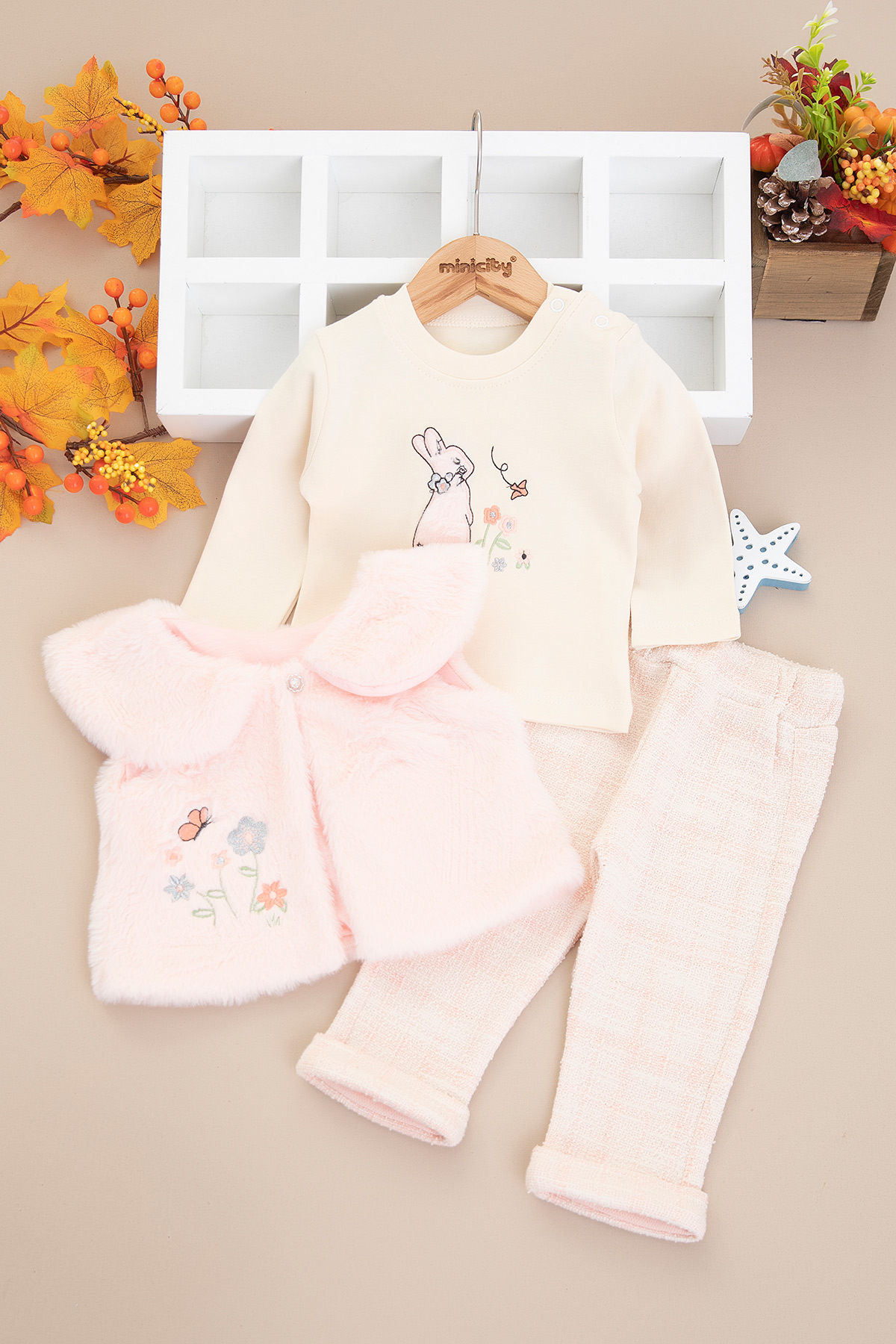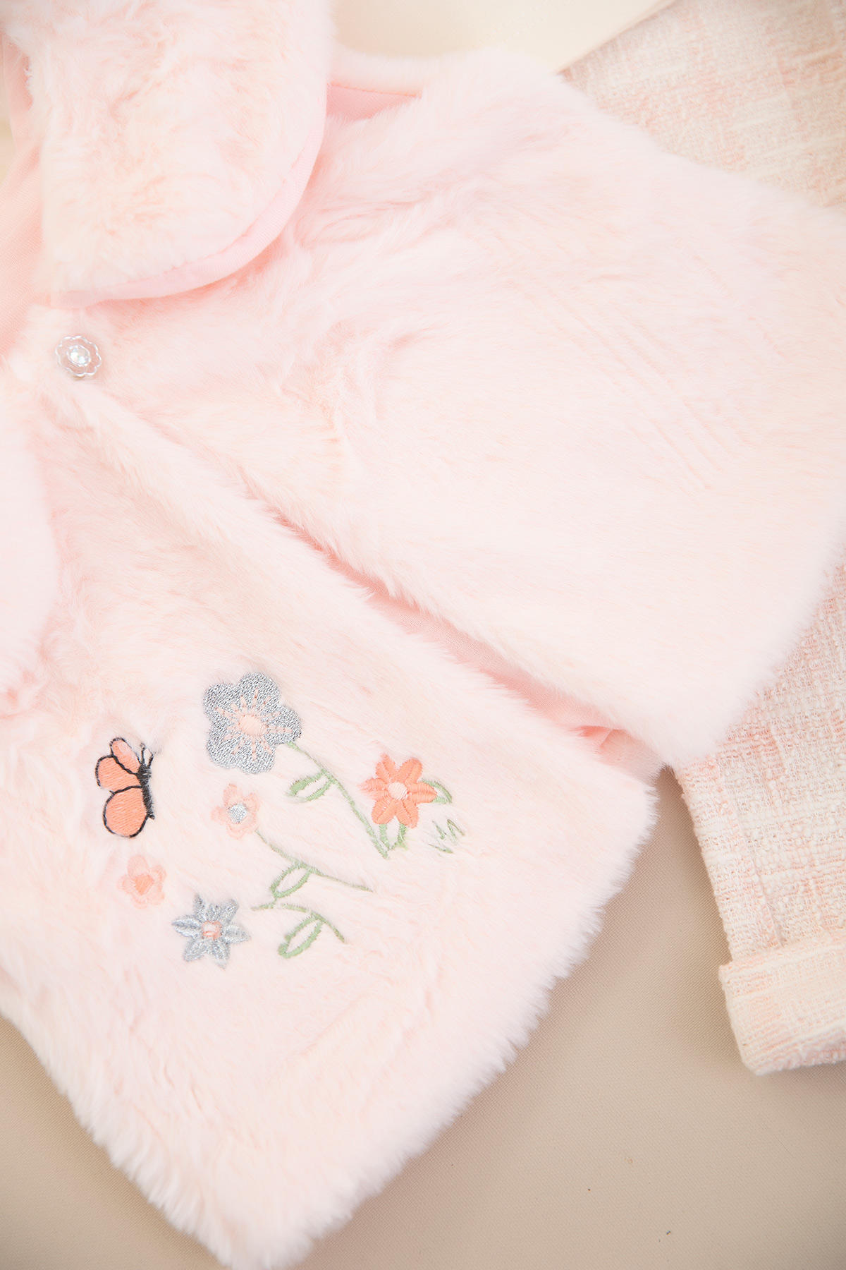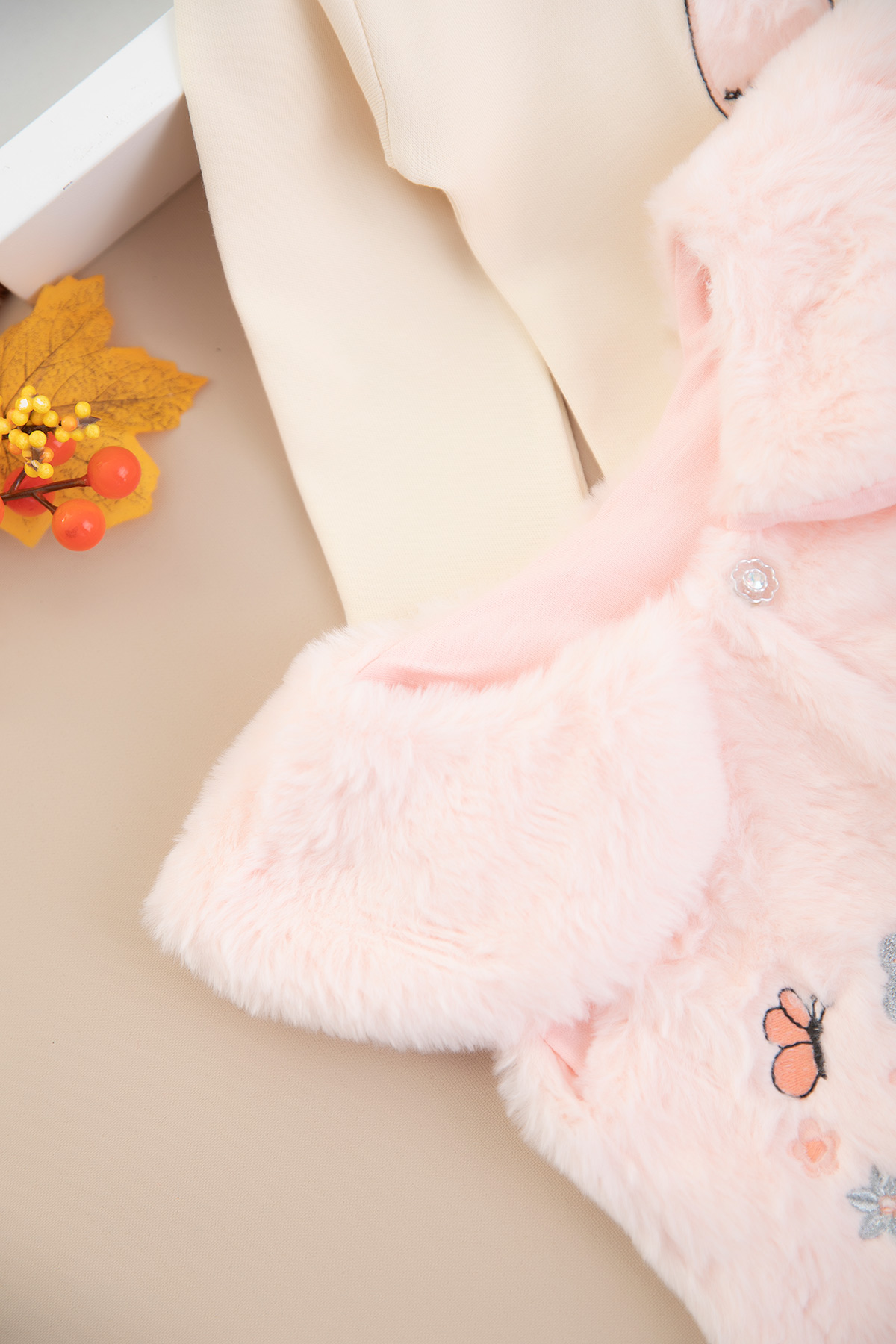 Kız Bebek Çiçekli Peluş Yelekli Takım - 8469 (6-24 Ay)