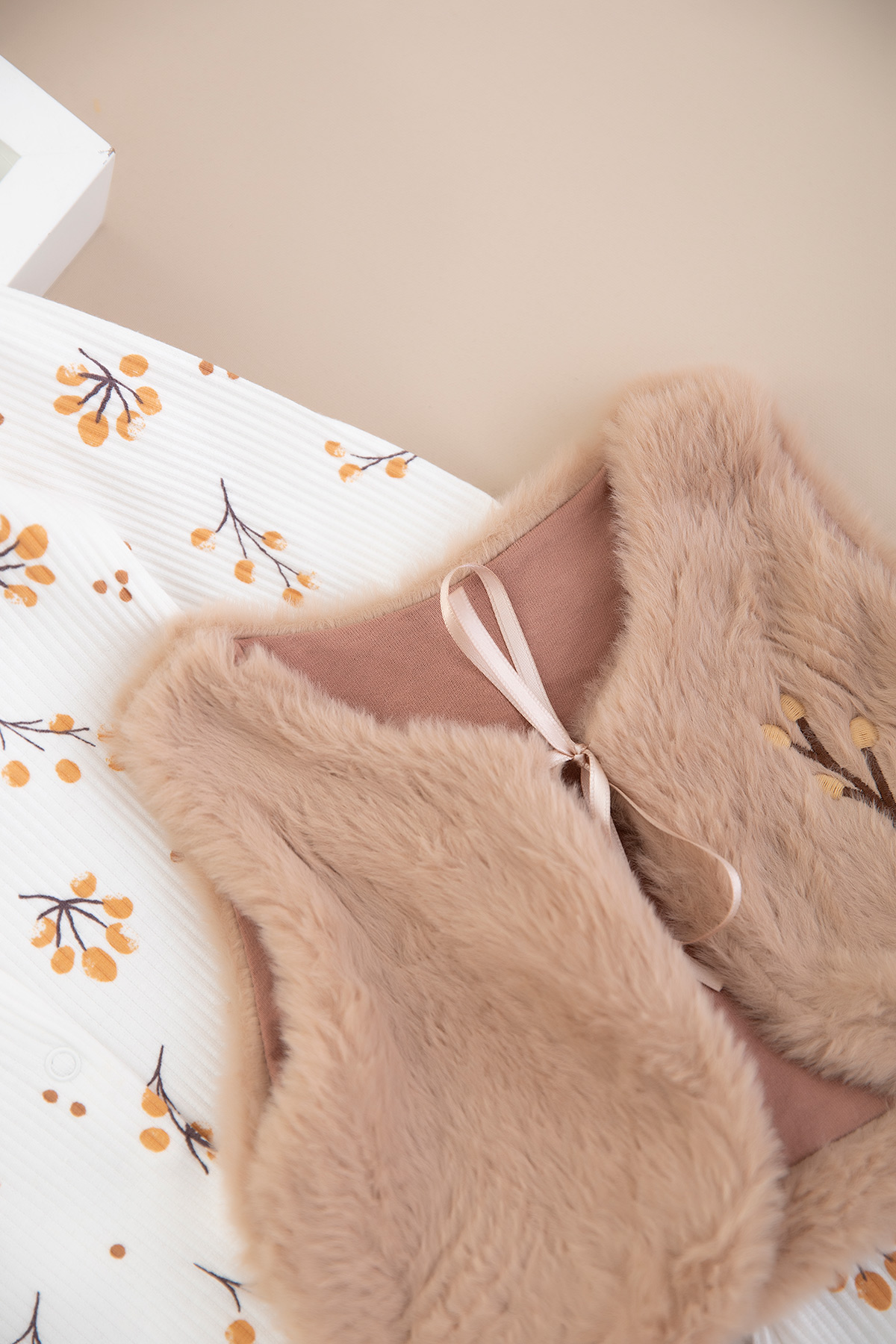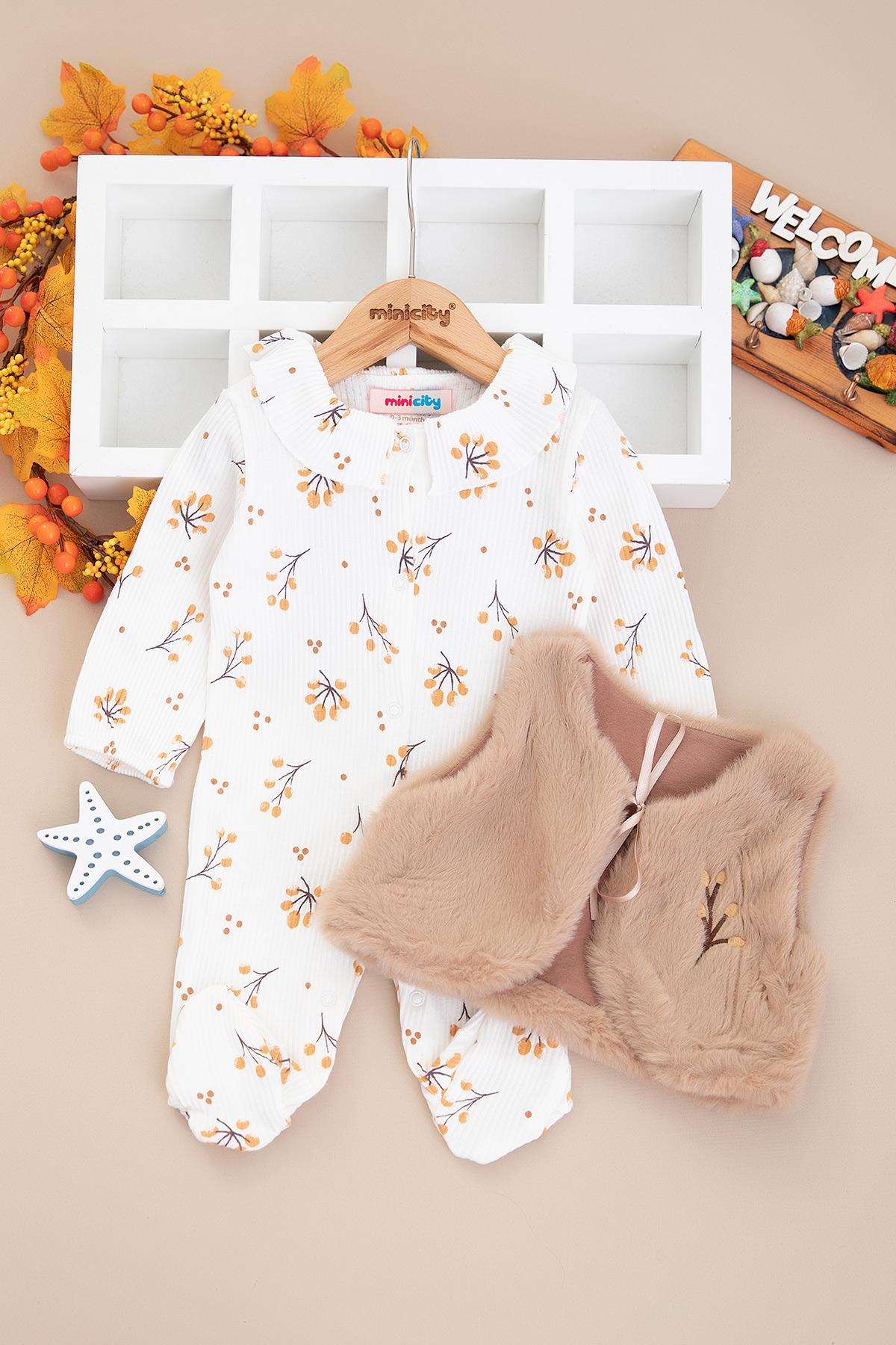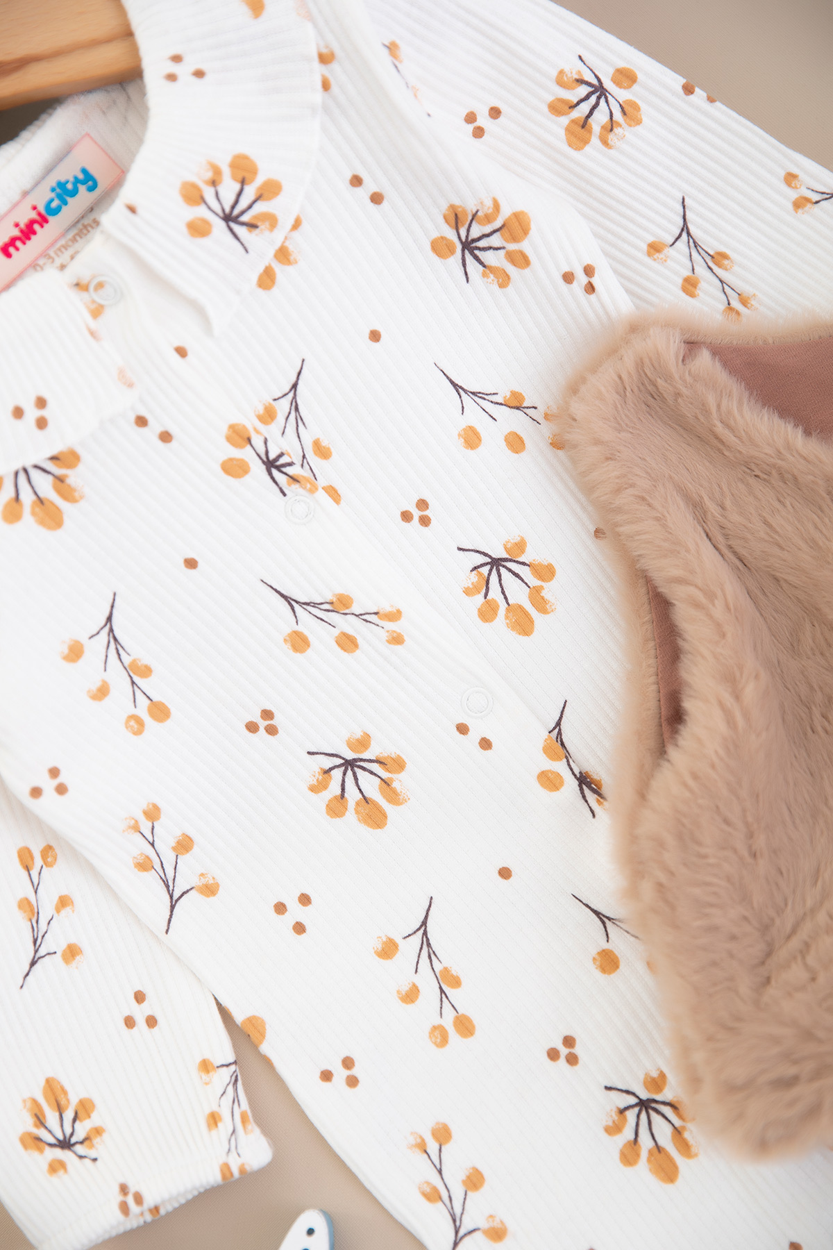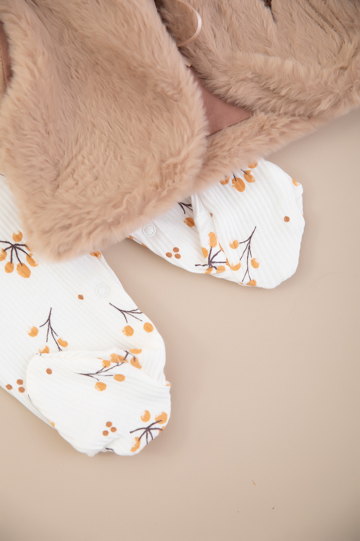 Kız Bebek Çiçekli Peluş Yelekli Tulum - 253076 (0-6 Ay)