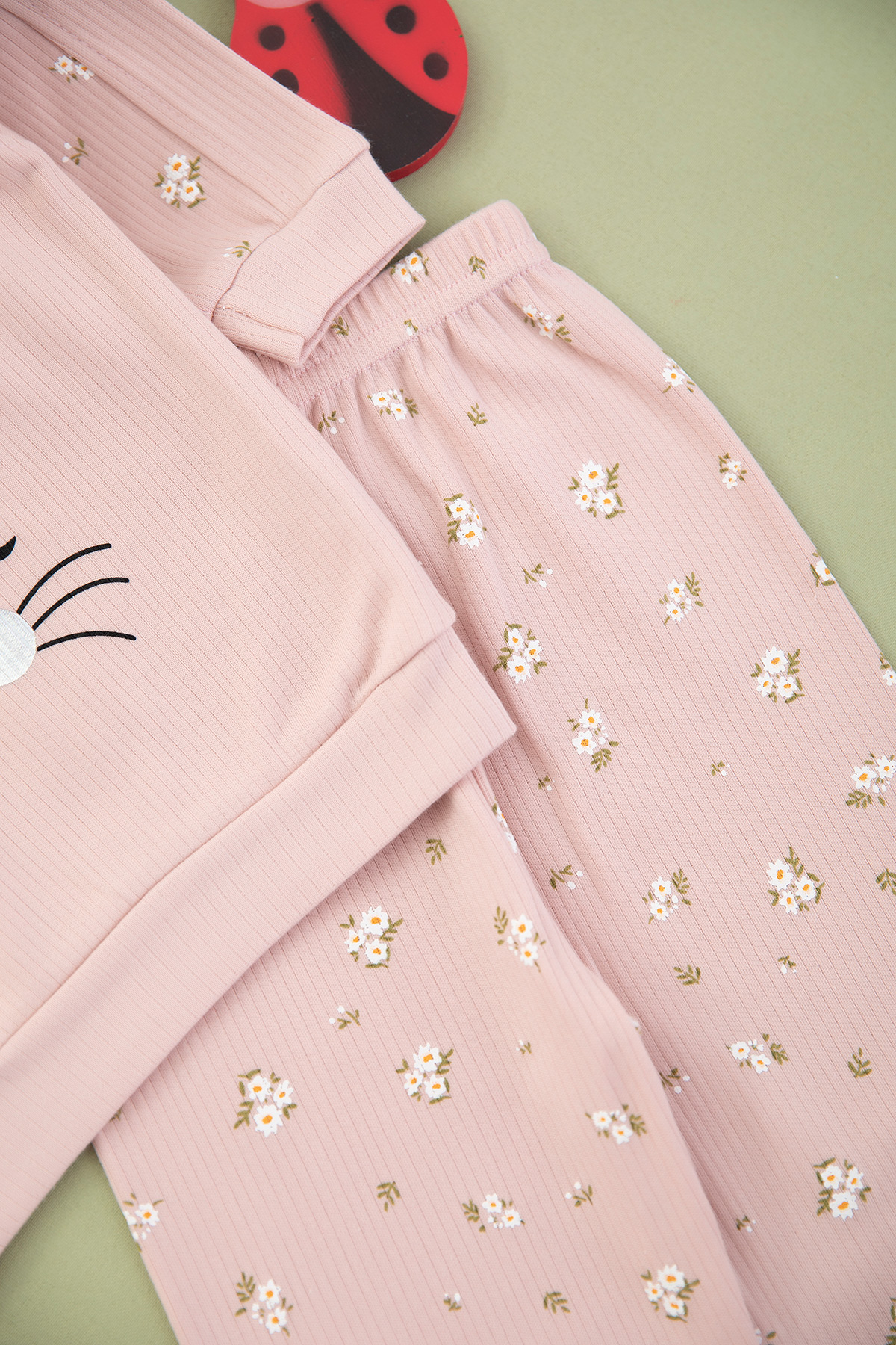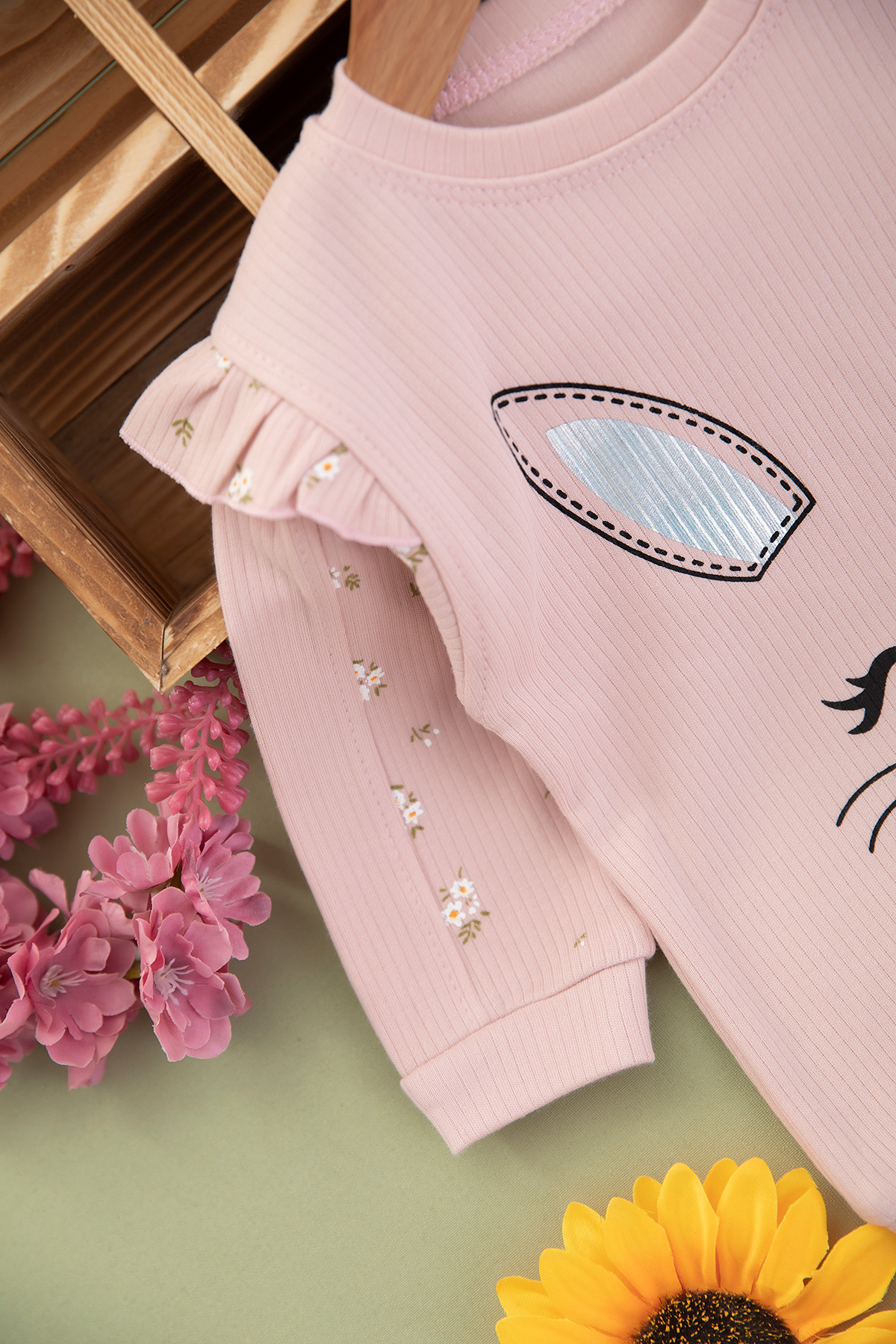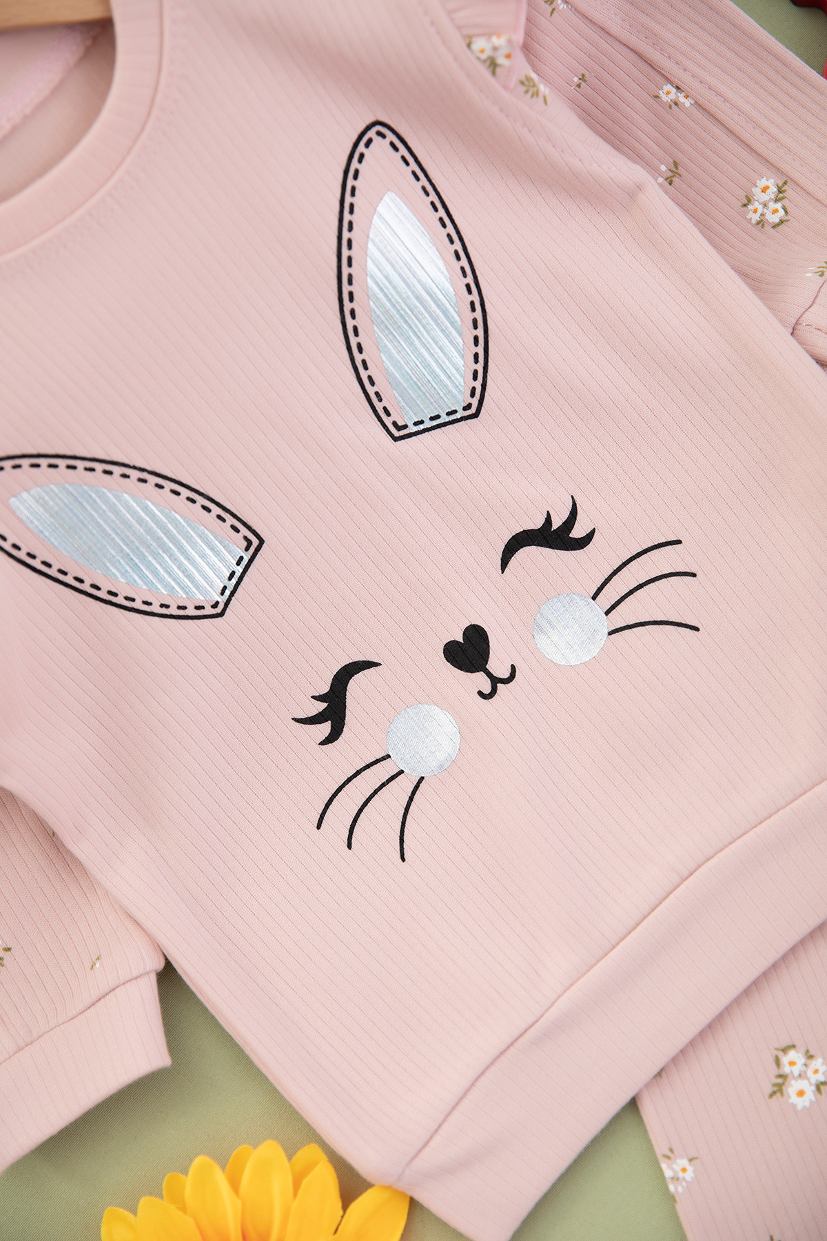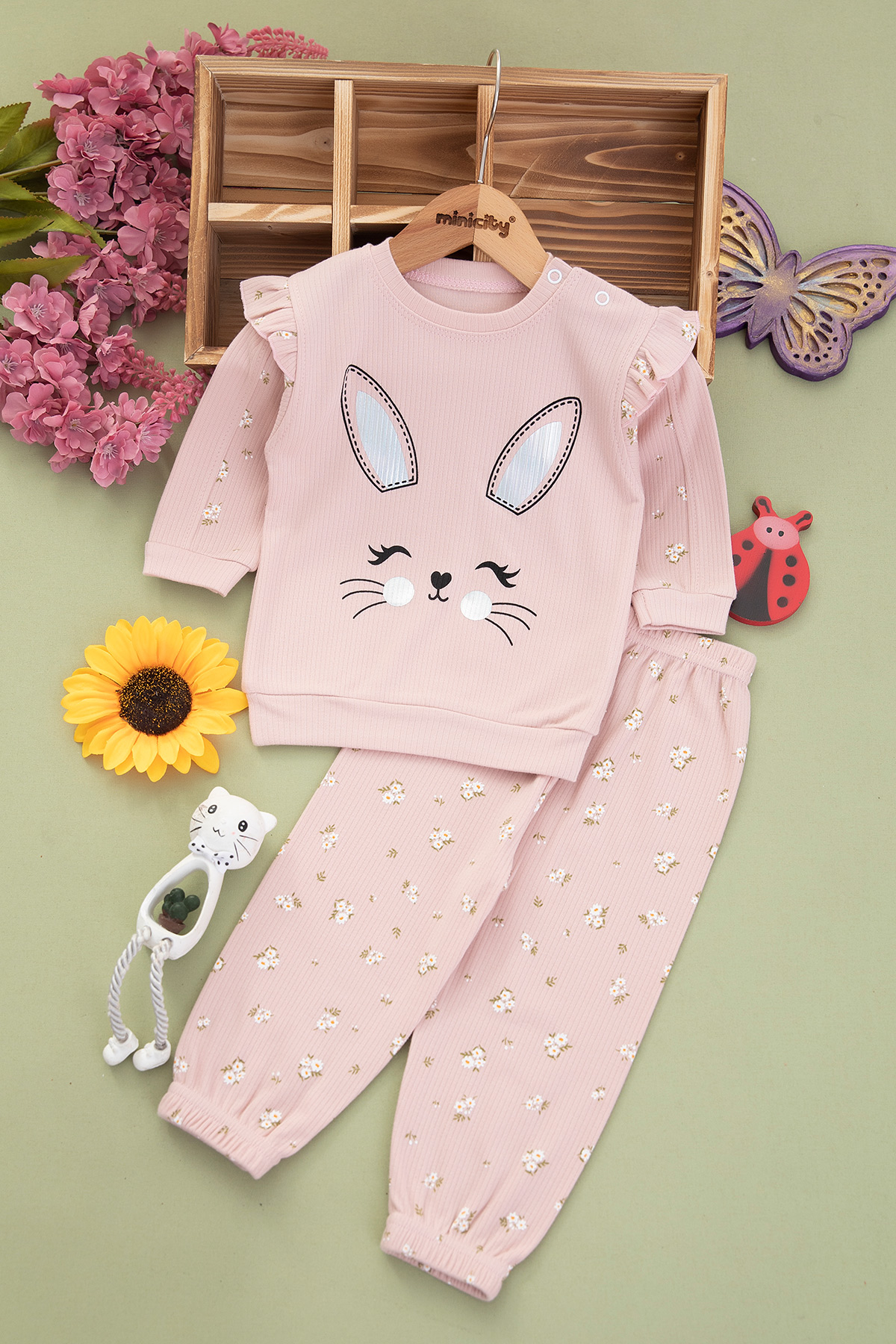 Kız Bebek Çiçekli Tavşan Baskılı Takım - 1147 (9-24 Ay)