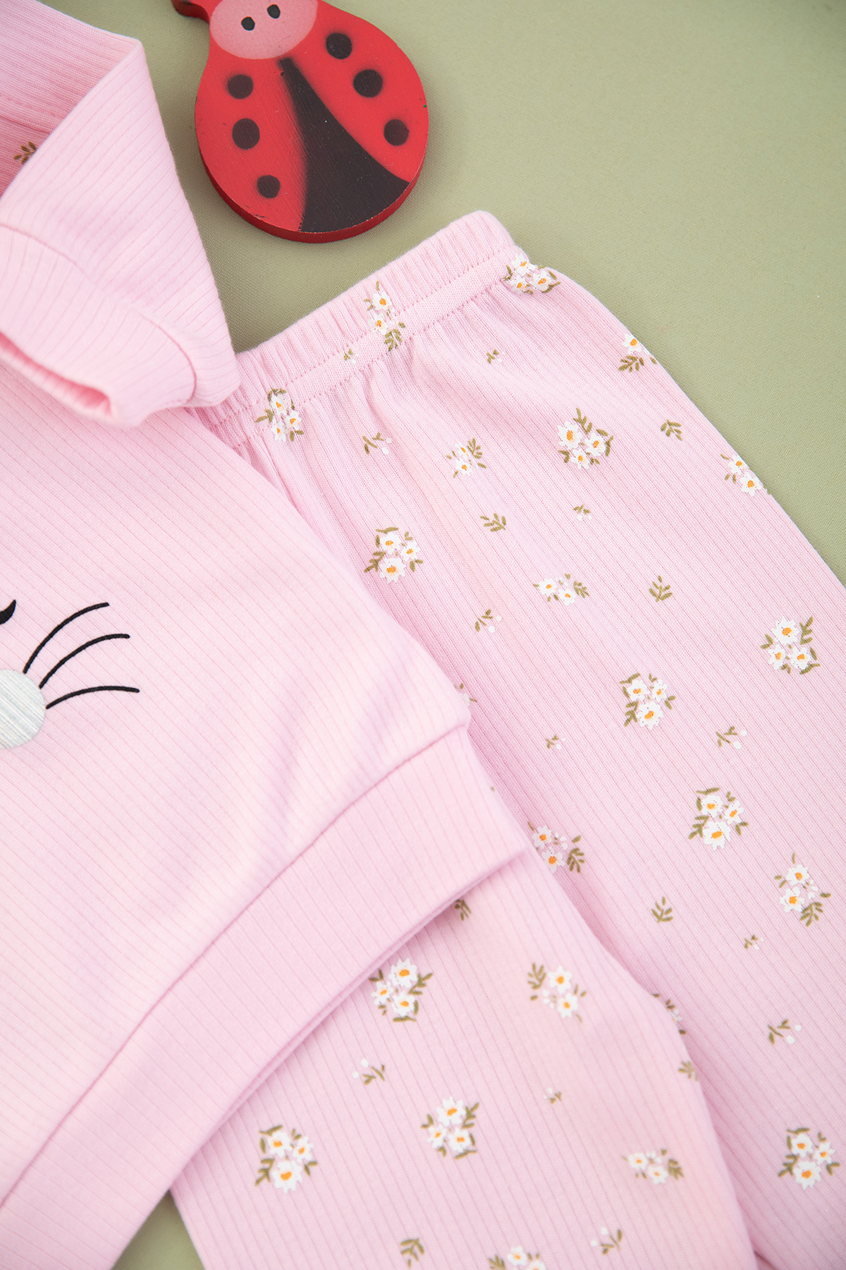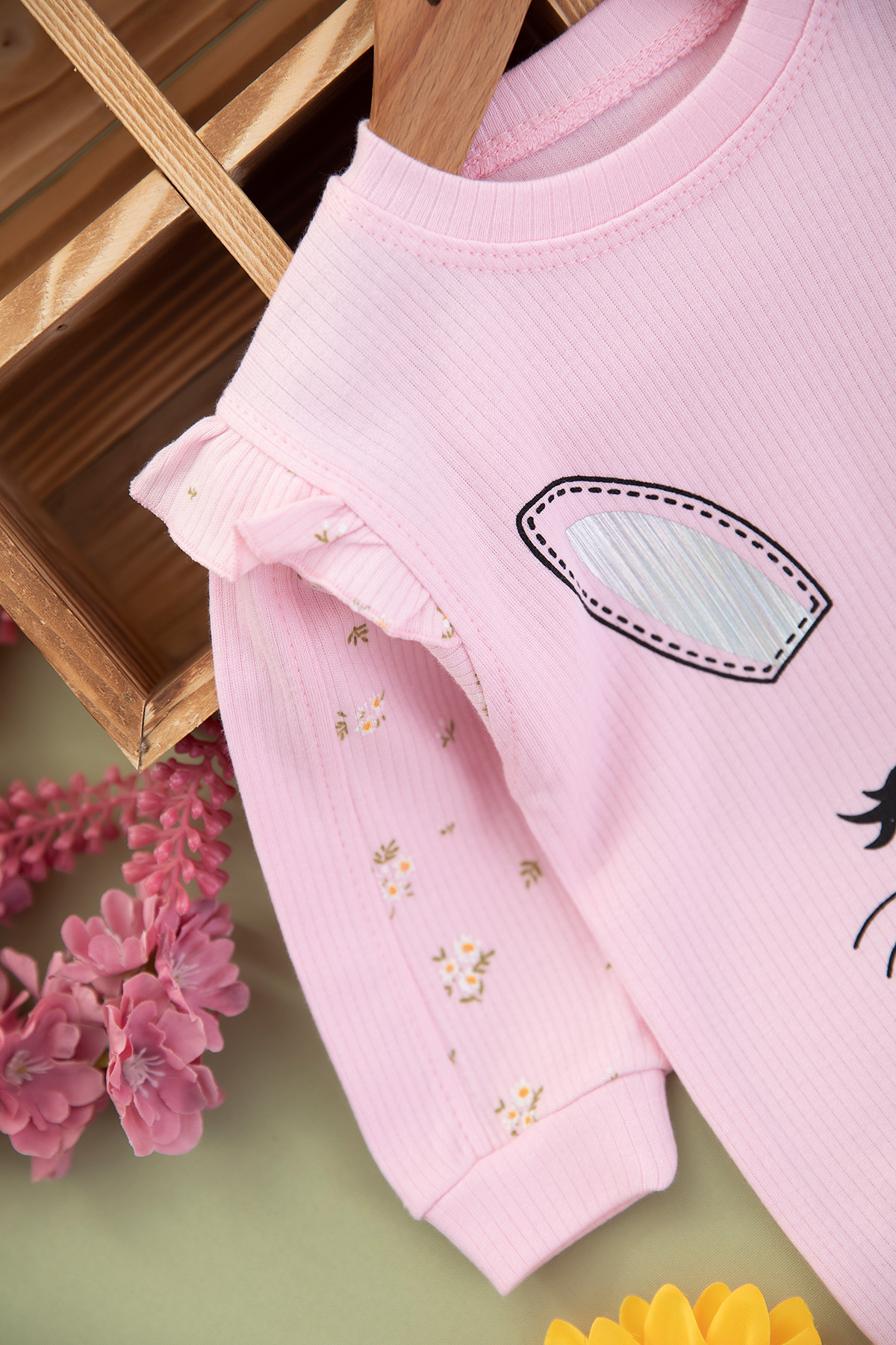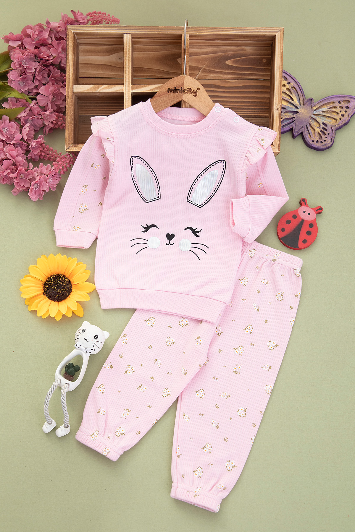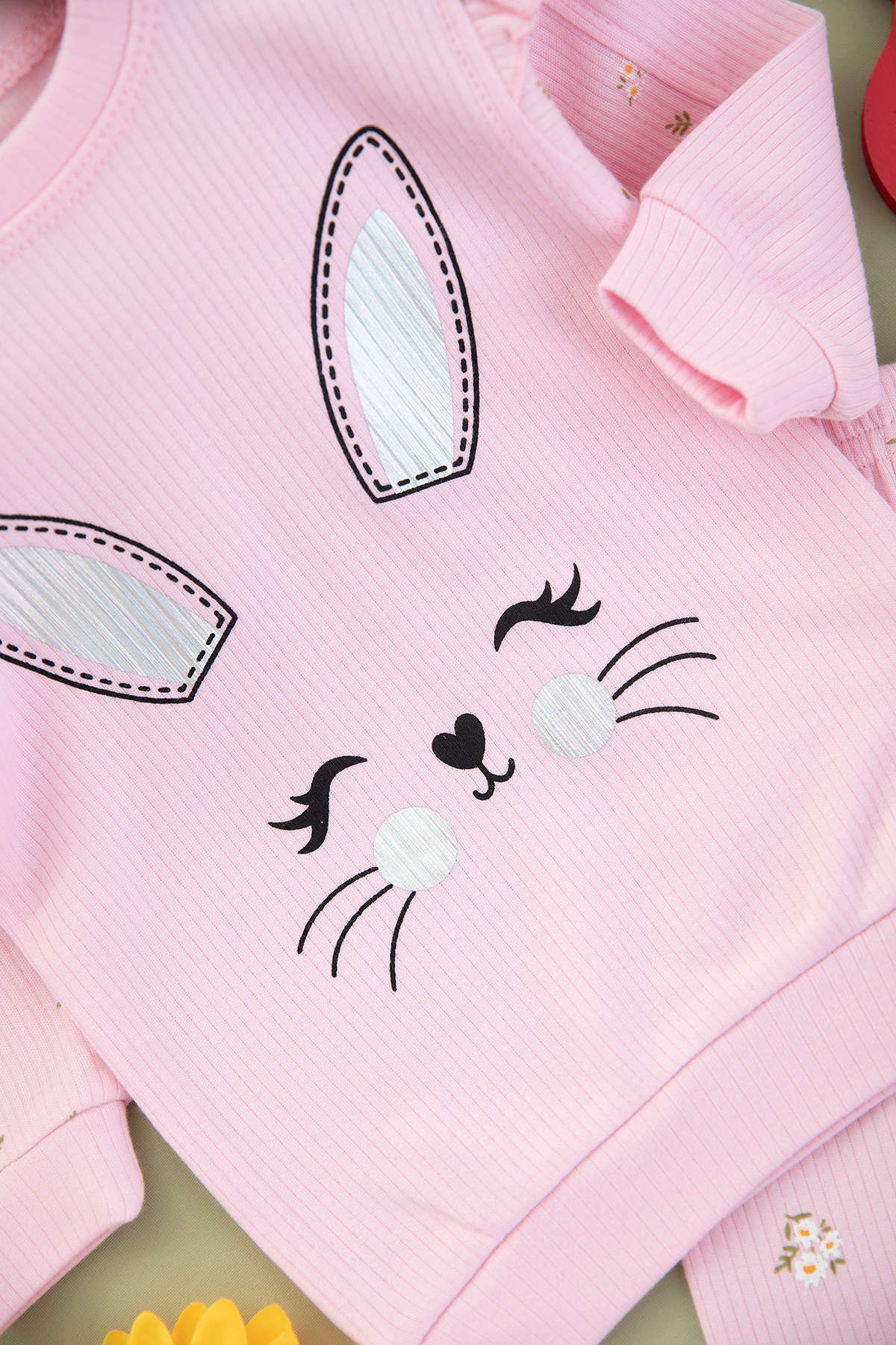 Kız Bebek Çiçekli Tavşan Baskılı Takım - 1147 (9-24 Ay)