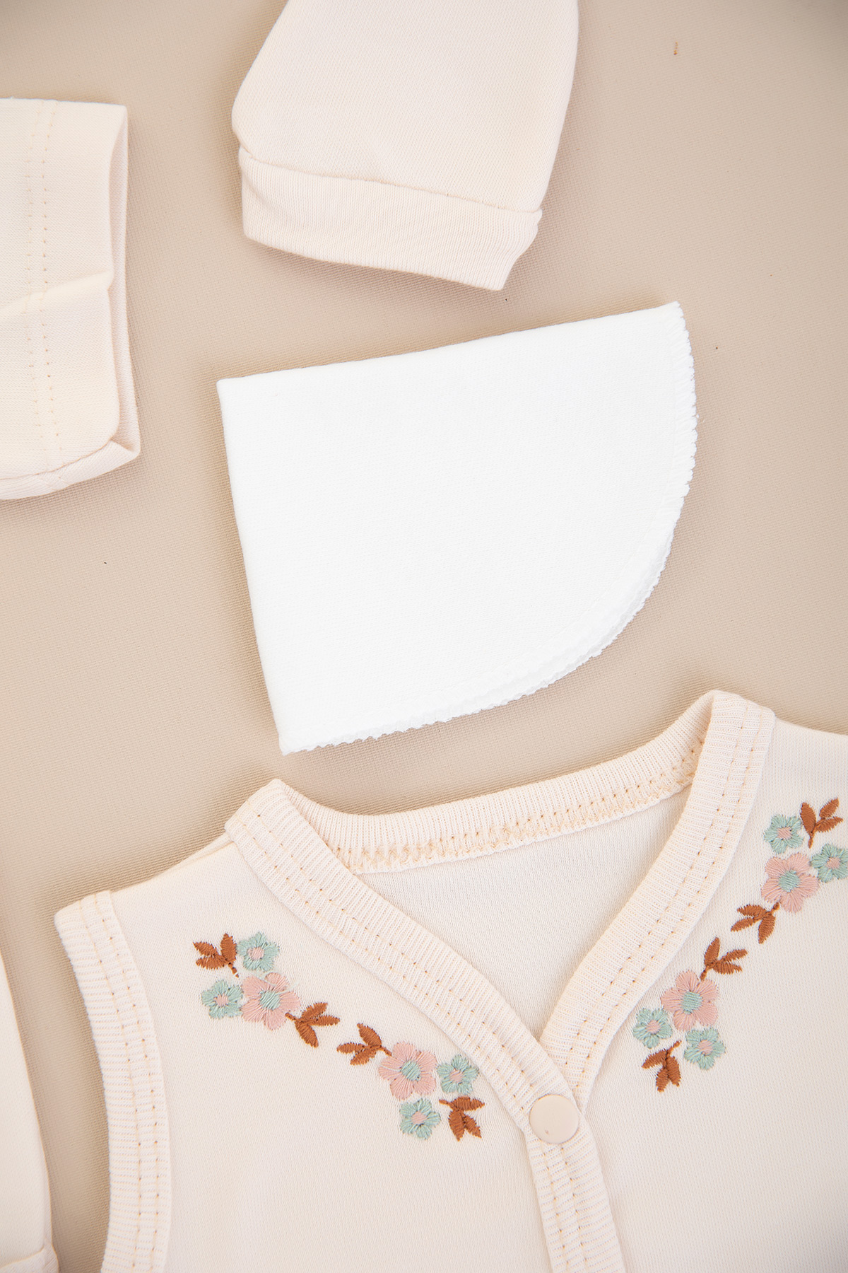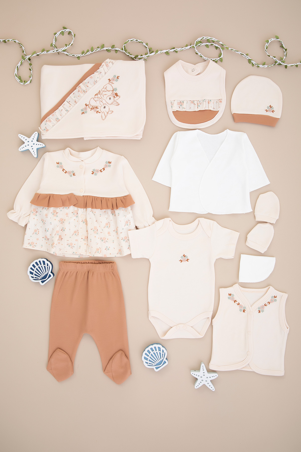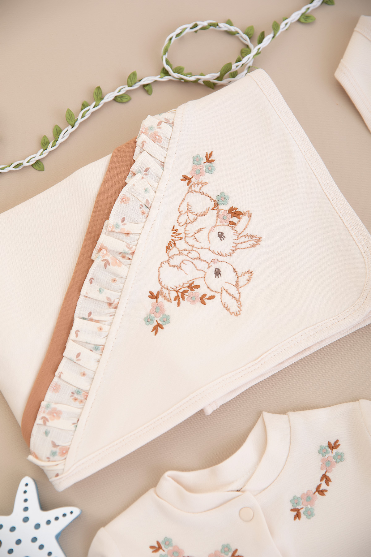Kız Bebek Çiçekli Tavşan Nakışlı 10`Lu Zıbın Seti