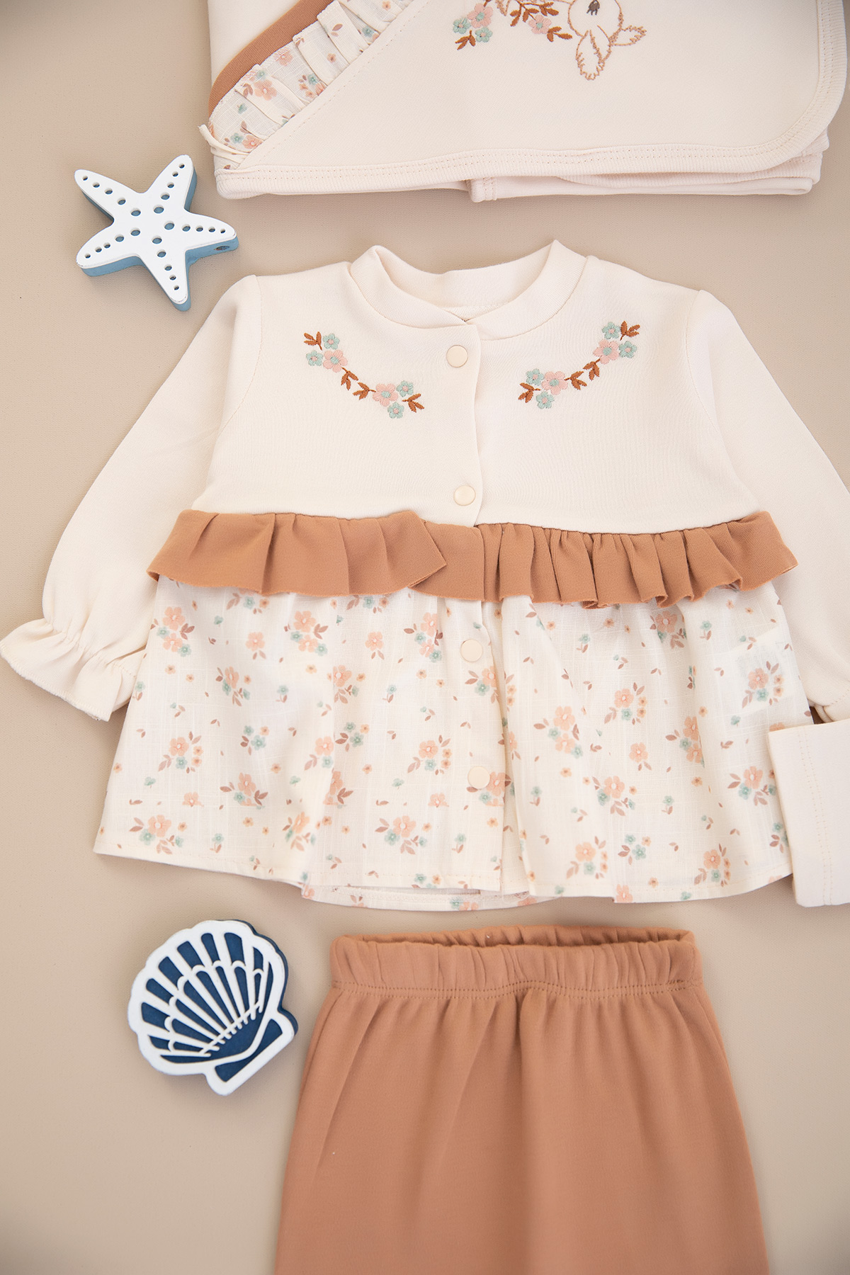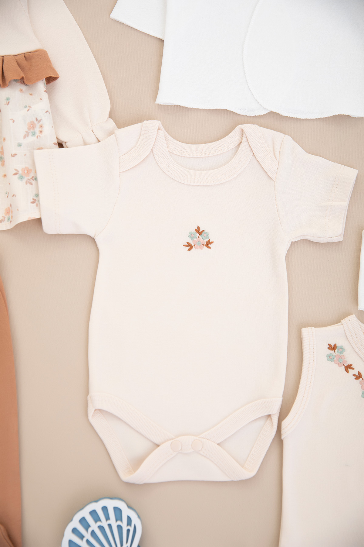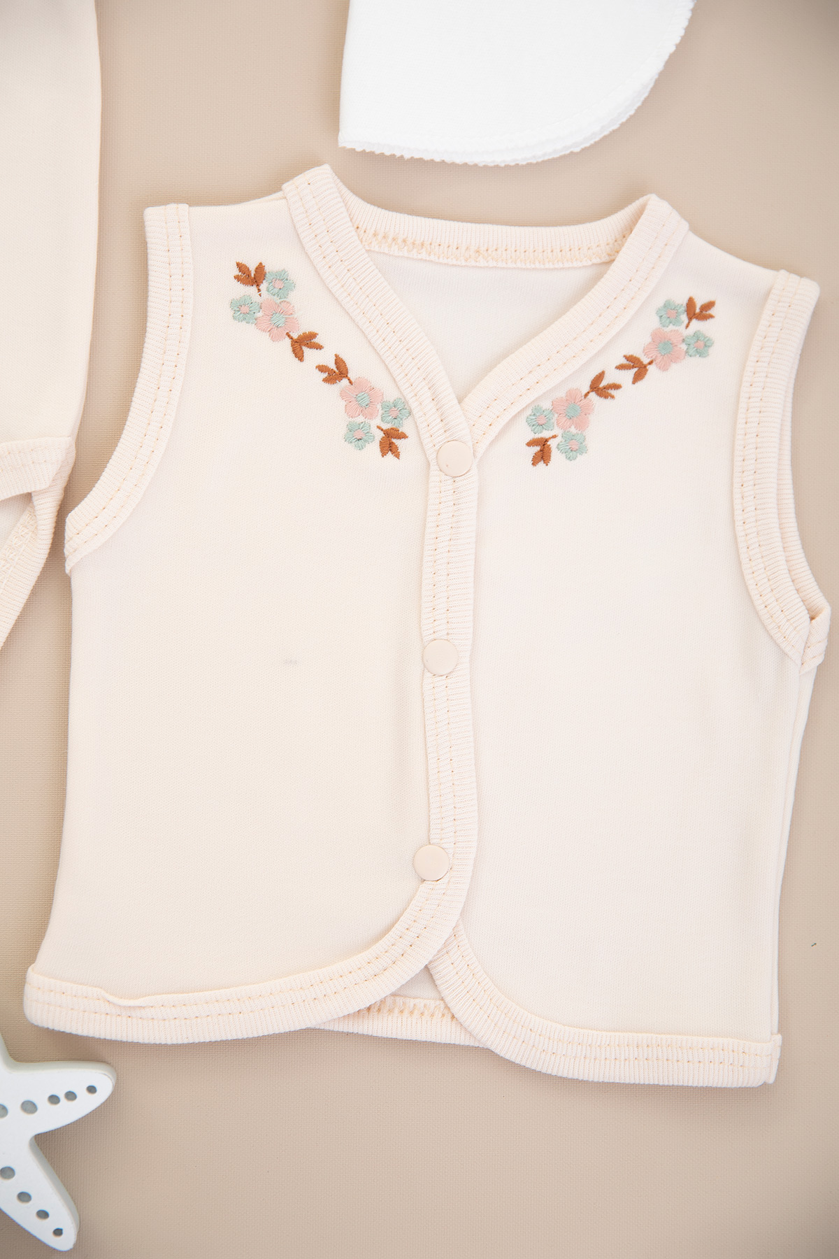 Kız Bebek Çiçekli Tavşan Nakışlı 10`Lu Zıbın Seti