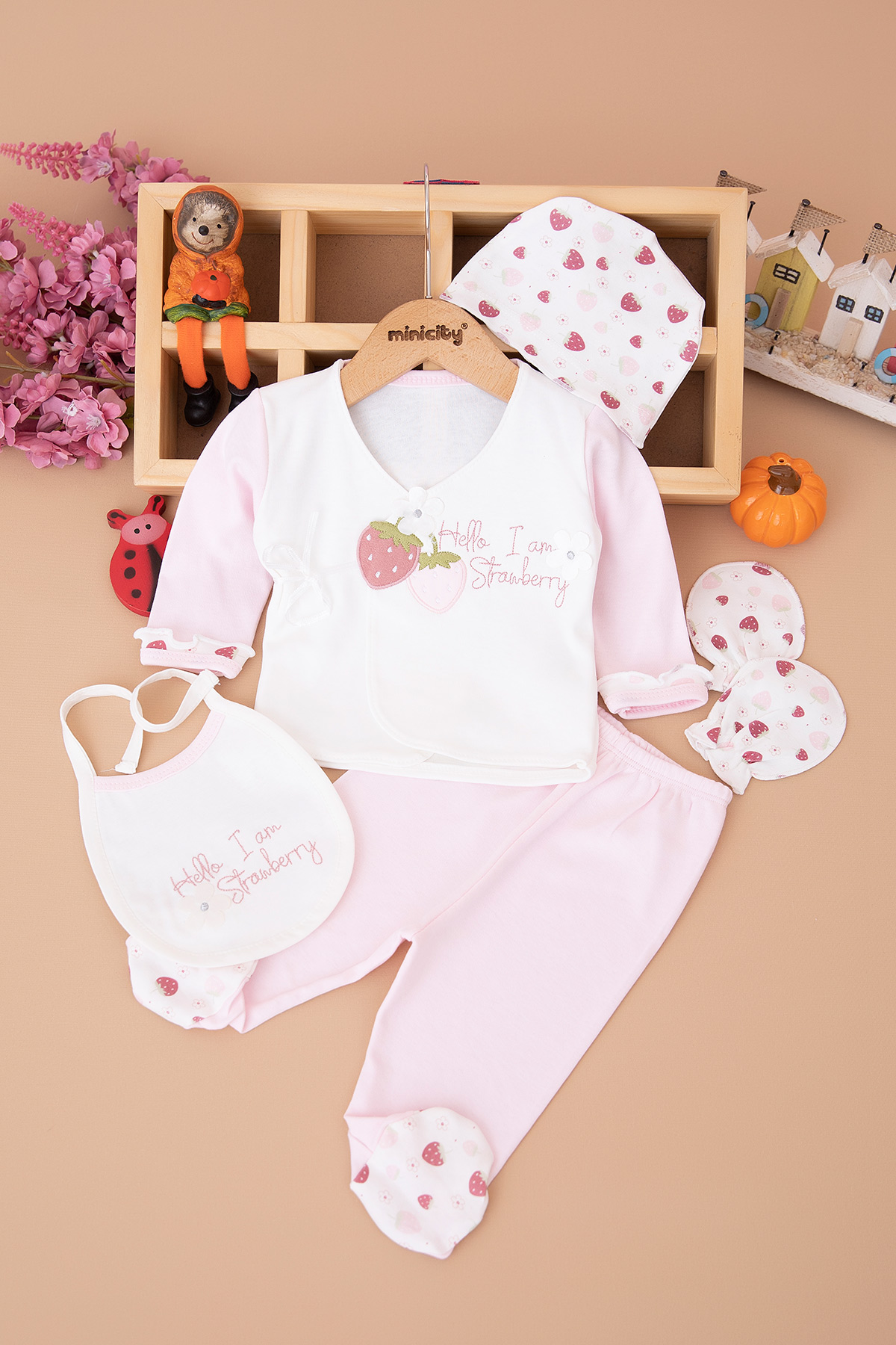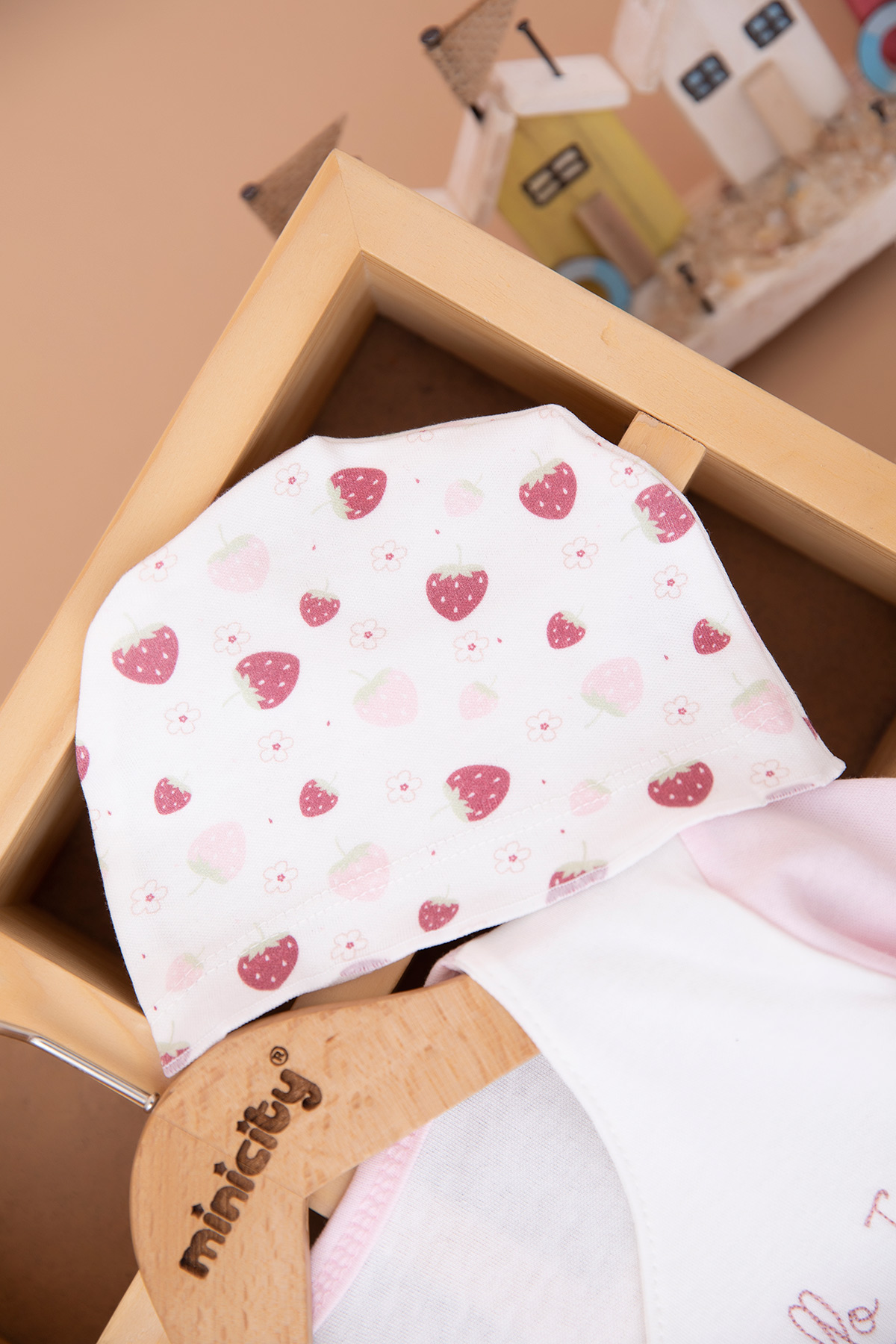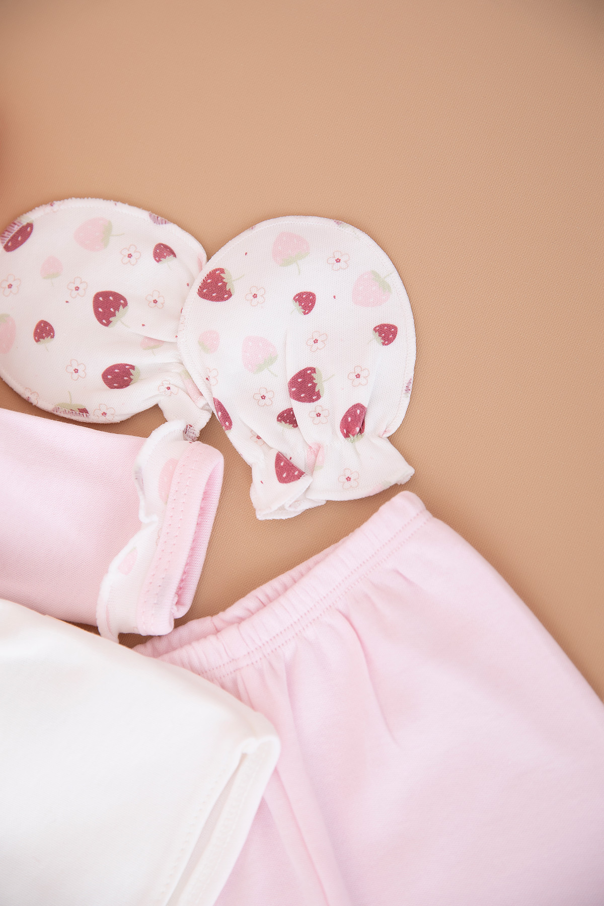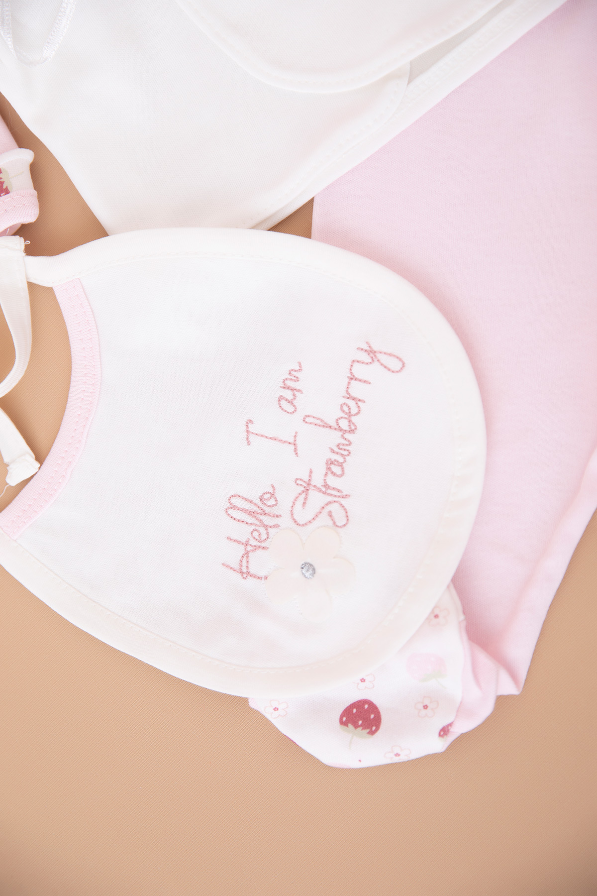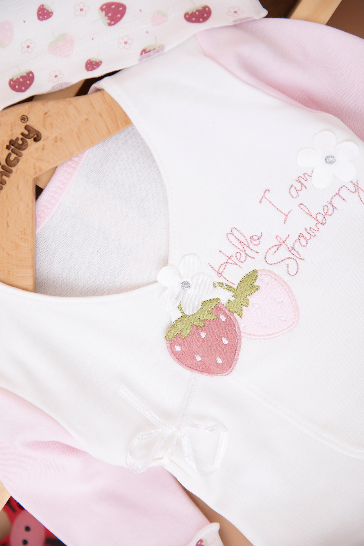Kız Bebek Çilek Aplikeli 5`Li Zıbın Seti - 8003